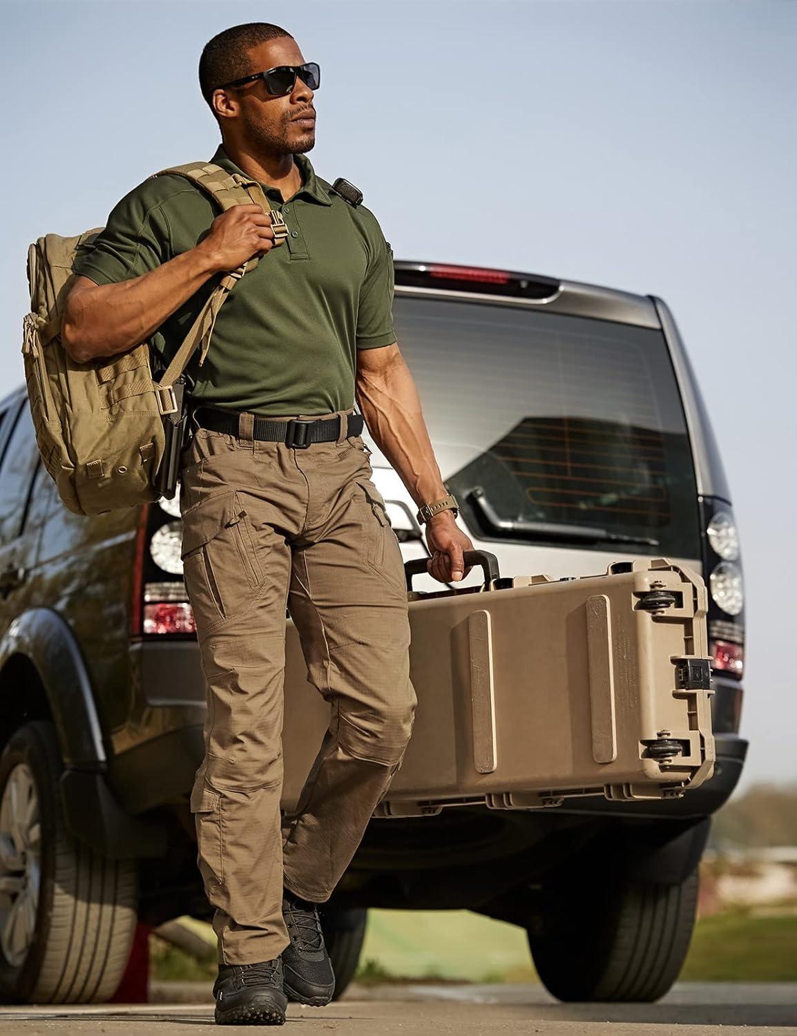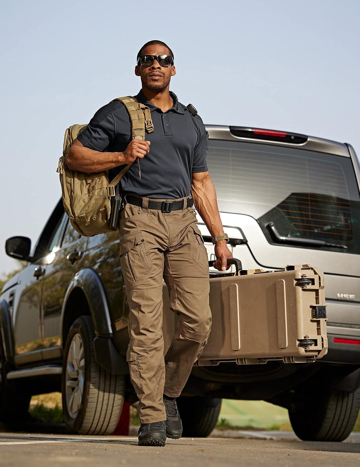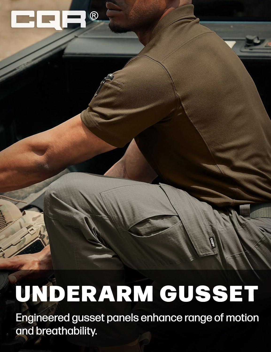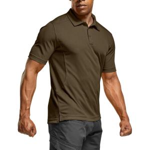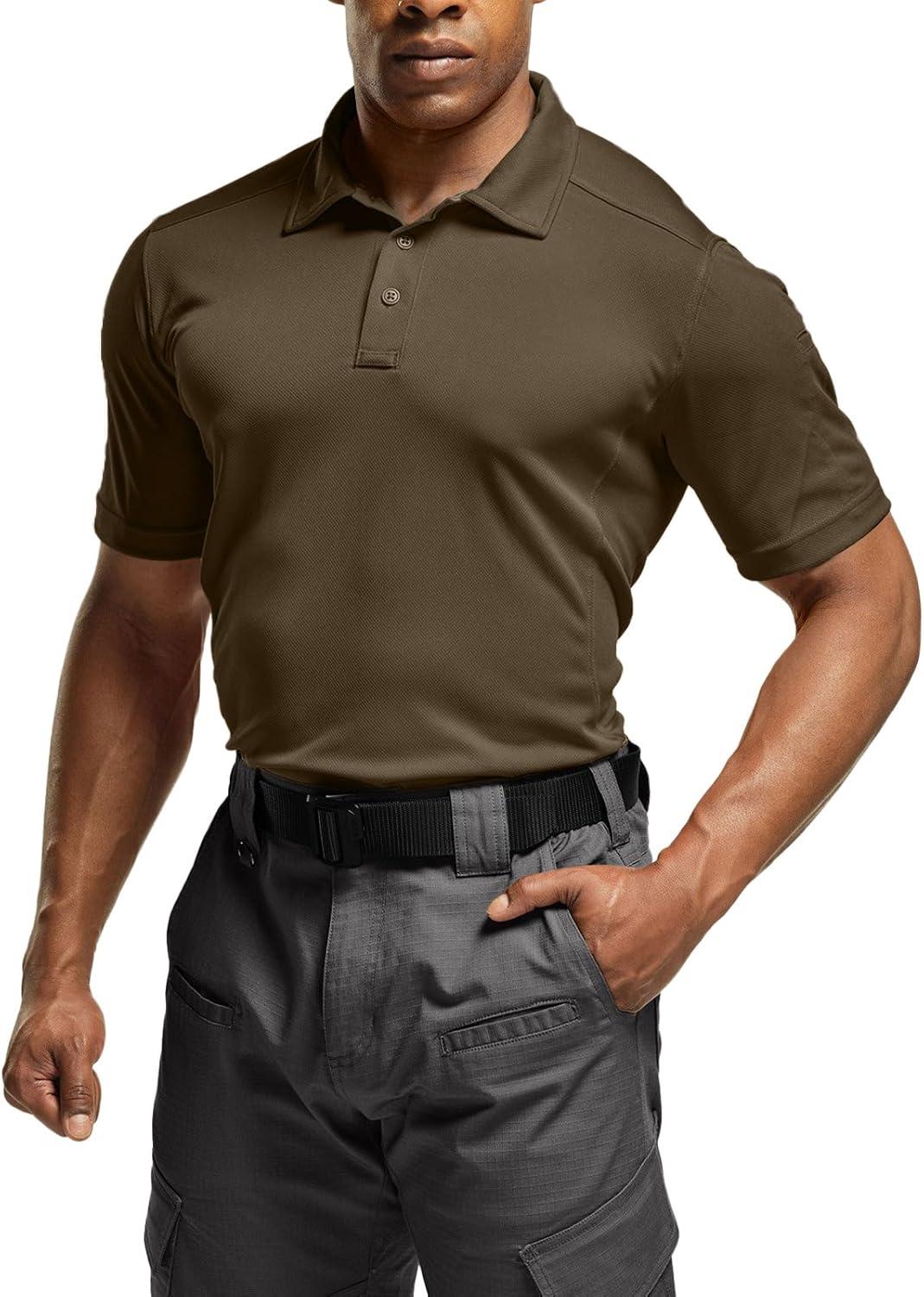 CQR Men’s Polo Shirts, Tactical Short Sleeve Golf Performance Shirts, Lightweight Dry Fit UPF 50+ Pique(Frost Essential Coyote)