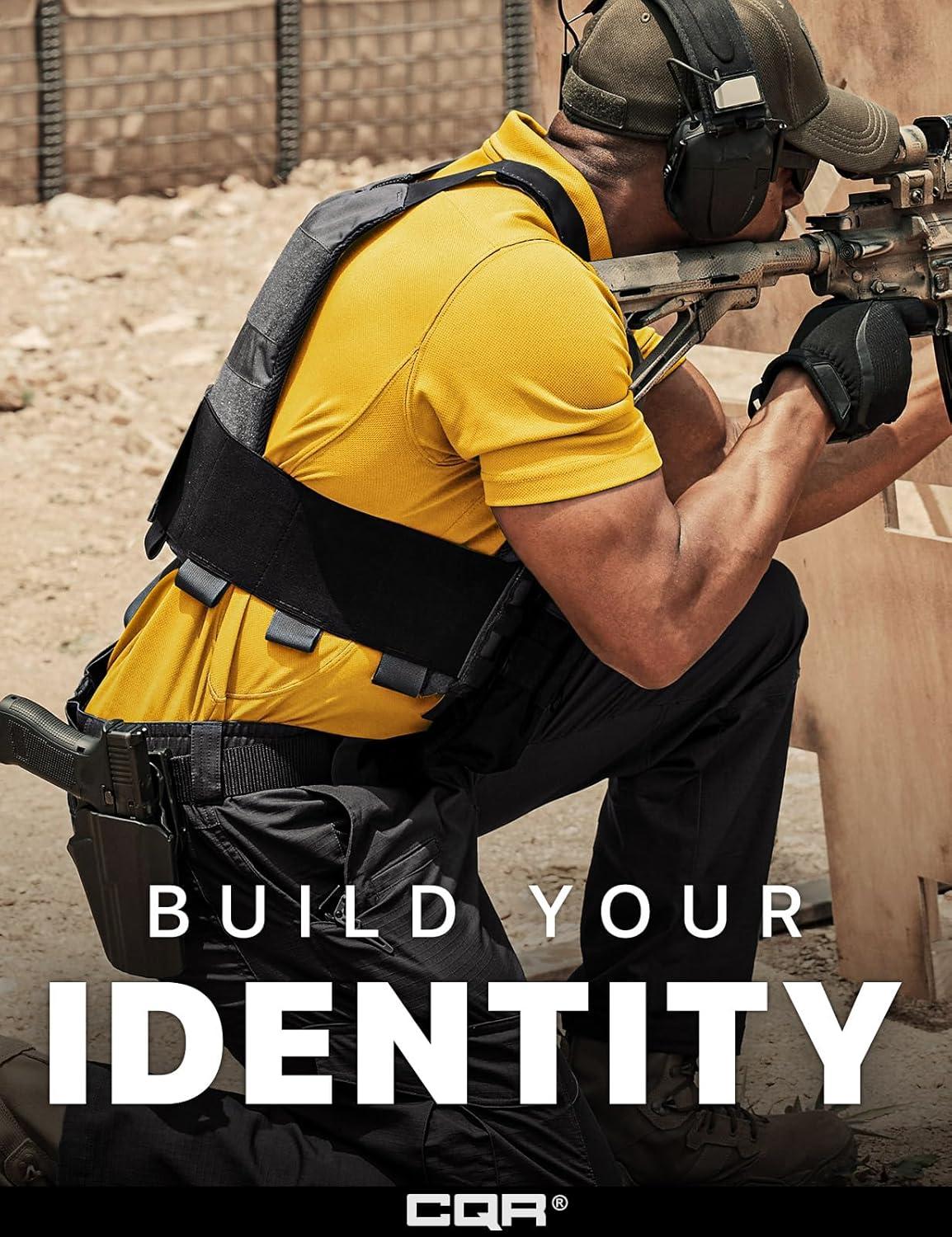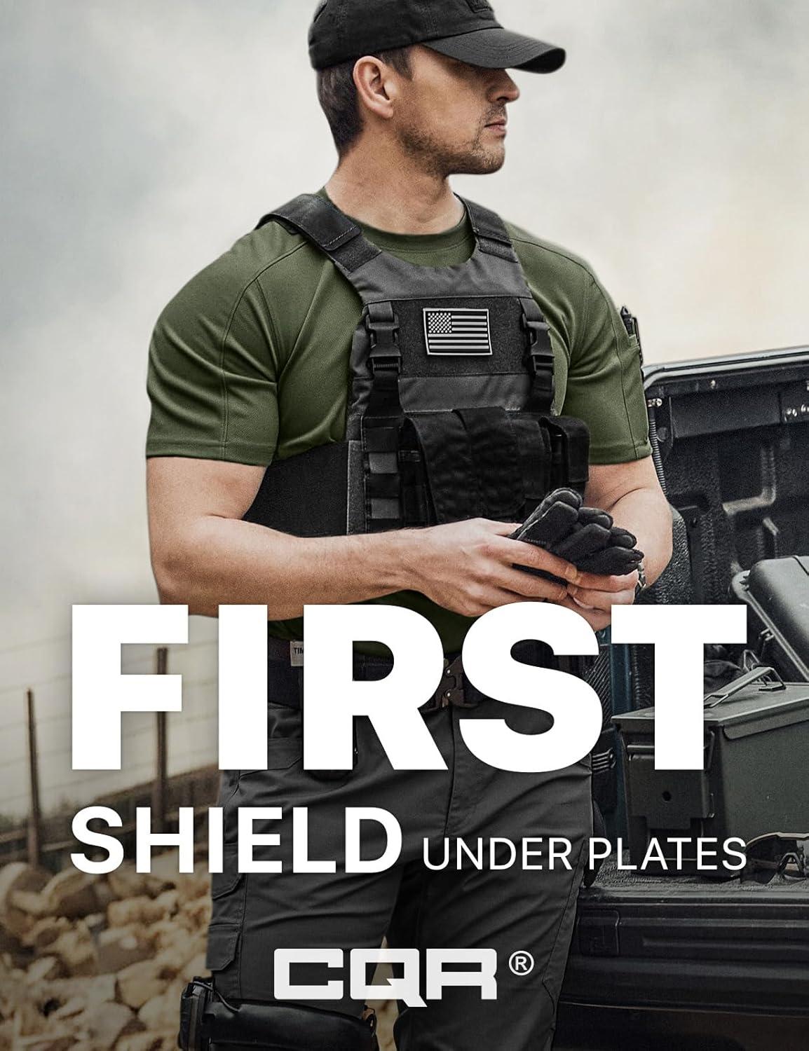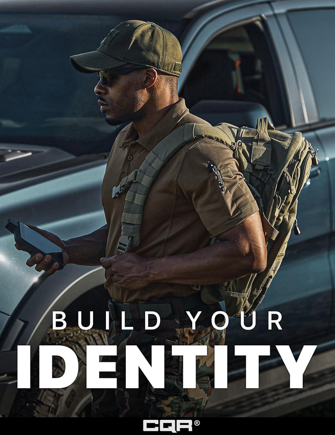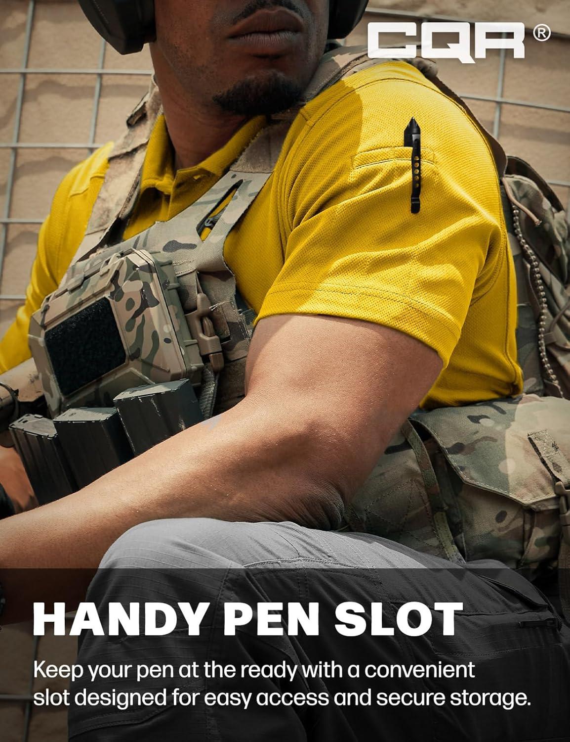 CQR Men’s Polo Shirts, Tactical Short Sleeve Golf Performance Shirts, Lightweight Dry Fit UPF 50+ Pique(Commander Black)
