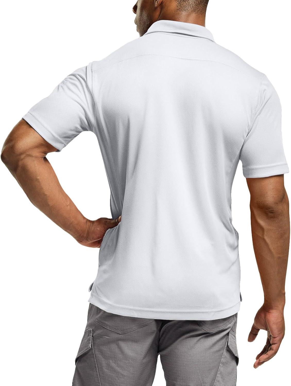 CQR Men’s Polo Shirts, Tactical Short Sleeve Golf Performance Shirts, Lightweight Dry Fit UPF 50+ Pique(Frost Essential Tundra)