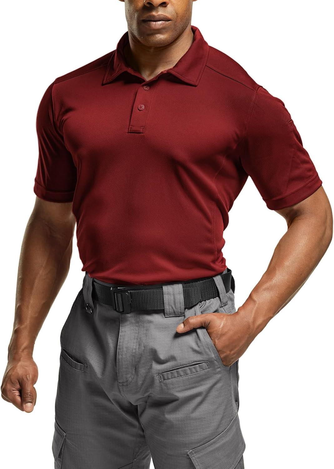 CQR Men’s Polo Shirts, Tactical Short Sleeve Golf Performance Shirts, Lightweight Dry Fit UPF 50+ Pique(Commander Burgundy)
