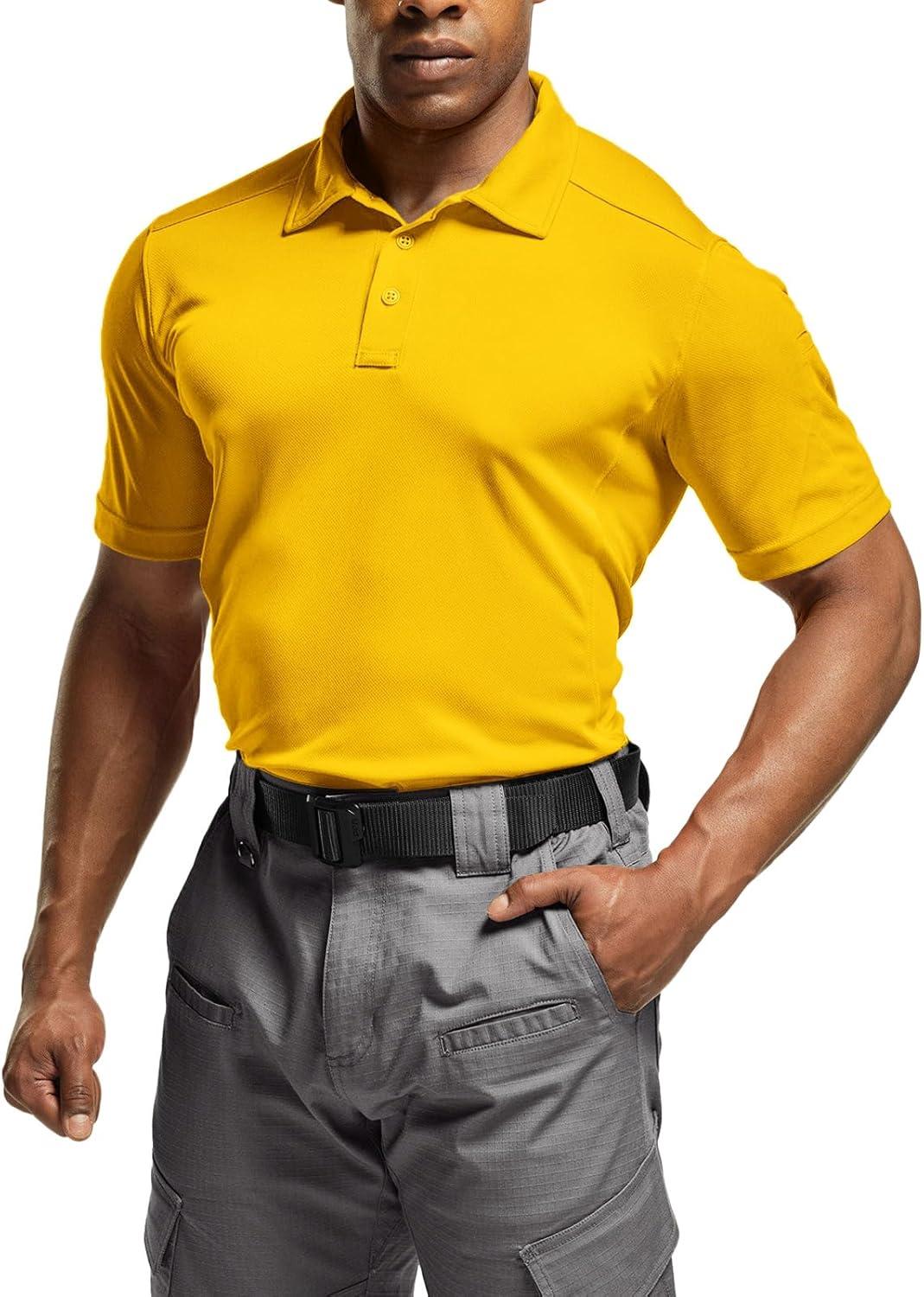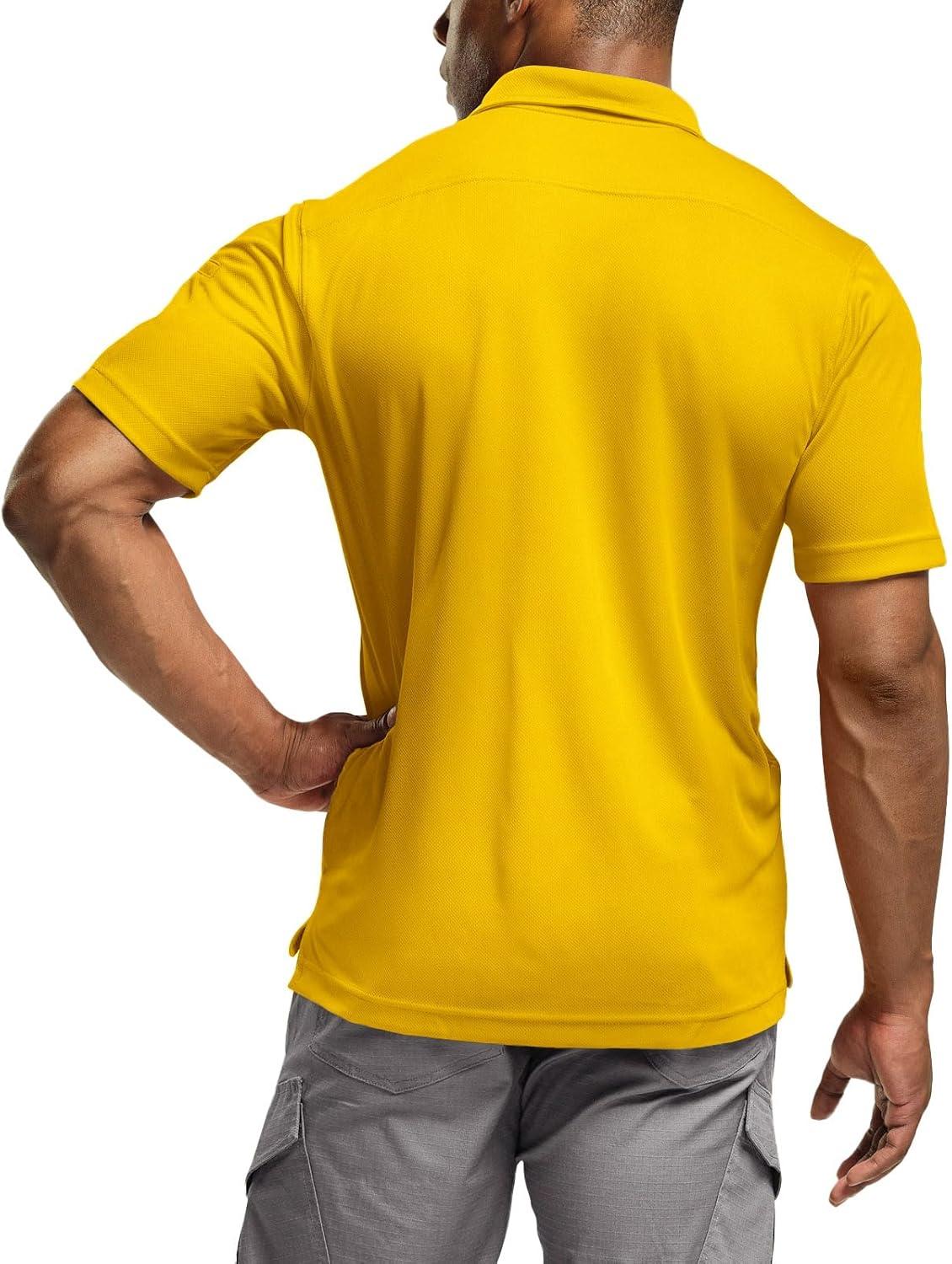 CQR Men’s Polo Shirts, Tactical Short Sleeve Golf Performance Shirts, Lightweight Dry Fit UPF 50+ Pique(Frost Essential Yellow)
