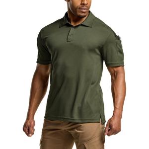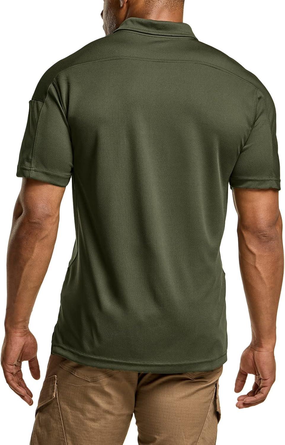 CQR Men’s Polo Shirts, Tactical Short Sleeve Golf Performance Shirts, Lightweight Dry Fit UPF 50+ Pique(Frost Basic Army Green)