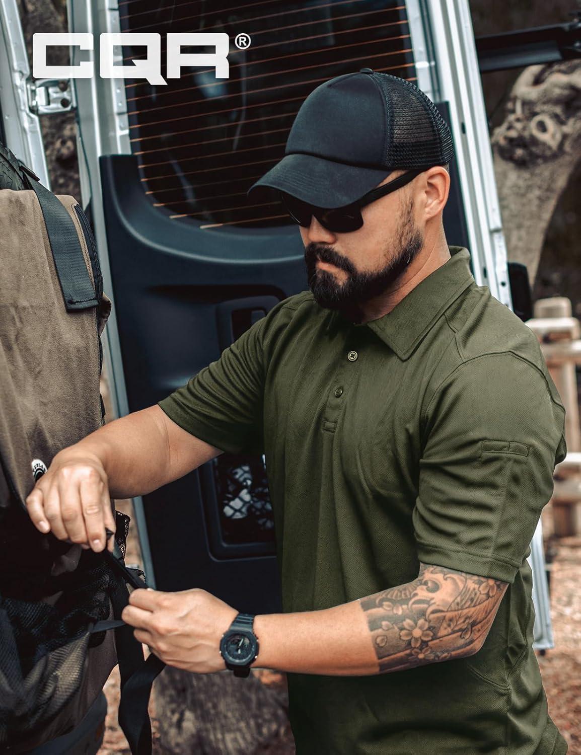 CQR Men’s Polo Shirts, Tactical Short Sleeve Golf Performance Shirts, Lightweight Dry Fit UPF 50+ Pique(Frost Essential Army Green)