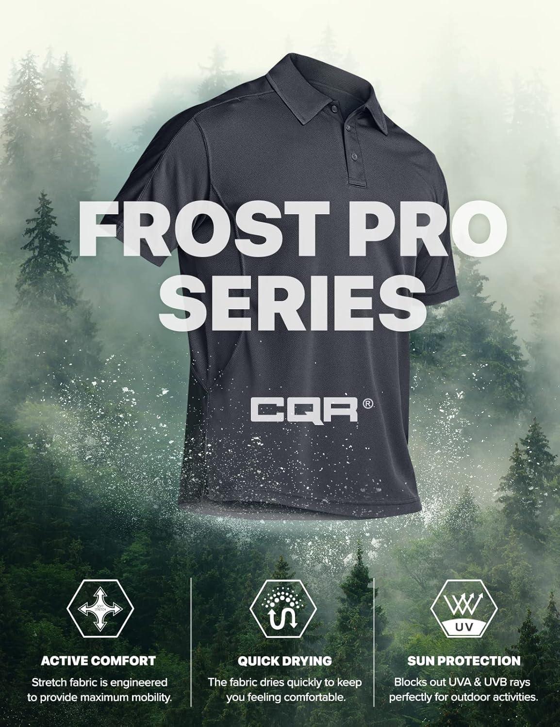 CQR Men’s Polo Shirts, Tactical Short Sleeve Golf Performance Shirts, Lightweight Dry Fit UPF 50+ Pique(Frost Pro Black)