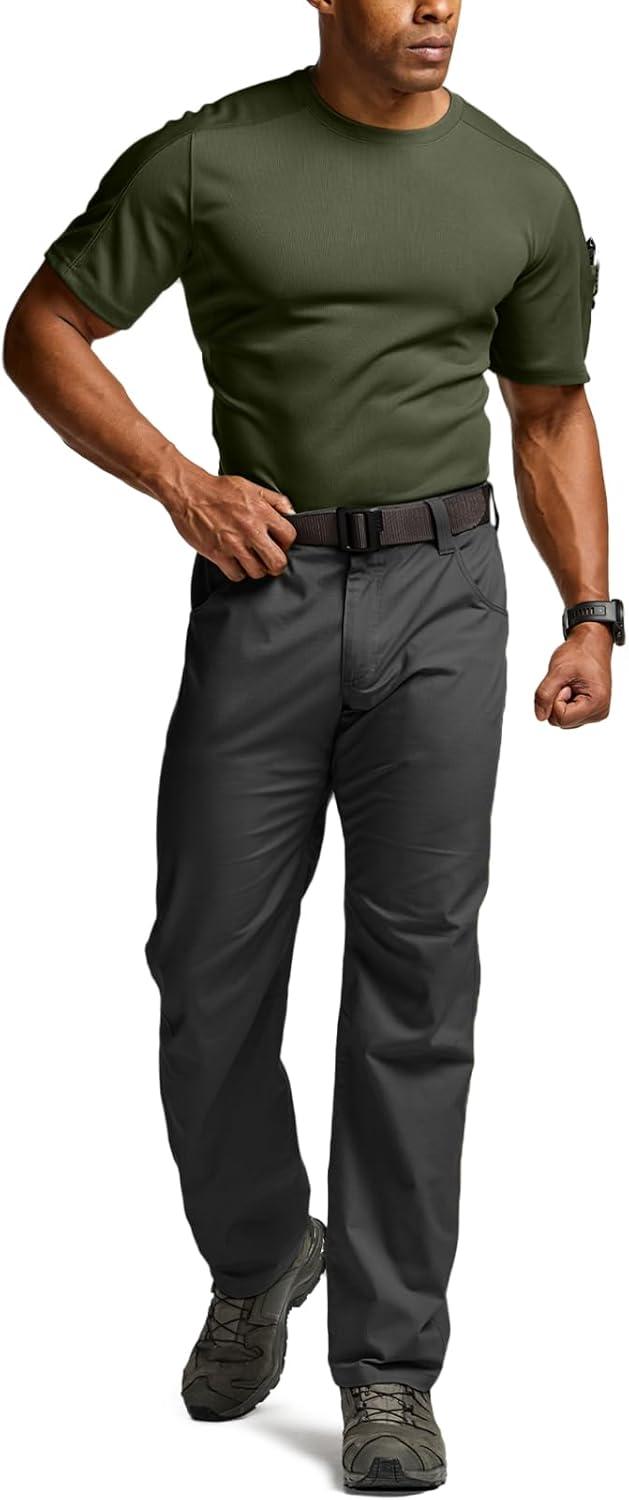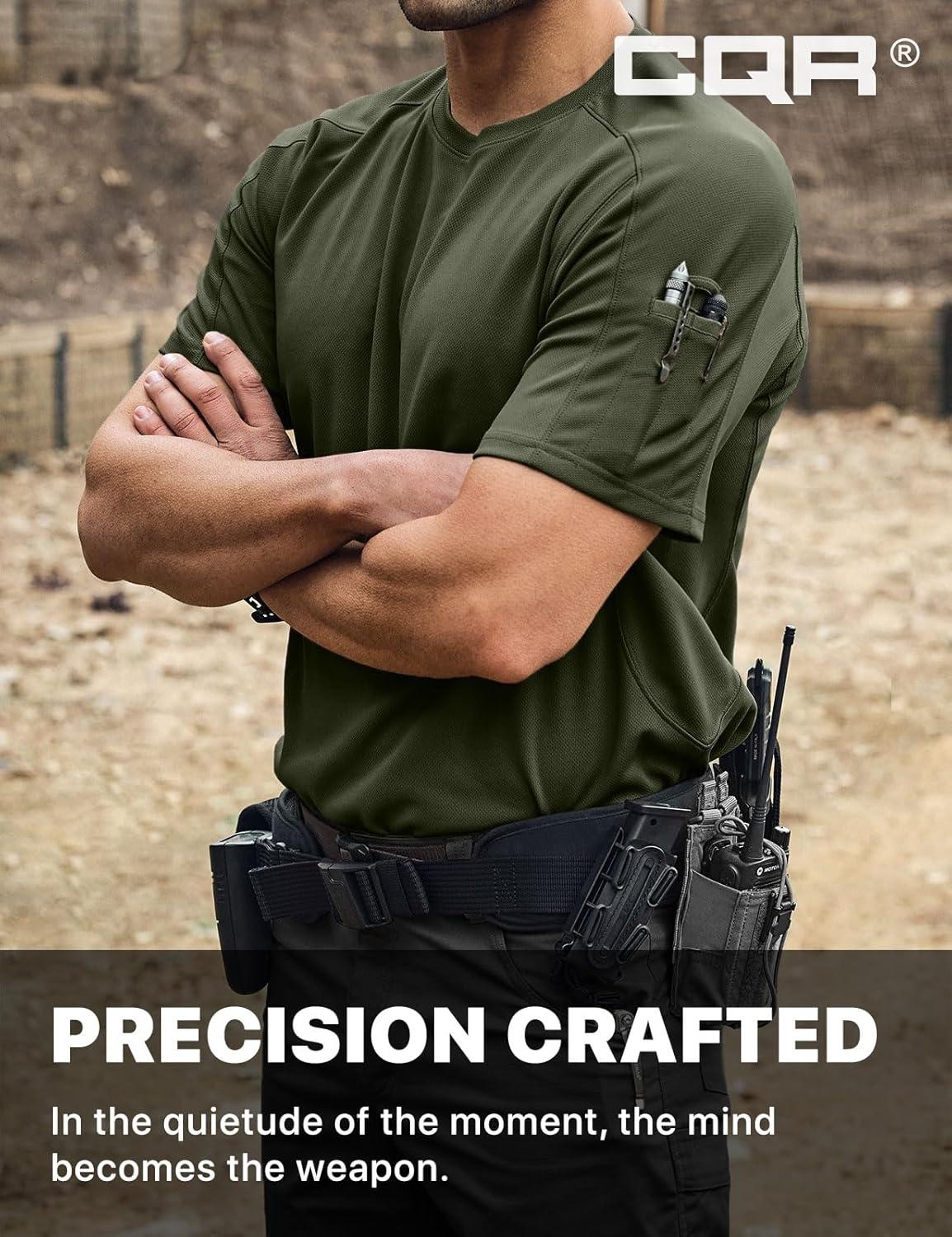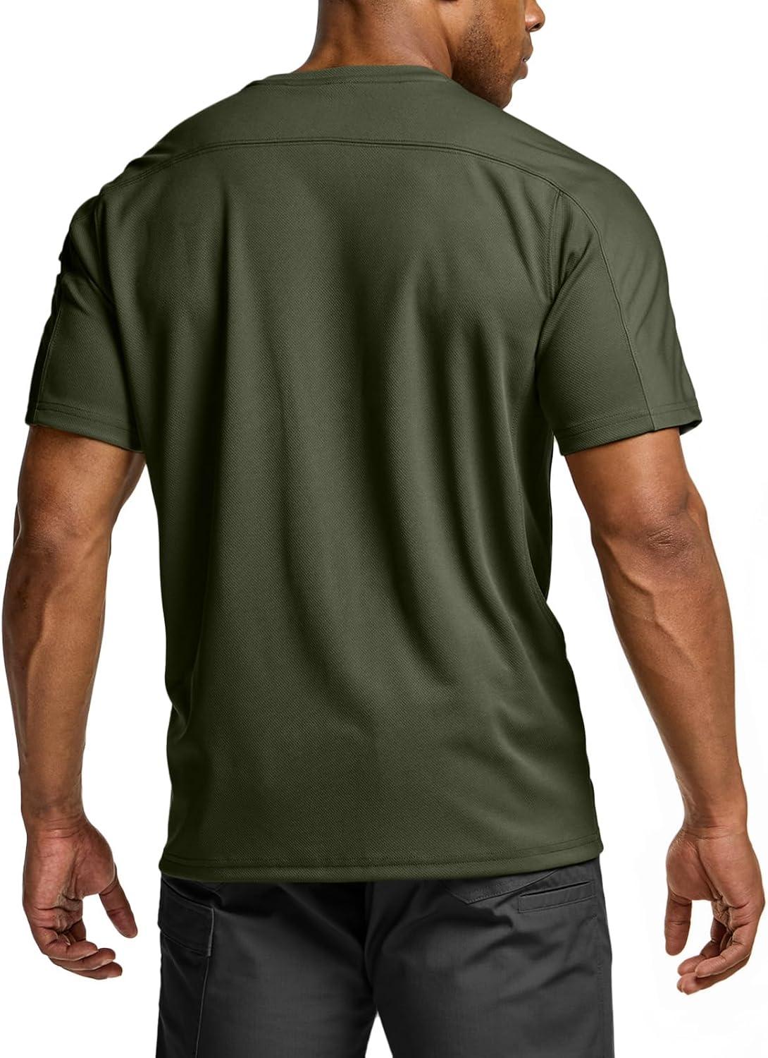 CQR Men’s Polo Shirts, Tactical Short Sleeve Golf Performance Shirts, Lightweight Dry Fit UPF 50+ Pique(Frost Pro Crewneck Army Green)