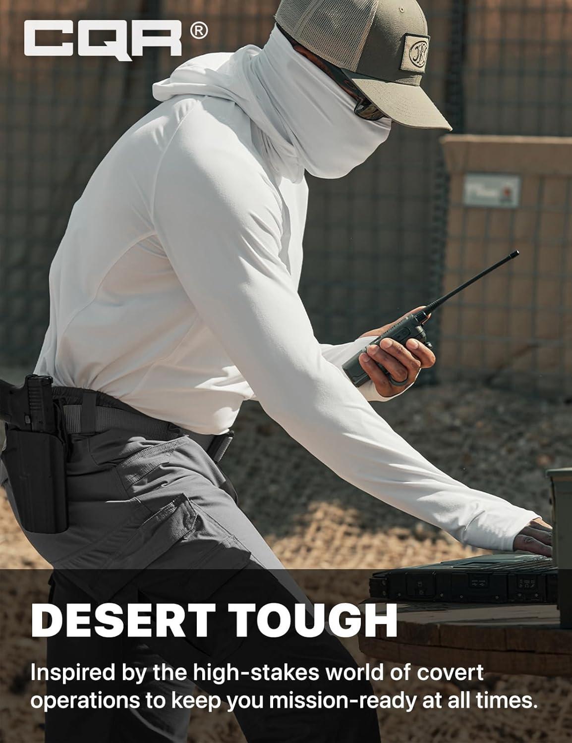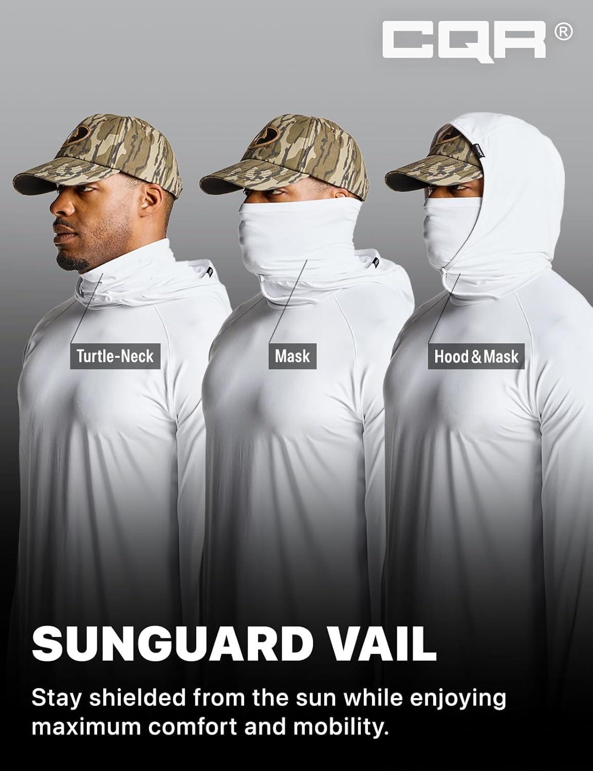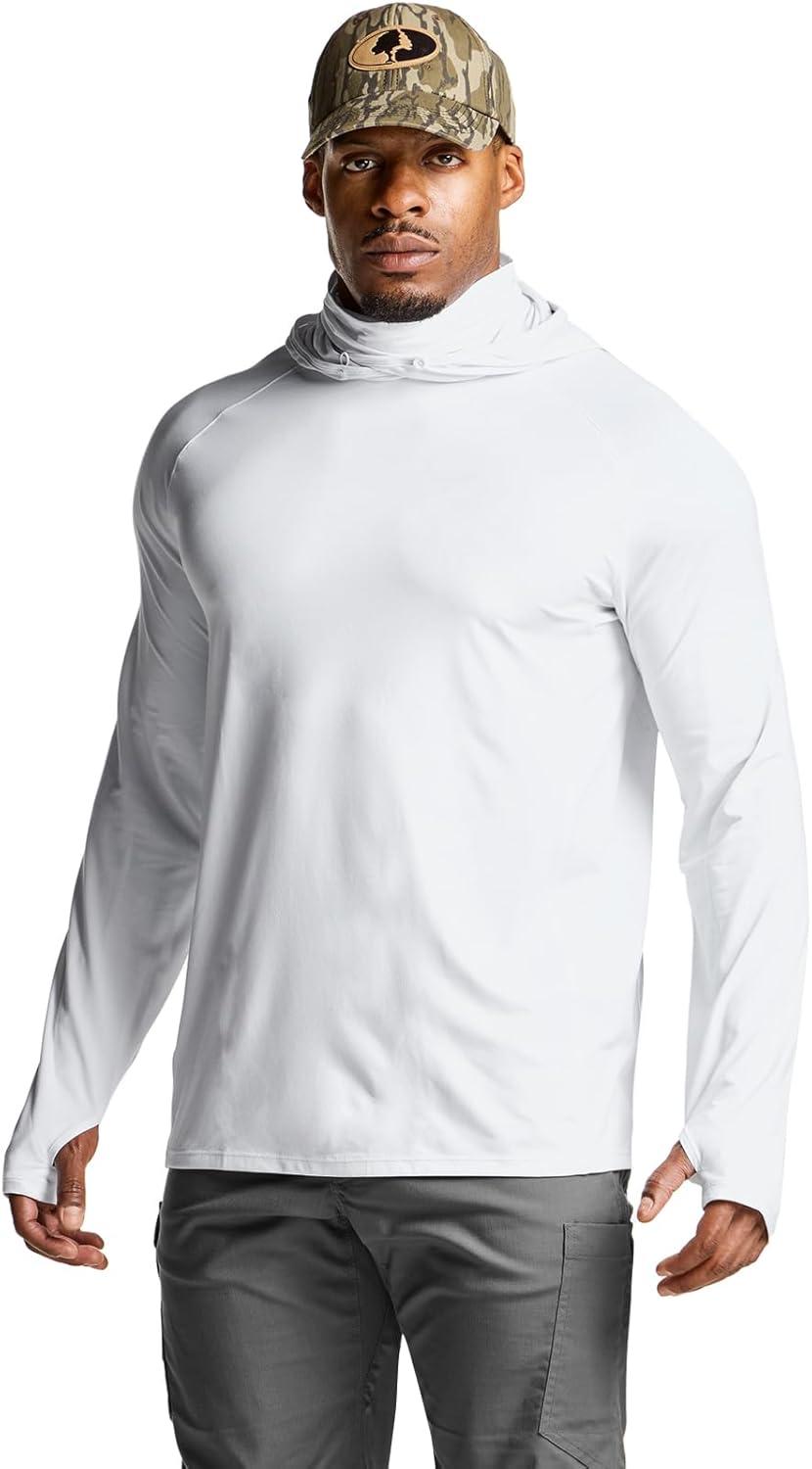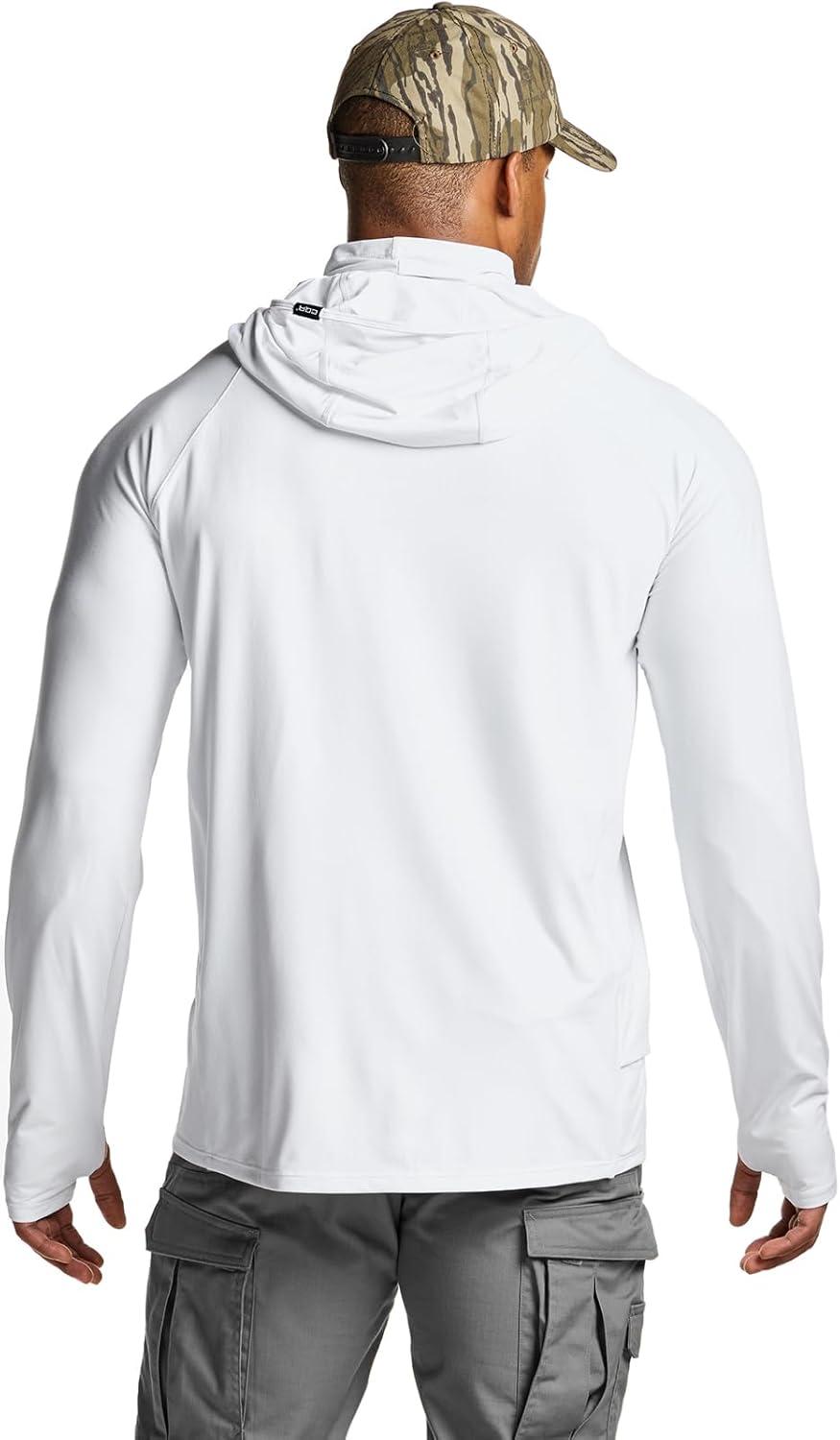 CQR Men’s UPF50+ Sun Protection Shirts, Quick Dry Long Sleeve Rash Guard, Athletic Running Workout Fishing Cooling Shirts(Response Hoodie White)