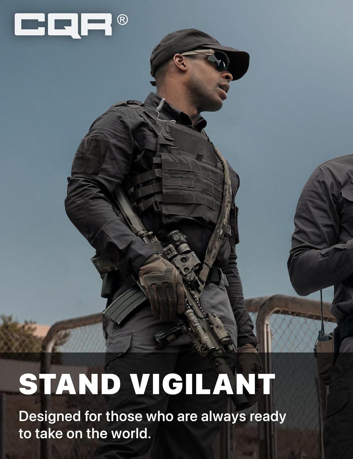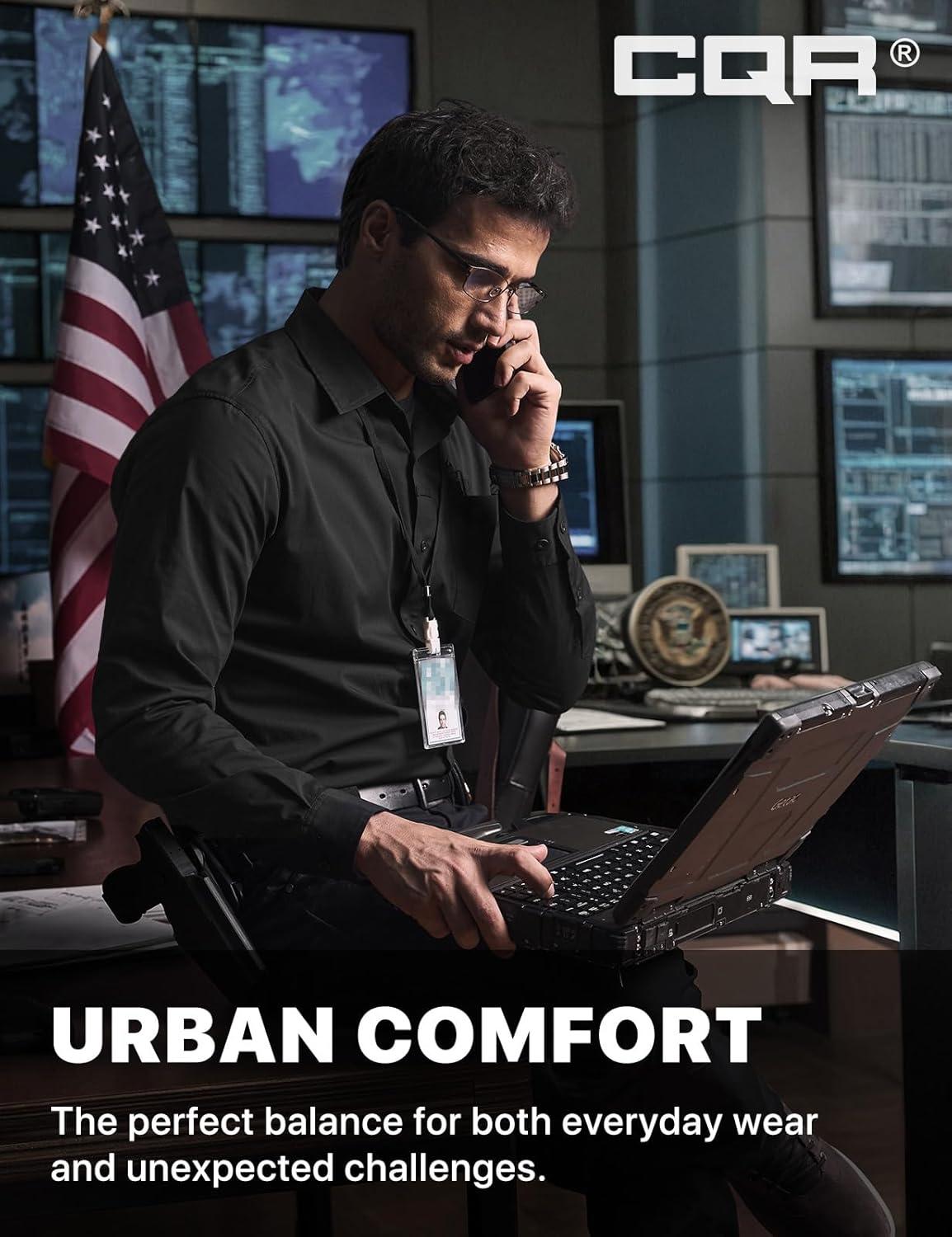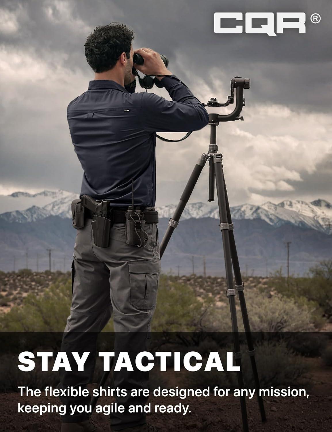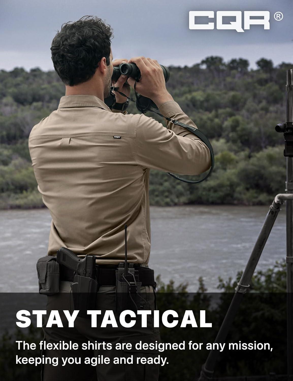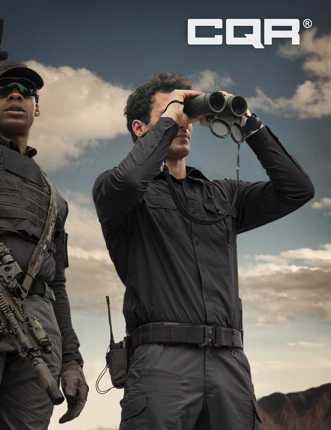 CQR Men’s Long Sleeve Tactical Shirts, Ripstop Military Work Shirts, UPF 50+ Breathable Button Down Outdoor Hiking Shirt(Journeyman Black)