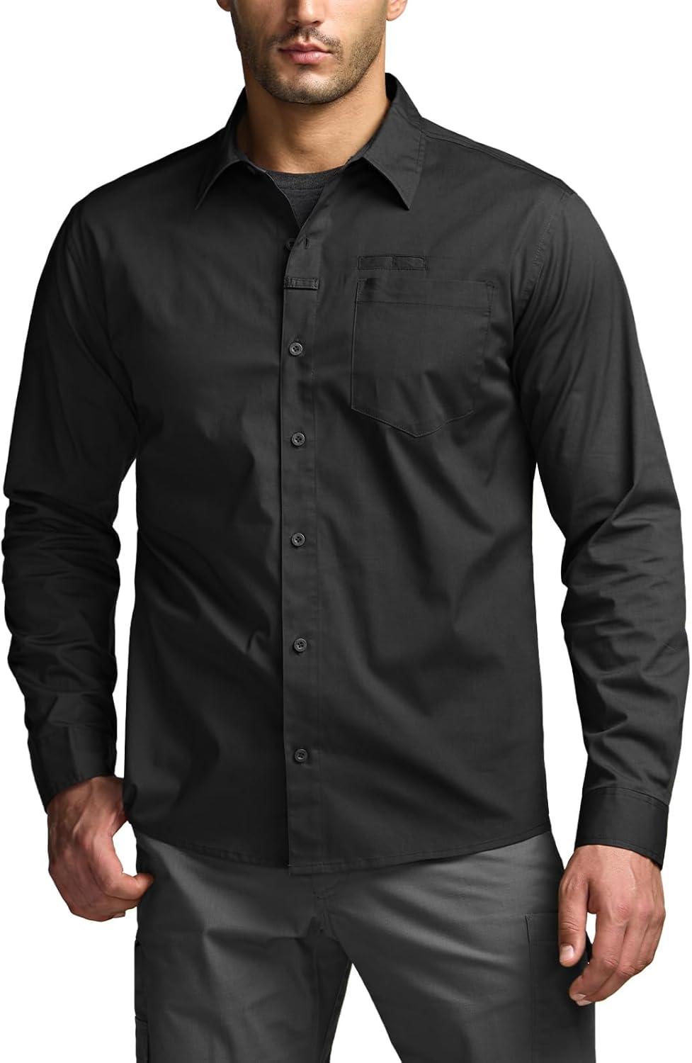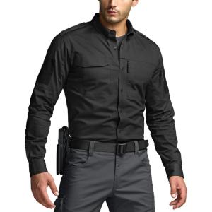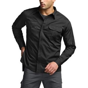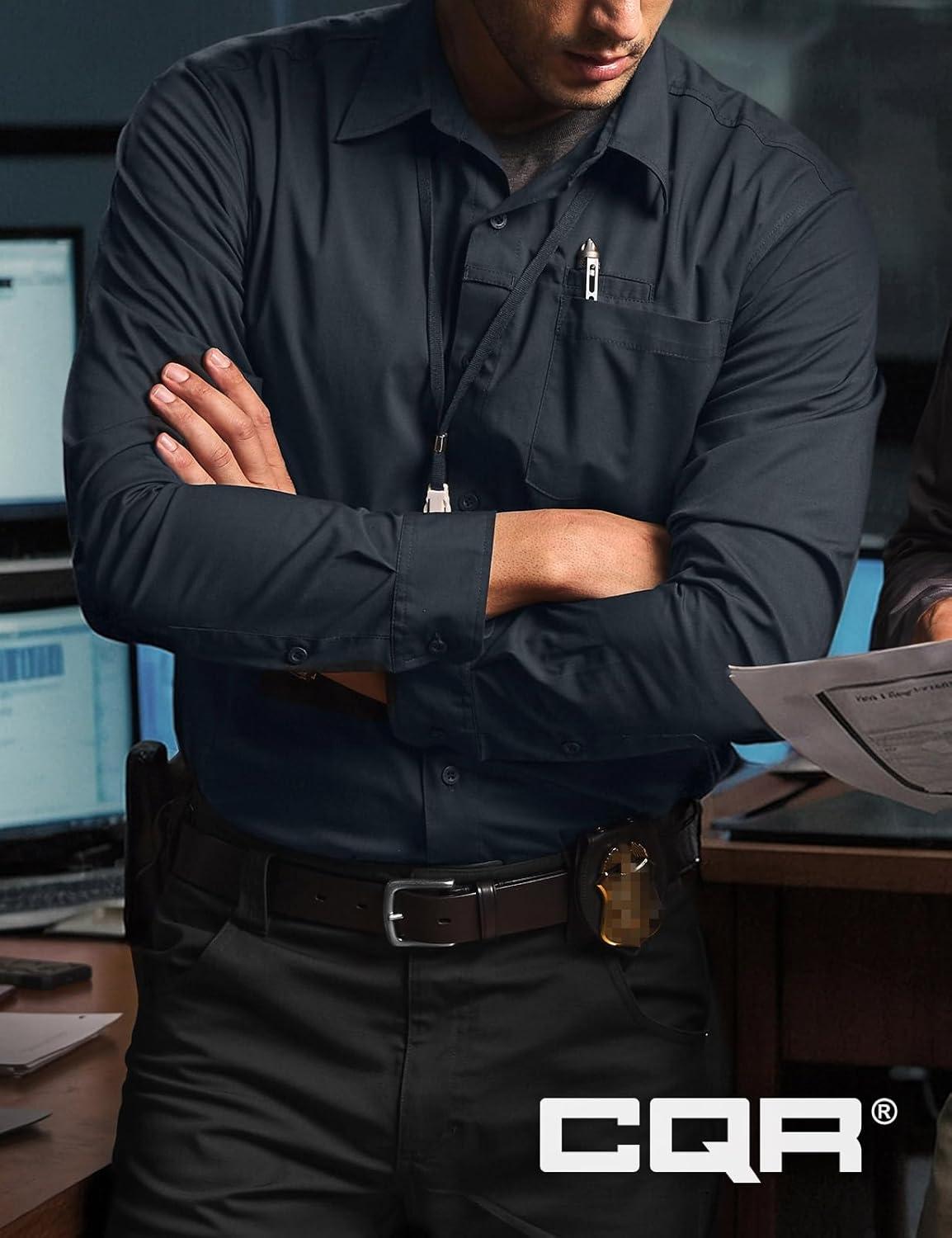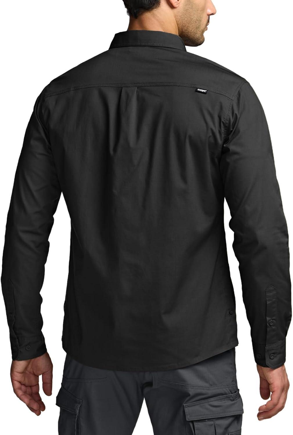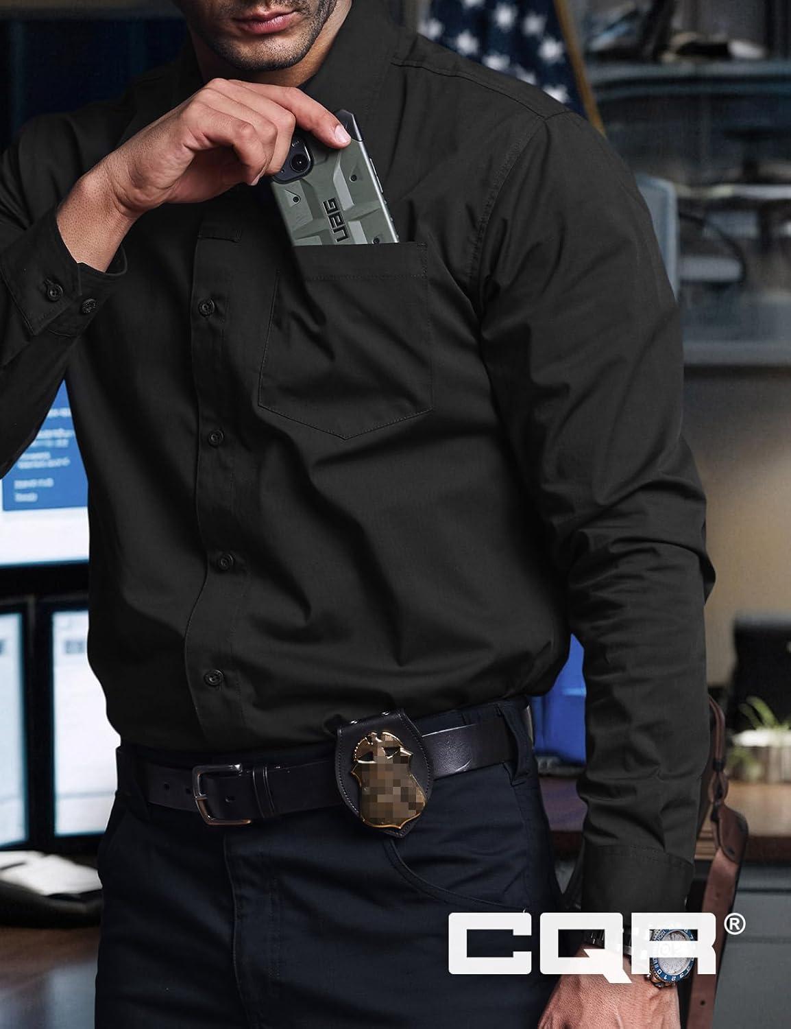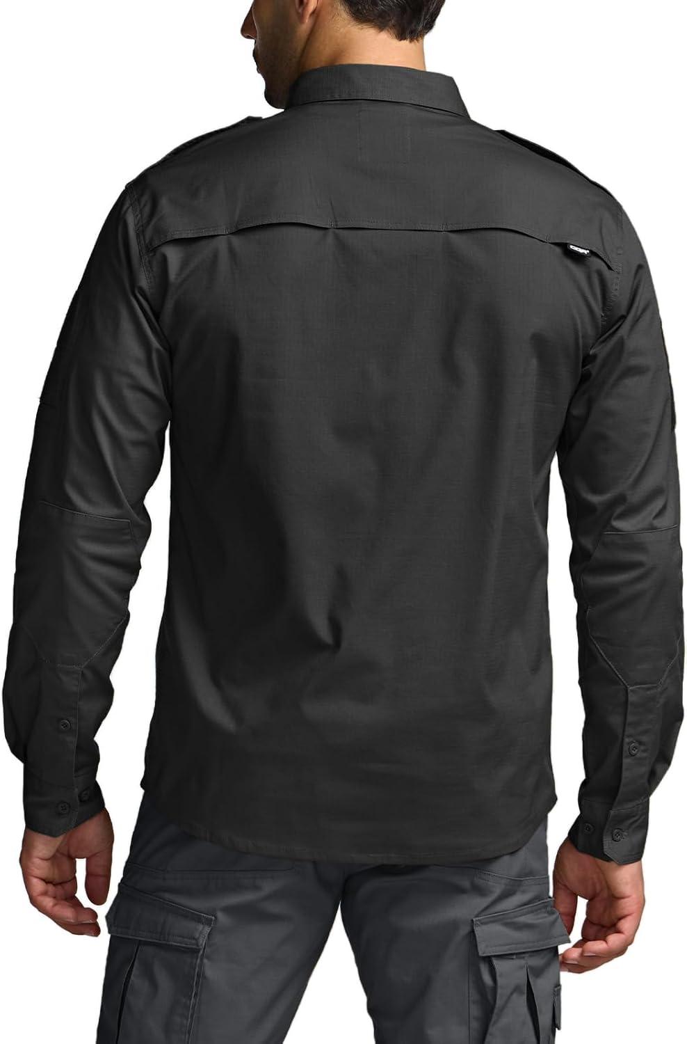 CQR Men’s Long Sleeve Tactical Shirts, Ripstop Military Work Shirts, UPF 50+ Breathable Button Down Outdoor Hiking Shirt(Supervisor Black)