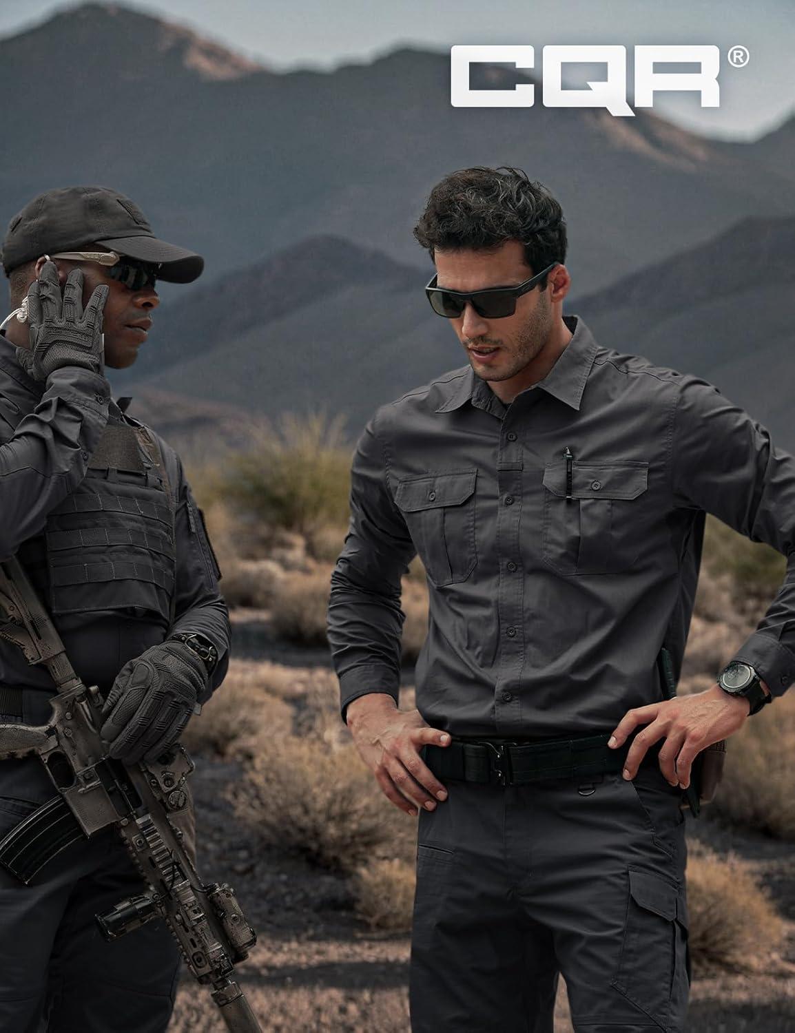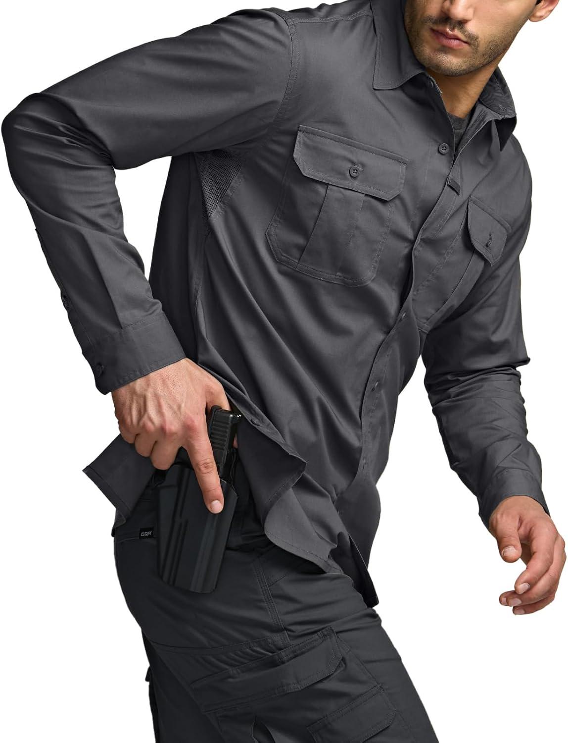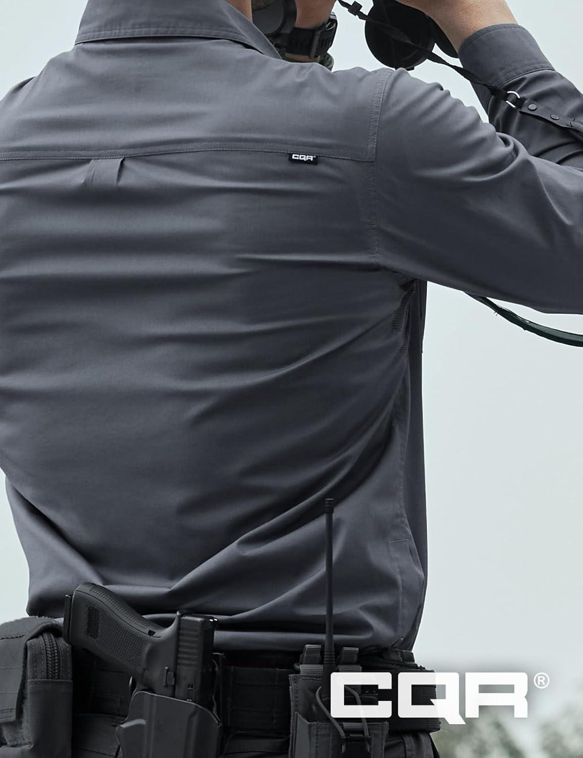CQR Men’s Long Sleeve Tactical Shirts, Ripstop Military Work Shirts, UPF 50+ Breathable Button Down Outdoor Hiking Shirt(Metro Charcoal)