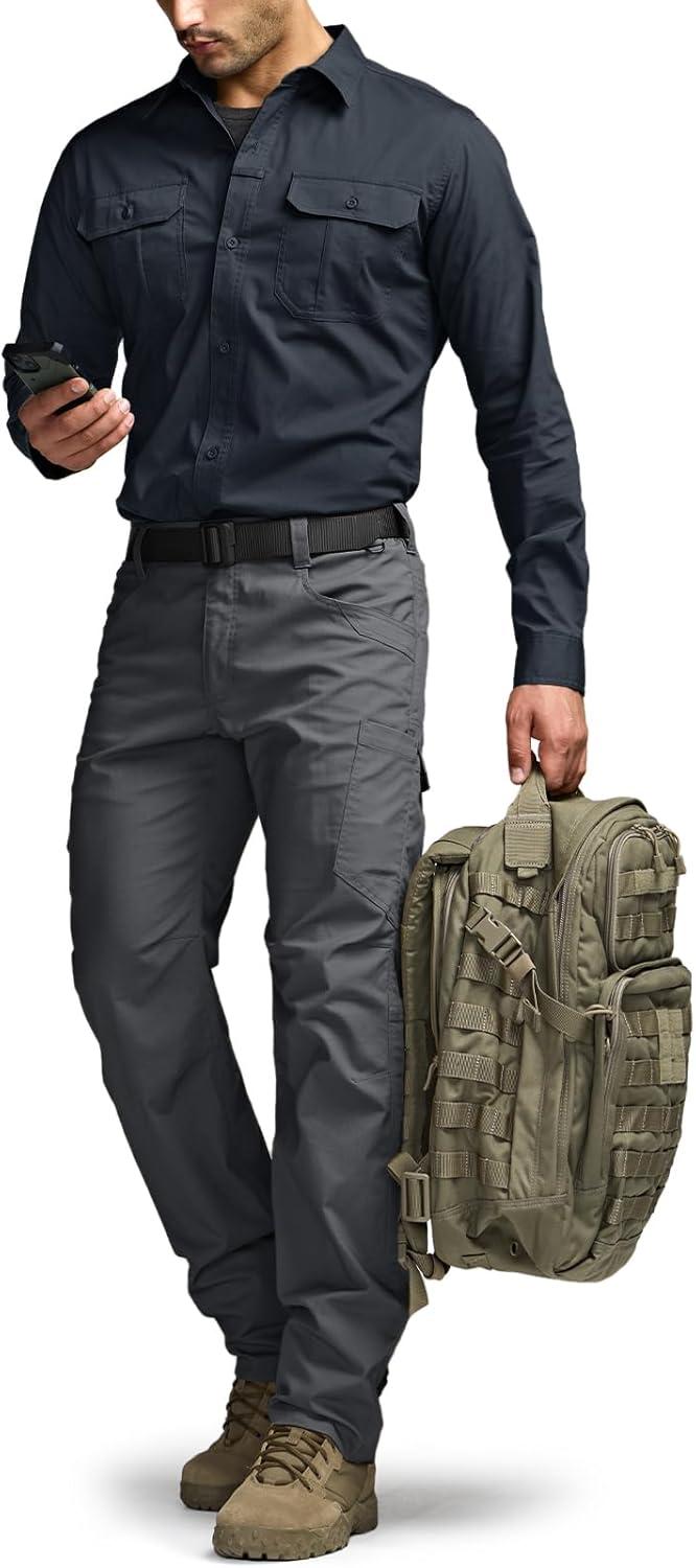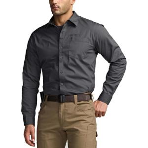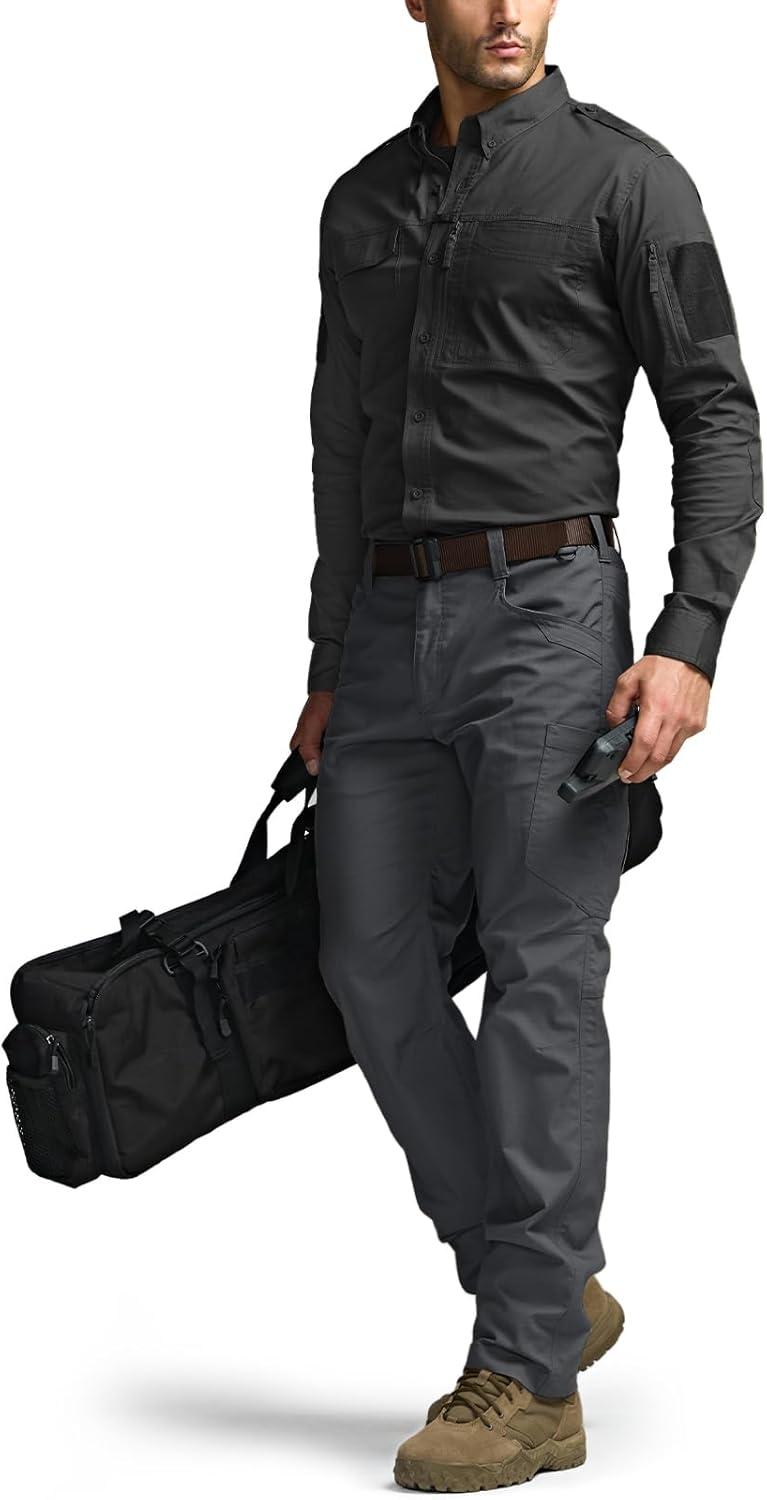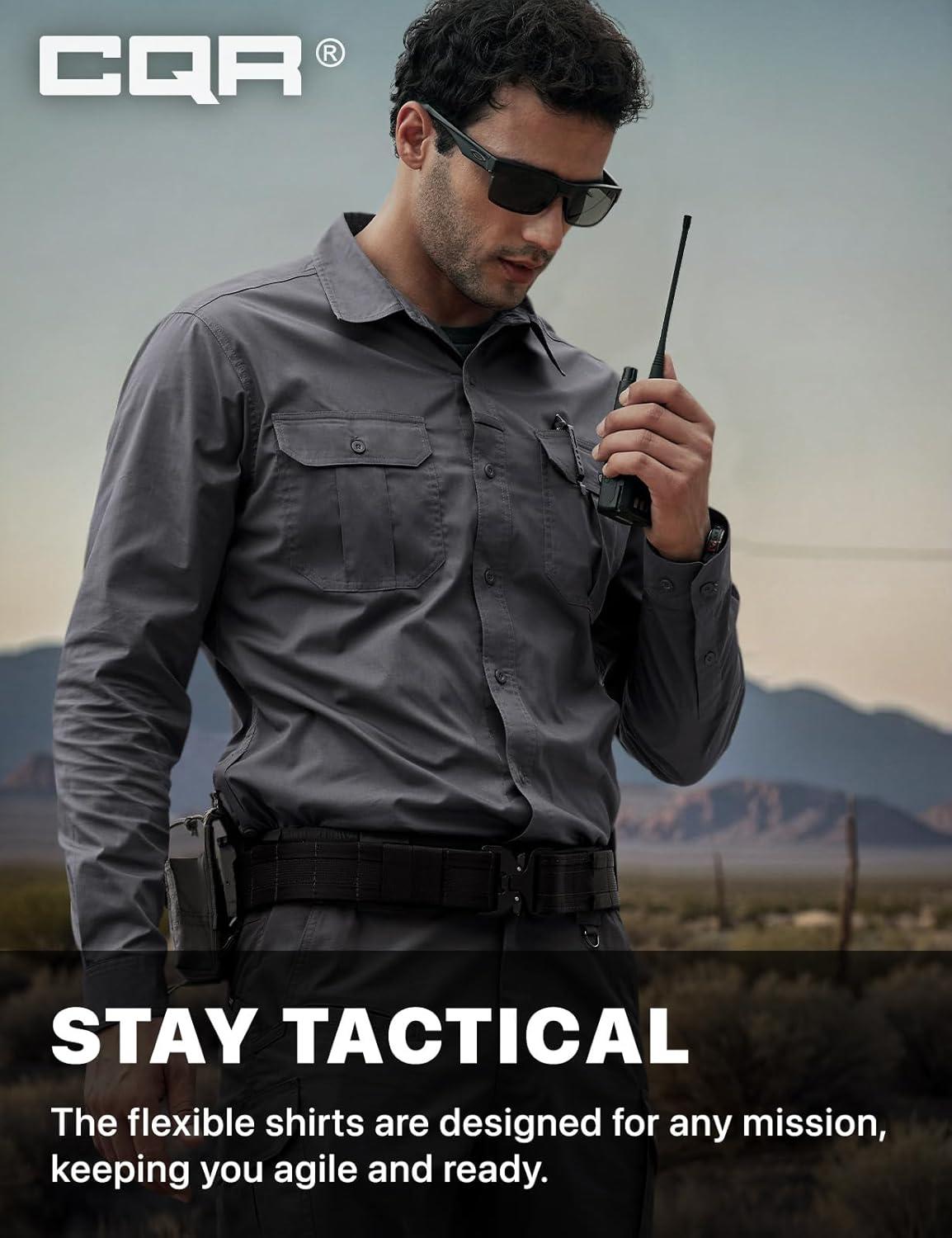 CQR Men’s Long Sleeve Tactical Shirts, Ripstop Military Work Shirts, UPF 50+ Breathable Button Down Outdoor Hiking Shirt(Metro Charcoal)