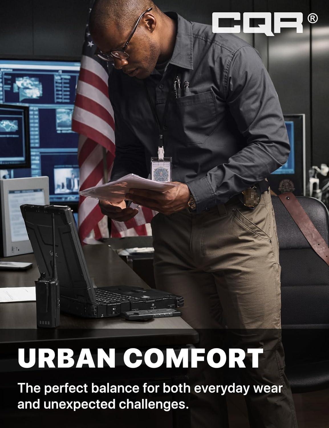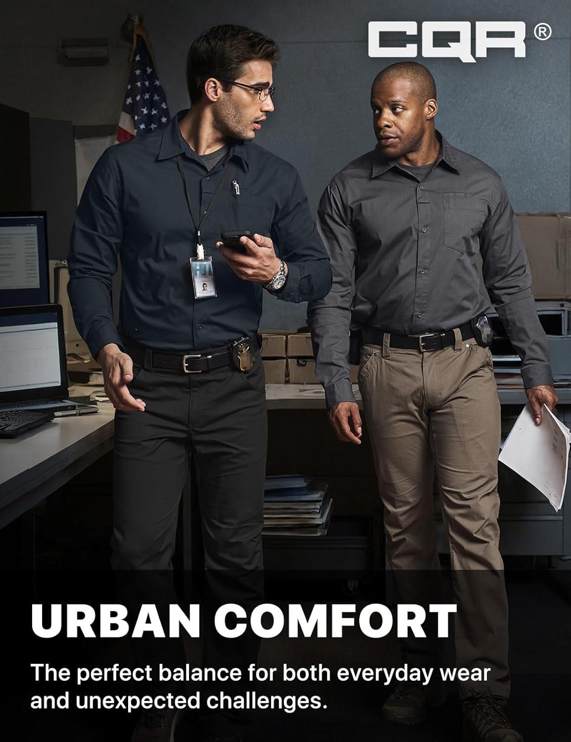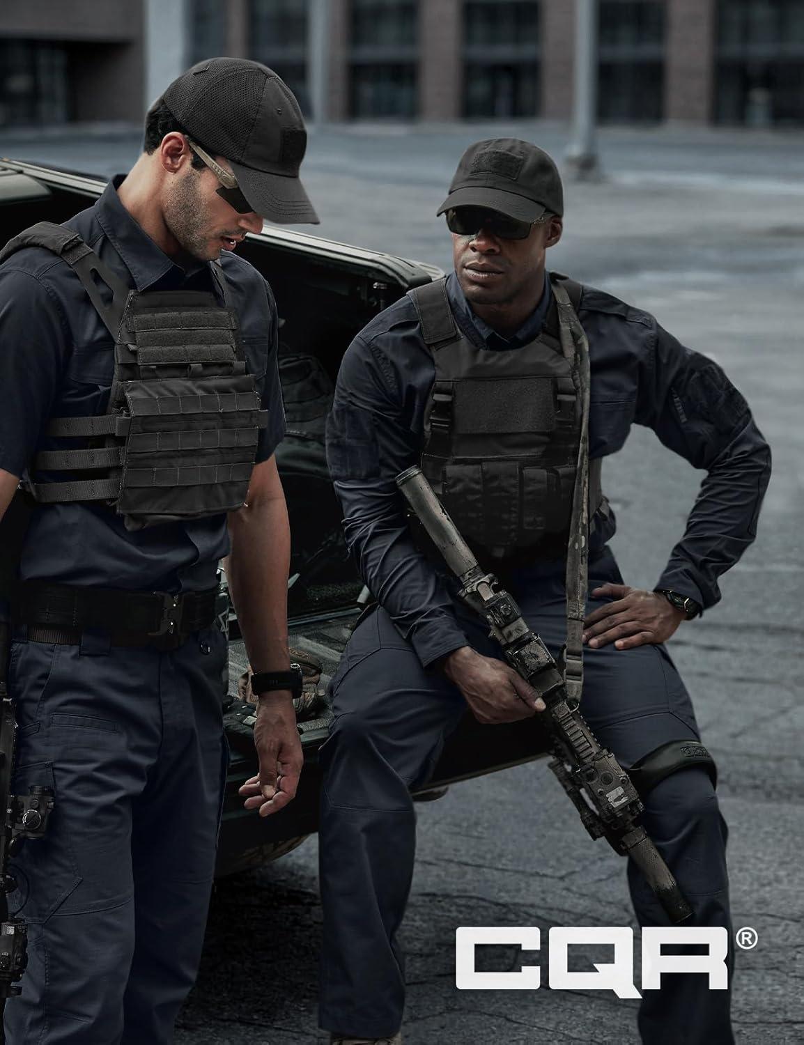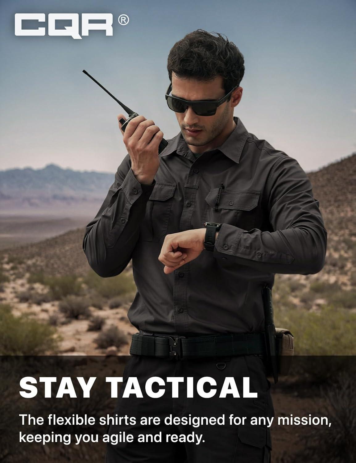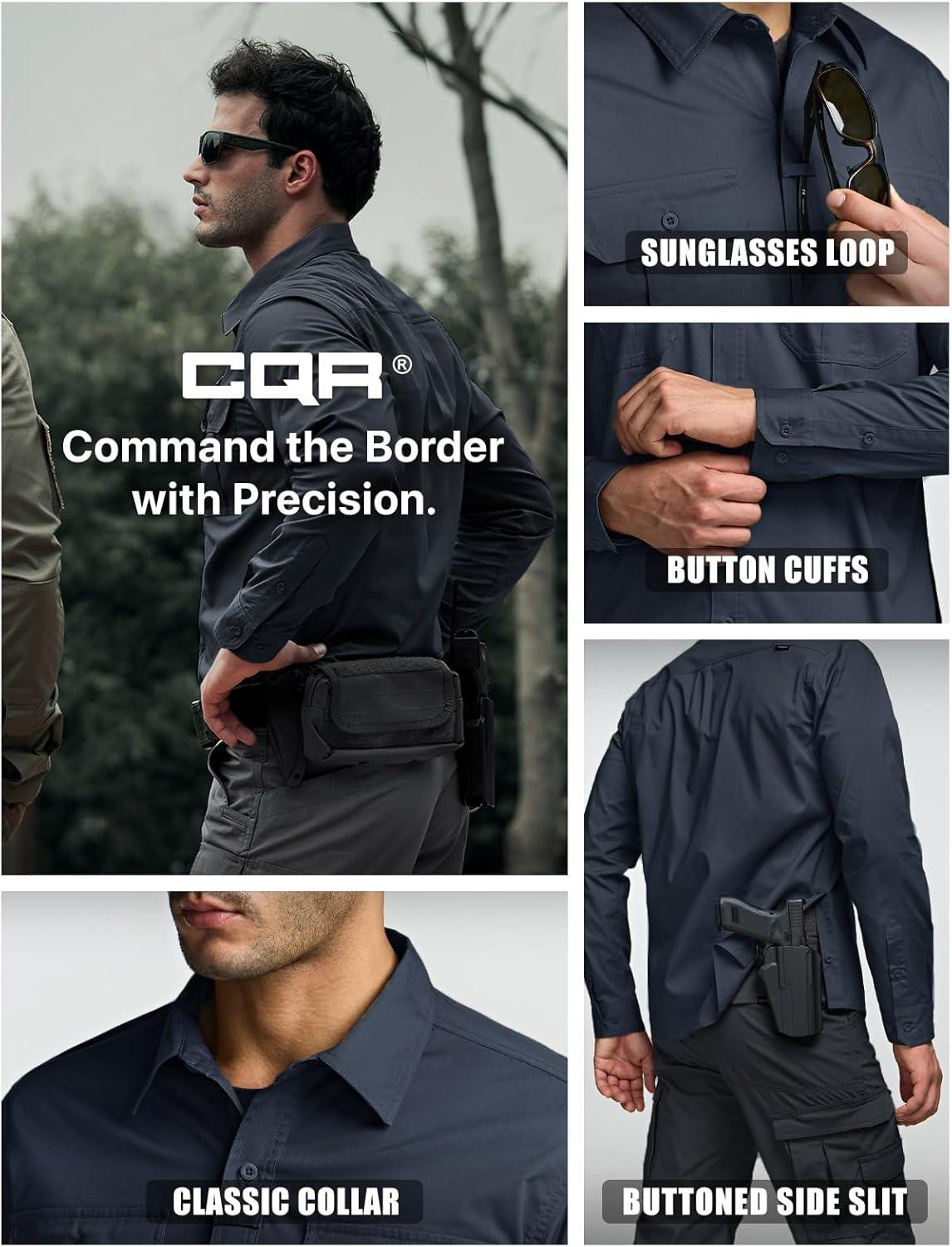 CQR Men’s Long Sleeve Tactical Shirts, Ripstop Military Work Shirts, UPF 50+ Breathable Button Down Outdoor Hiking Shirt(Metro Black)
