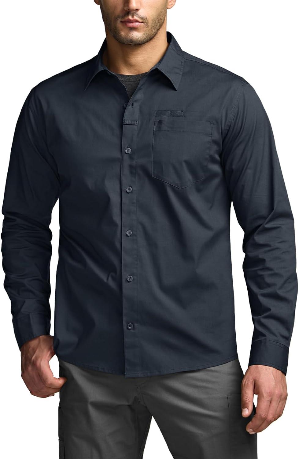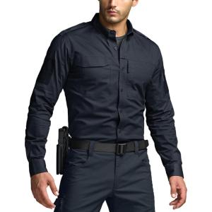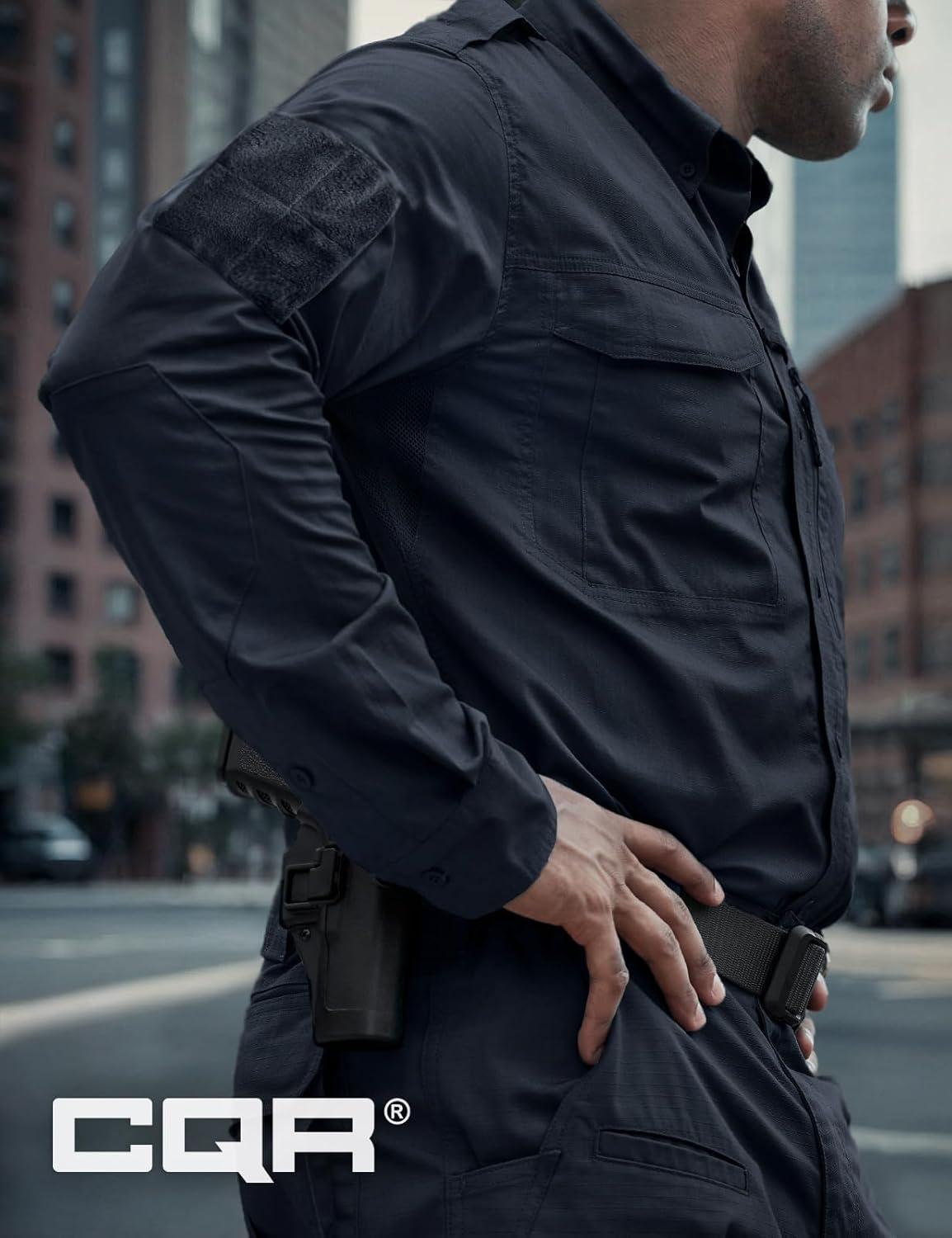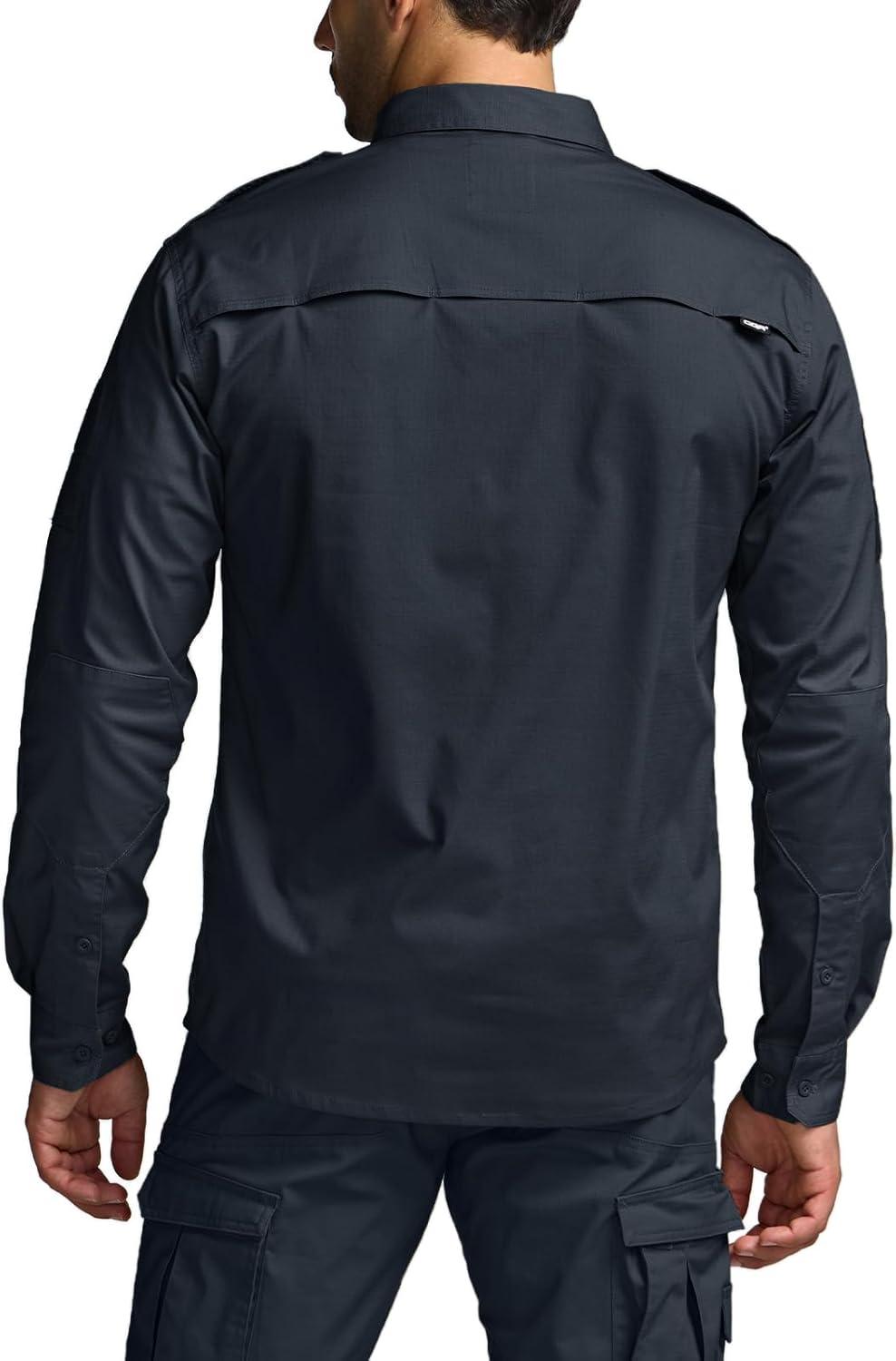 CQR Men’s Long Sleeve Tactical Shirts, Ripstop Military Work Shirts, UPF 50+ Breathable Button Down Outdoor Hiking Shirt(Metro Operator Navy)
