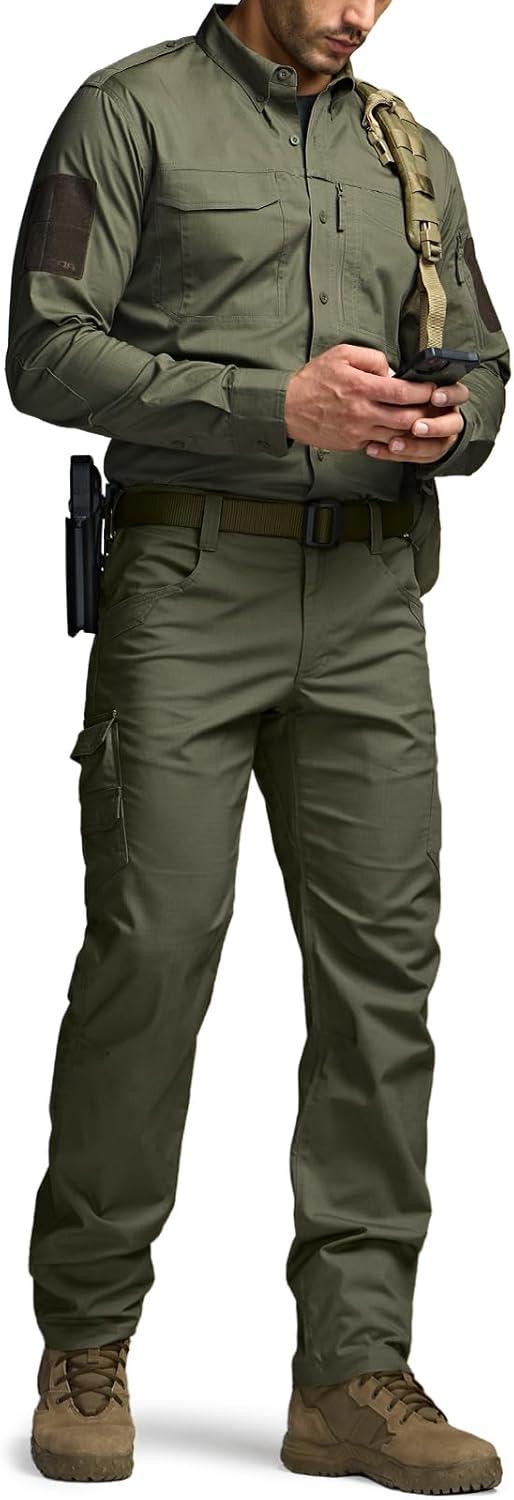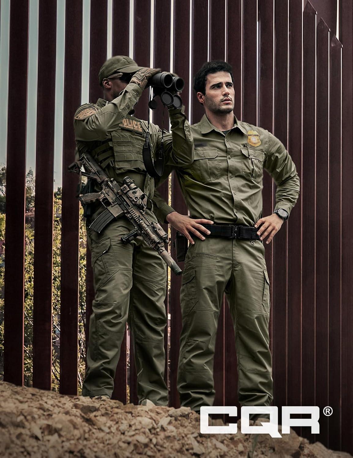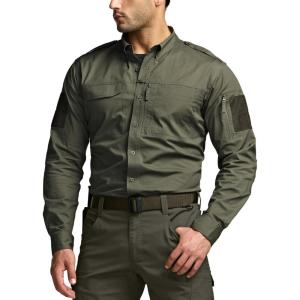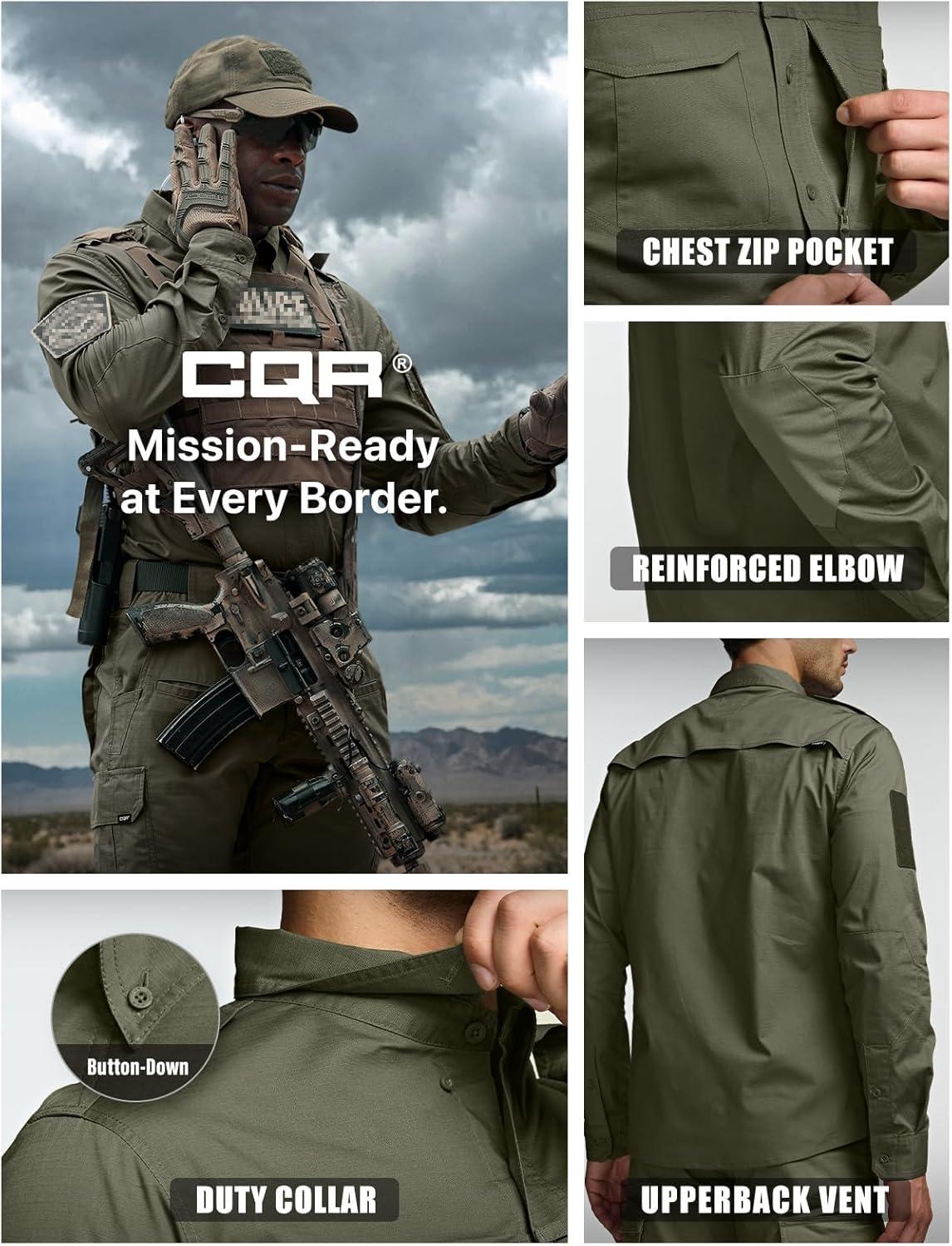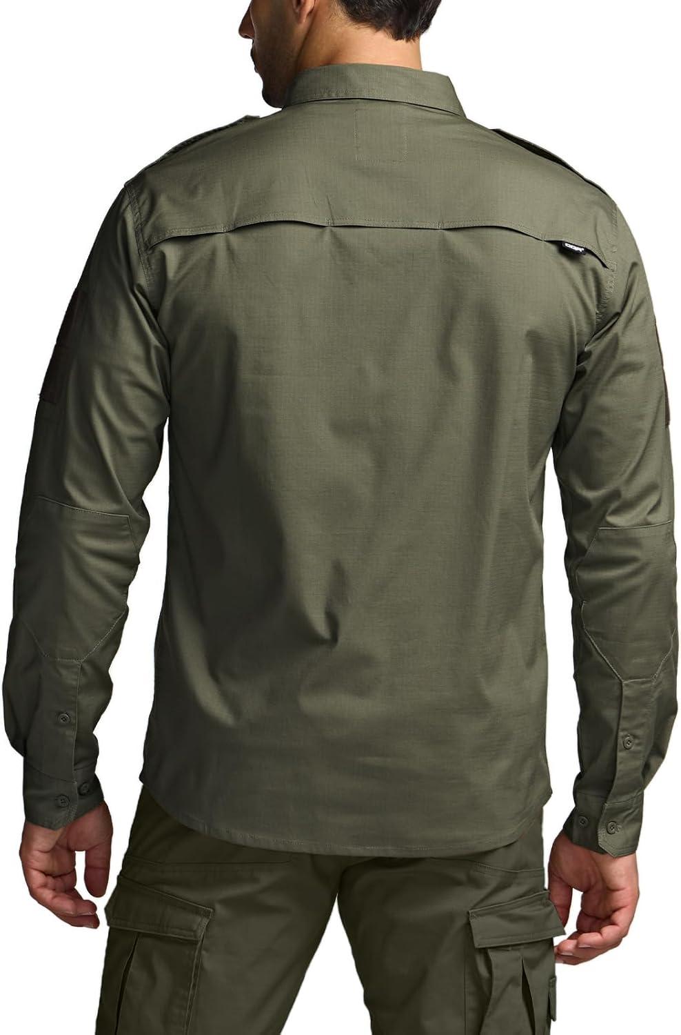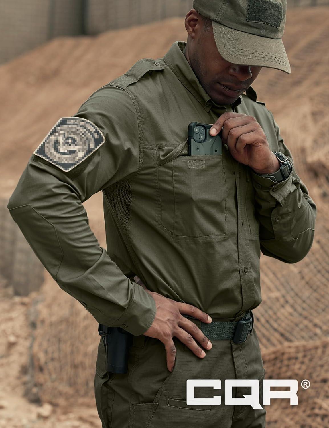 CQR Men’s Long Sleeve Tactical Shirts, Ripstop Military Work Shirts, UPF 50+ Breathable Button Down Outdoor Hiking Shirt(Supervisor Soil Green)