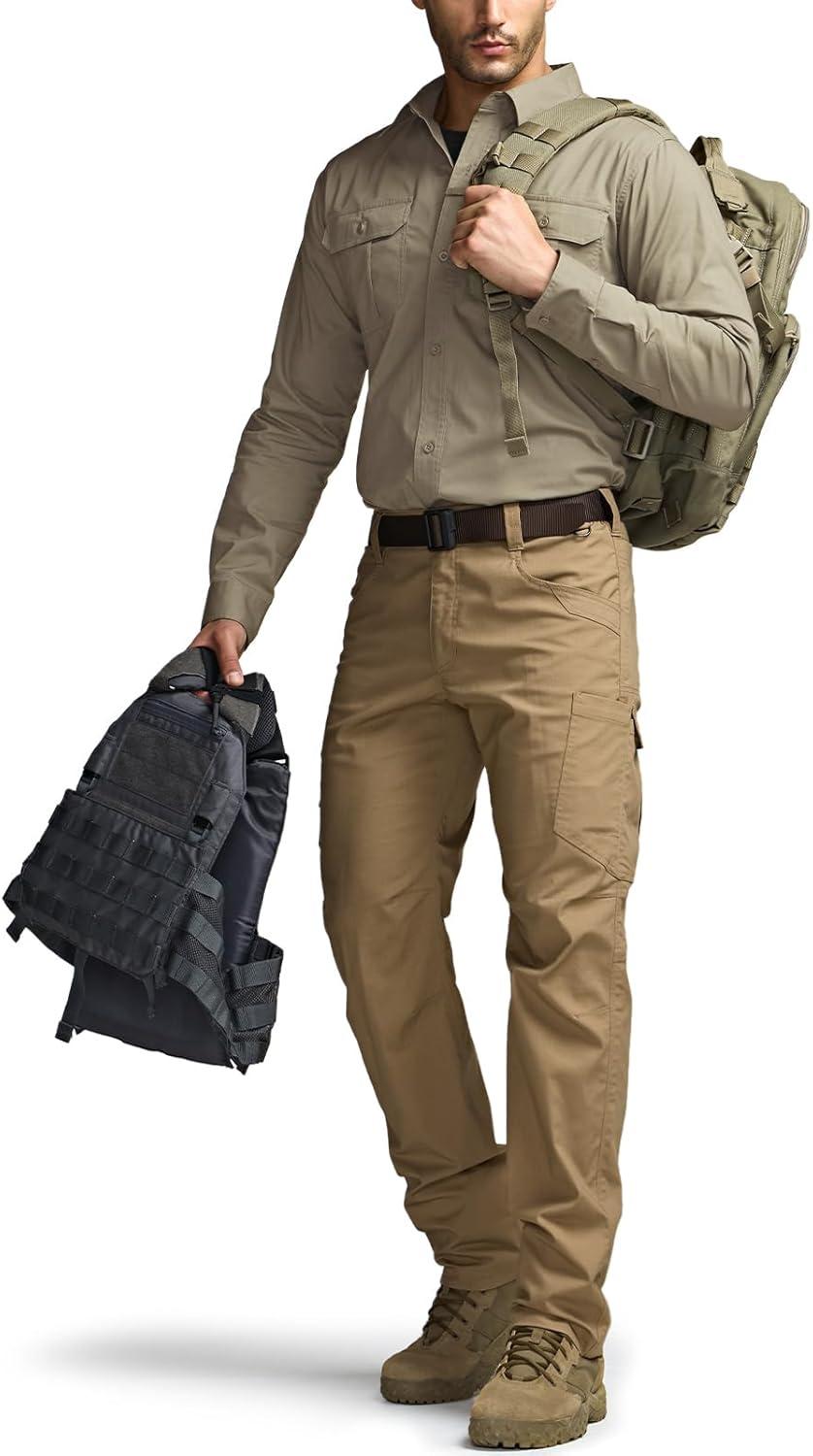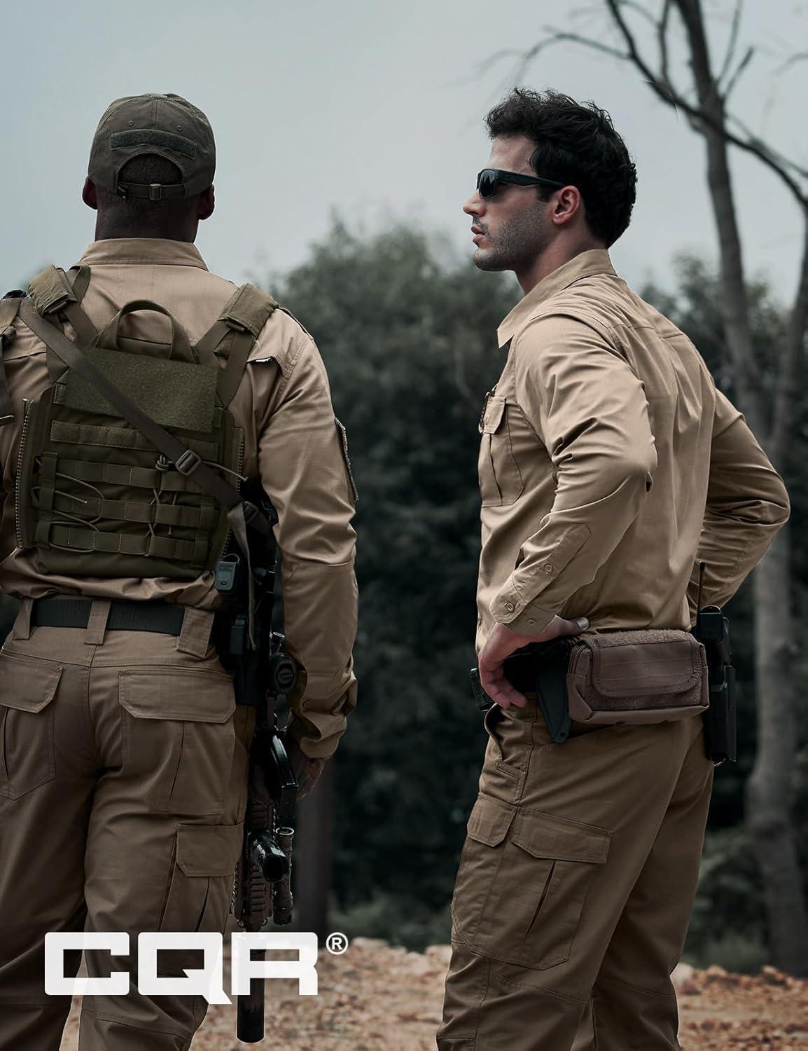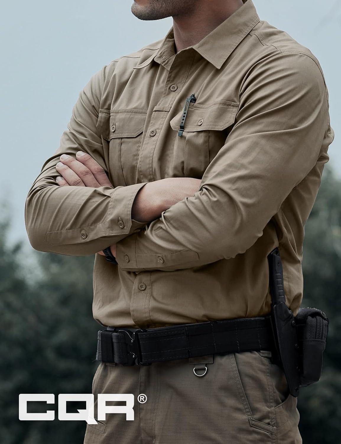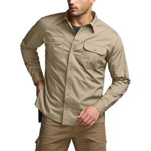 CQR Men’s Long Sleeve Tactical Shirts, Ripstop Military Work Shirts, UPF 50+ Breathable Button Down Outdoor Hiking Shirt(Supervisor Khaki)
