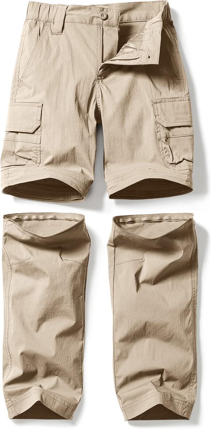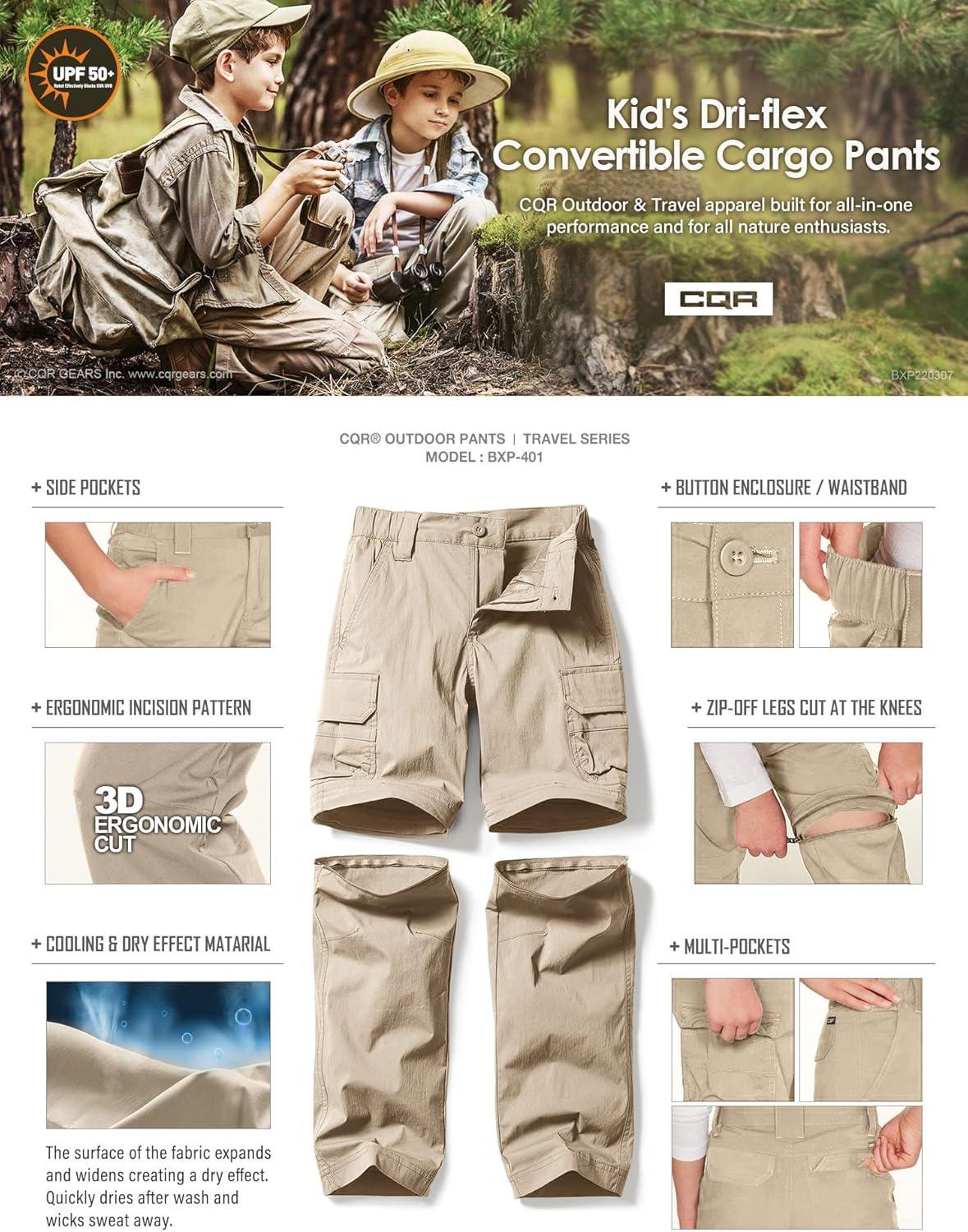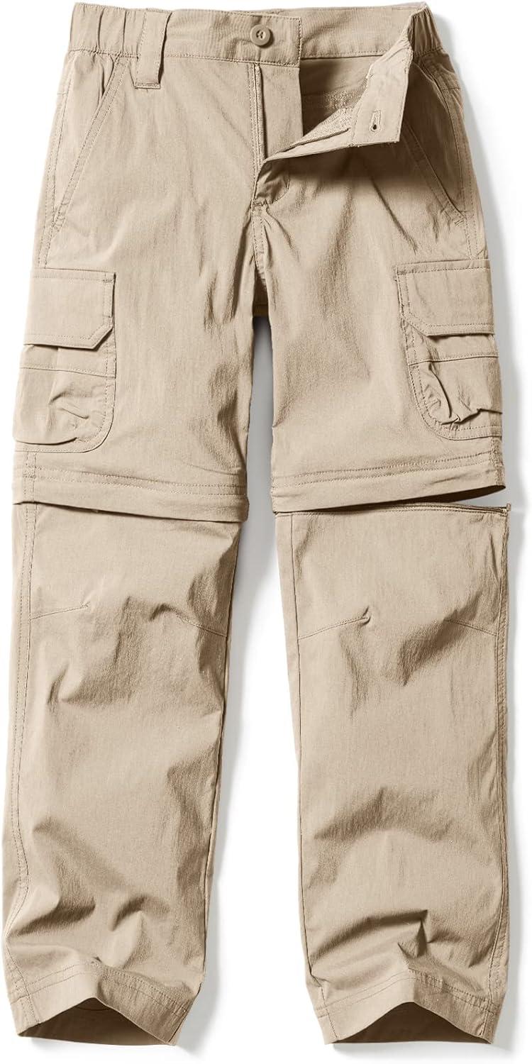 CQR Kids Youth Hiking Cargo Pants, UPF 50+ Quick Dry Convertible Zip Off Pants, Outdoor Camping Pants(Convertible Khaki)
