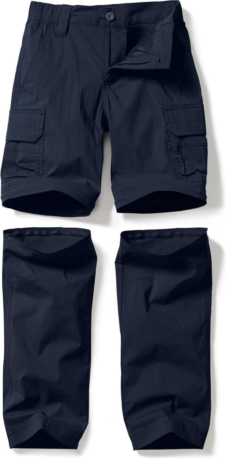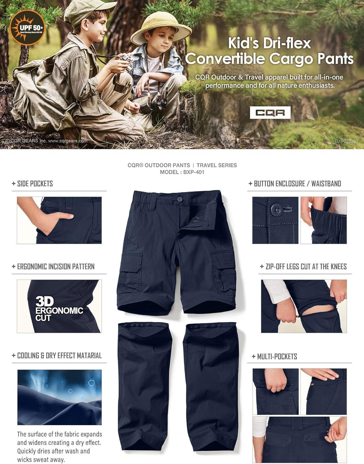 CQR Kids Youth Hiking Cargo Pants, UPF 50+ Quick Dry Convertible Zip Off Pants, Outdoor Camping Pants(Convertible Navy)