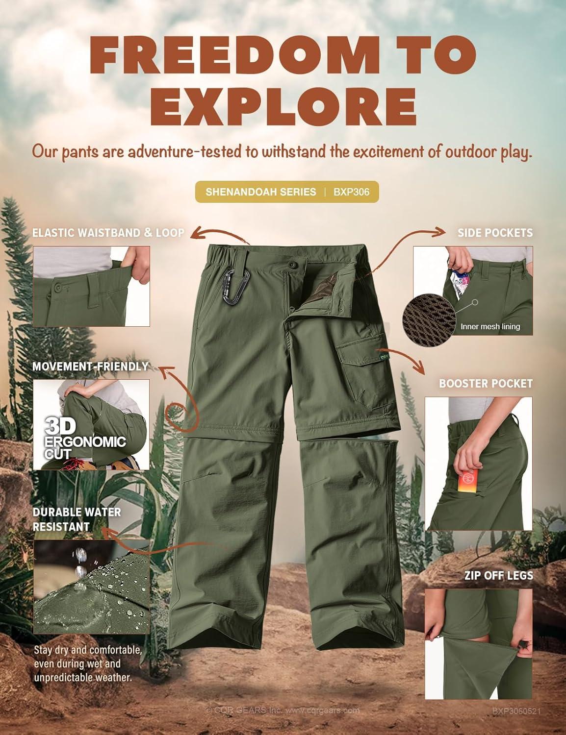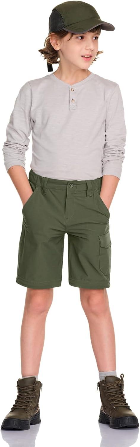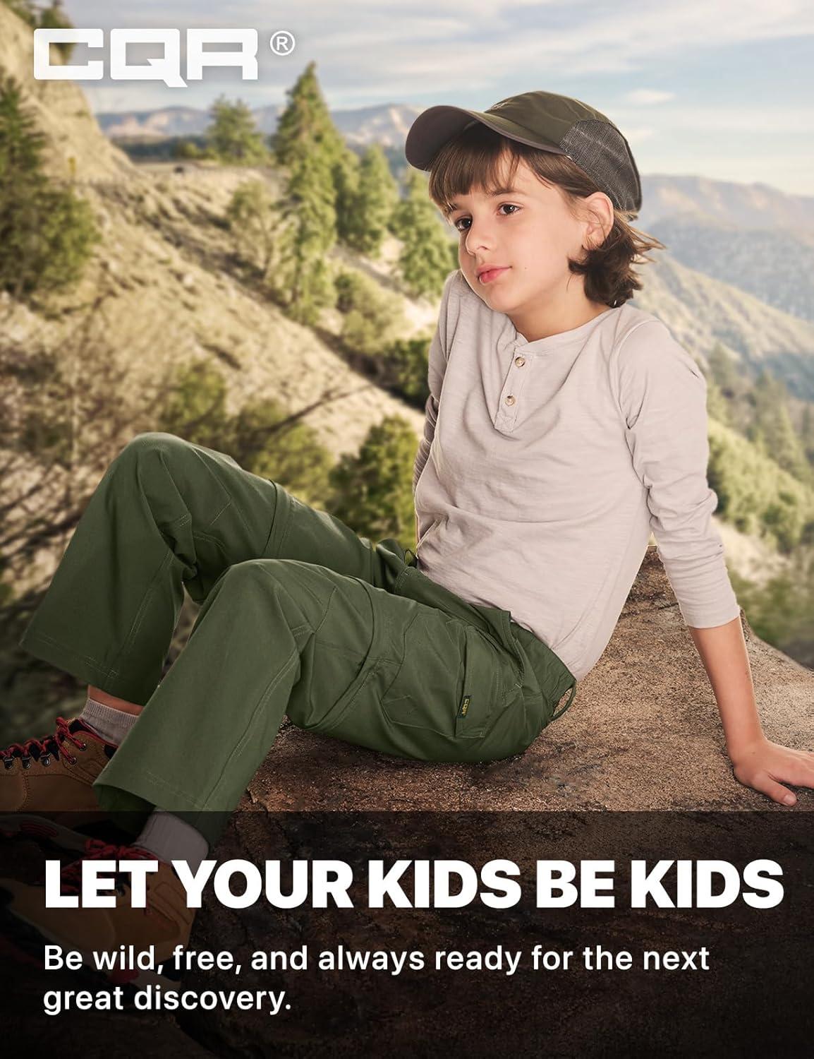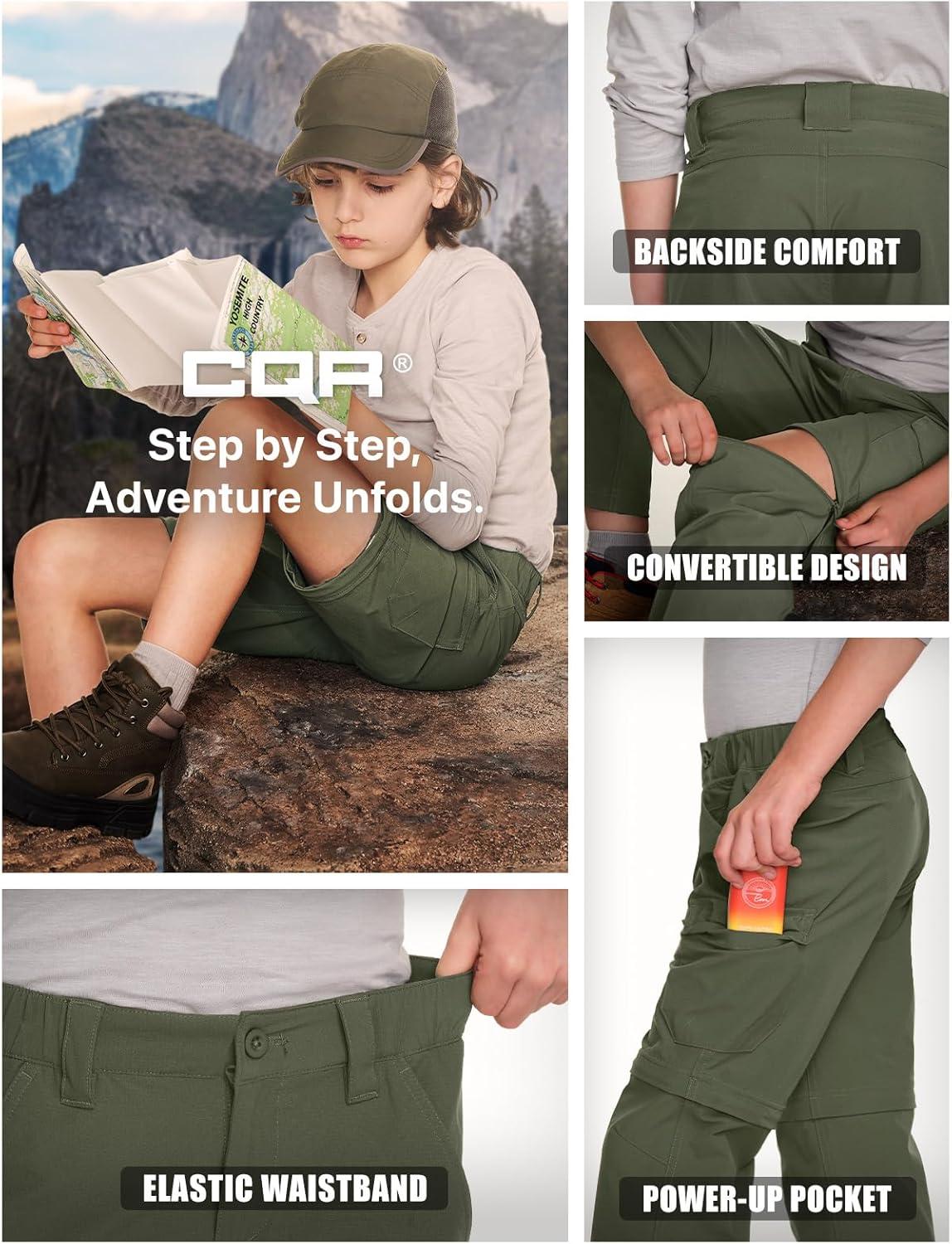 CQR Kids Youth Hiking Cargo Pants, UPF 50+ Quick Dry Convertible Zip Off Pants, Outdoor Camping Pants(Shenah Trek Army Green)