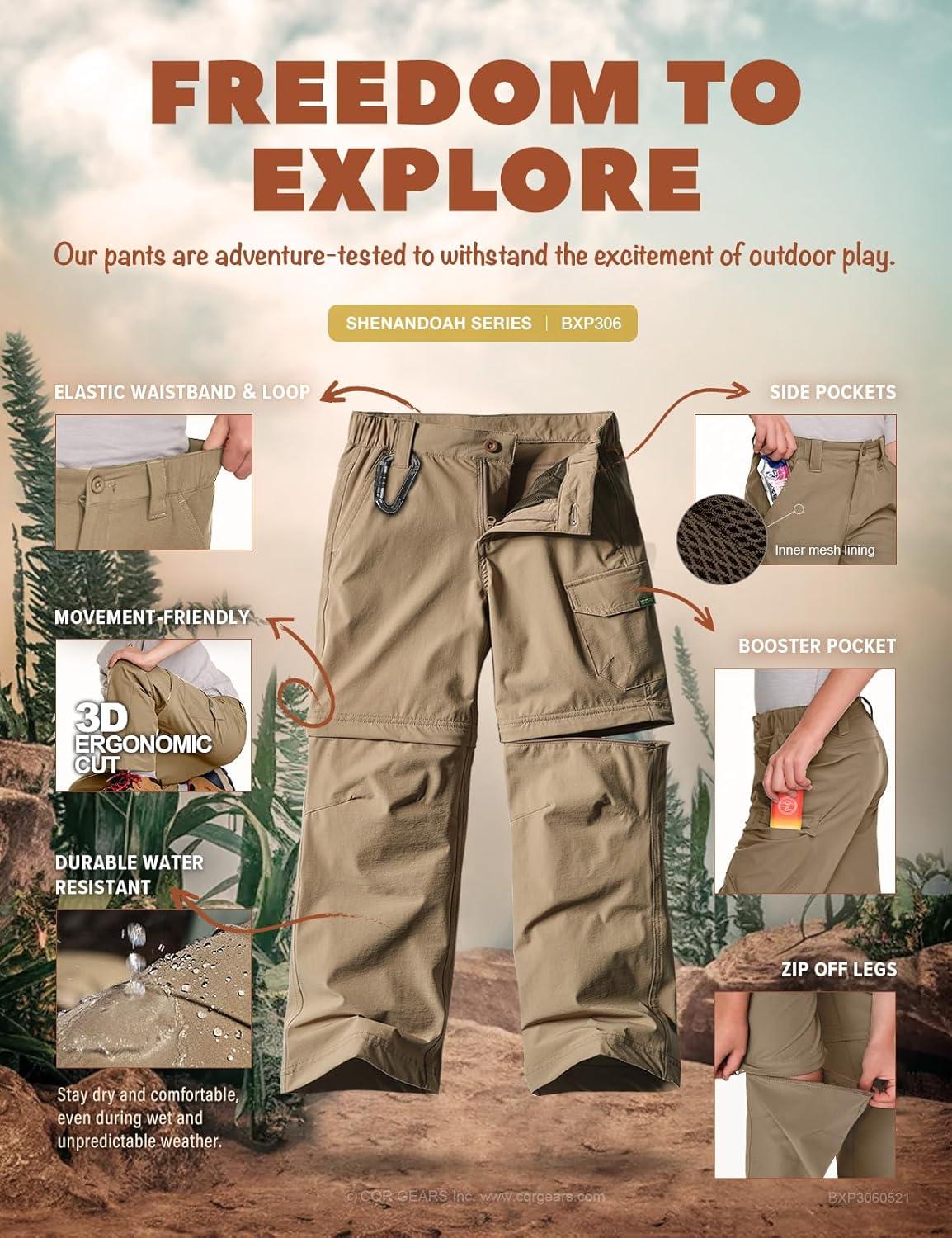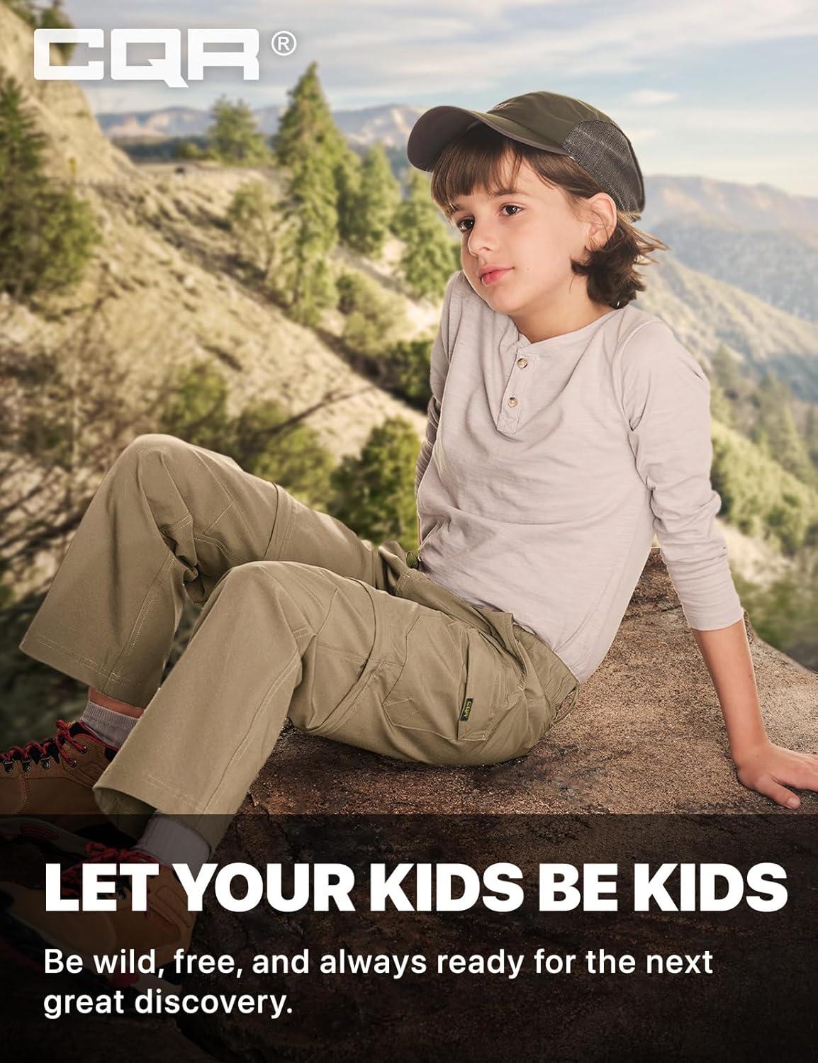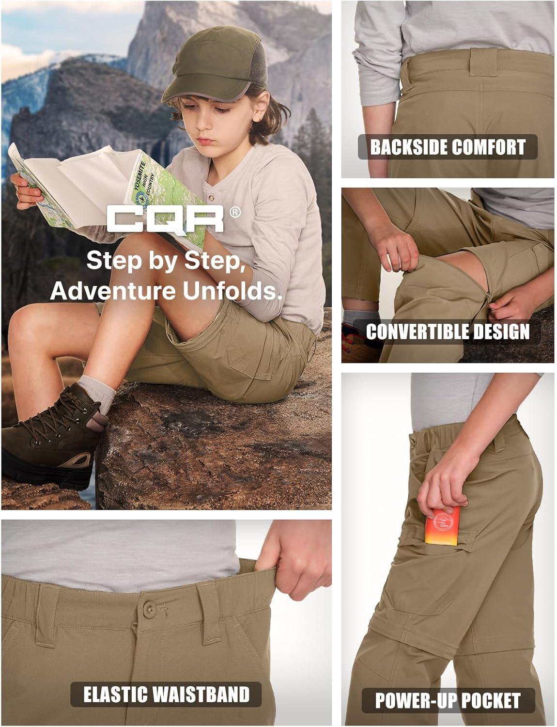 CQR Kids Youth Hiking Cargo Pants, UPF 50+ Quick Dry Convertible Zip Off Pants, Outdoor Camping Pants(Shenah Trek Cougar)