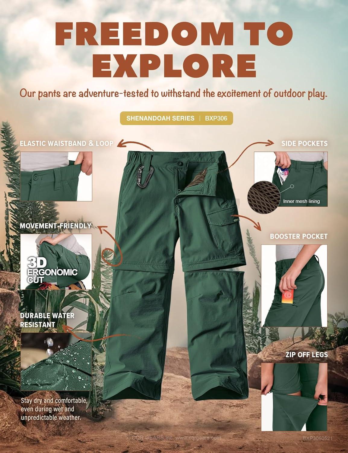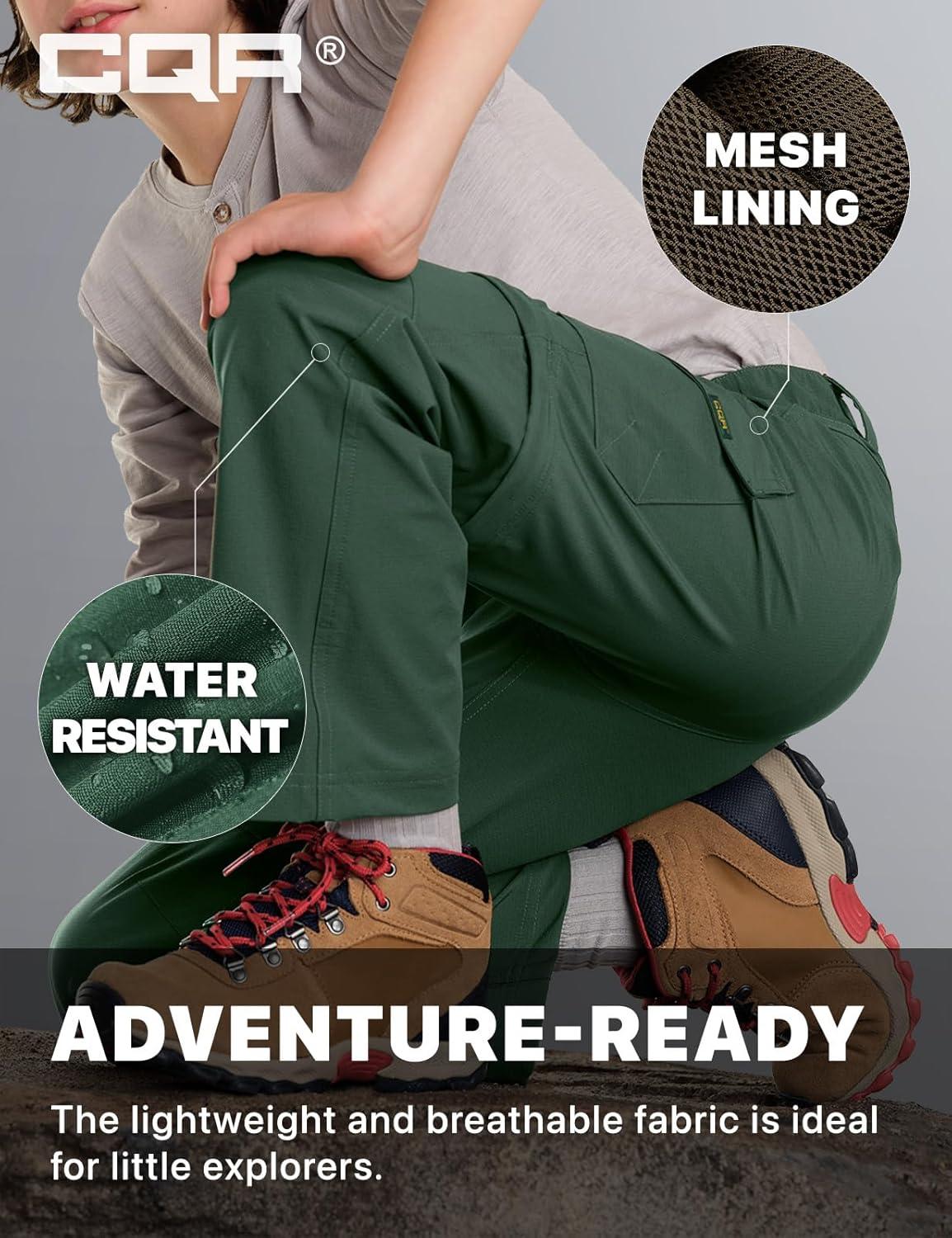 CQR Kids Youth Hiking Cargo Pants, UPF 50+ Quick Dry Convertible Zip Off Pants, Outdoor Camping Pants(Shenah Trek Jade Green)