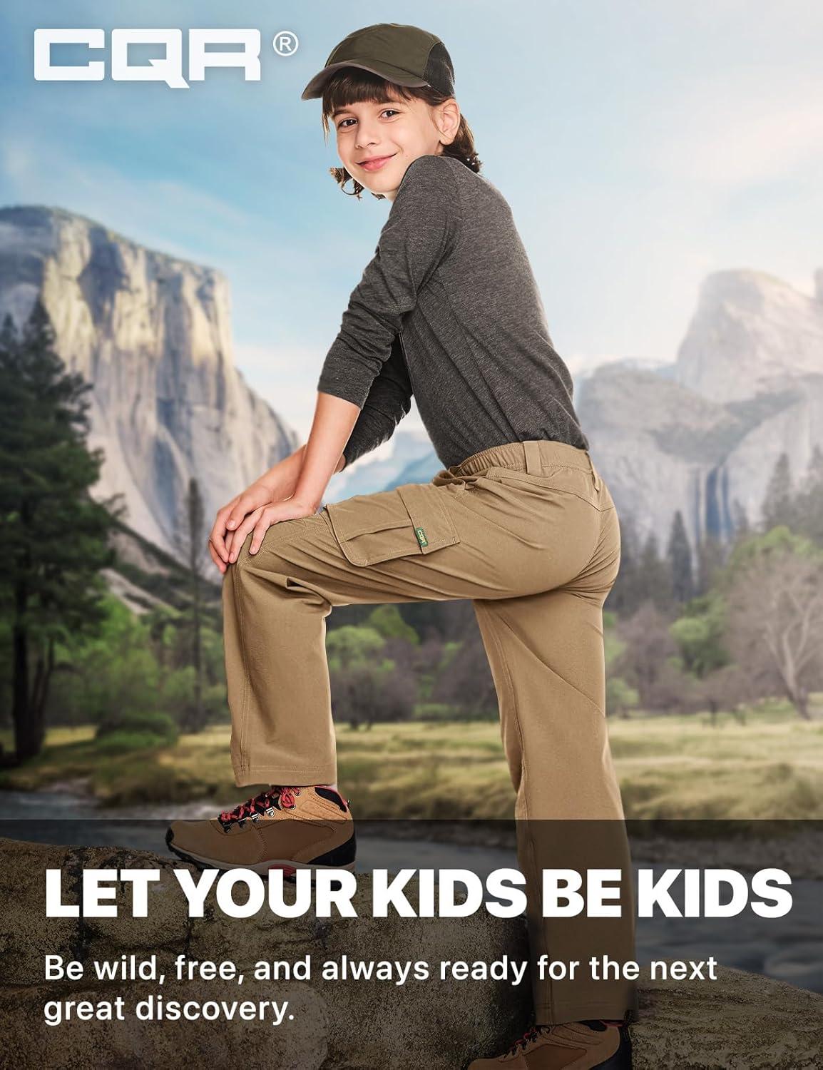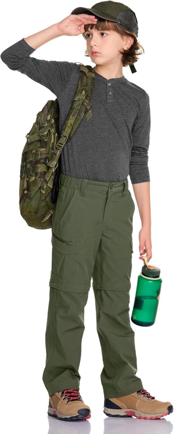 CQR Kids Youth Hiking Cargo Pants, UPF 50+ Quick Dry Convertible Zip Off Pants, Outdoor Camping Pants(Shenah Venture Army Green)