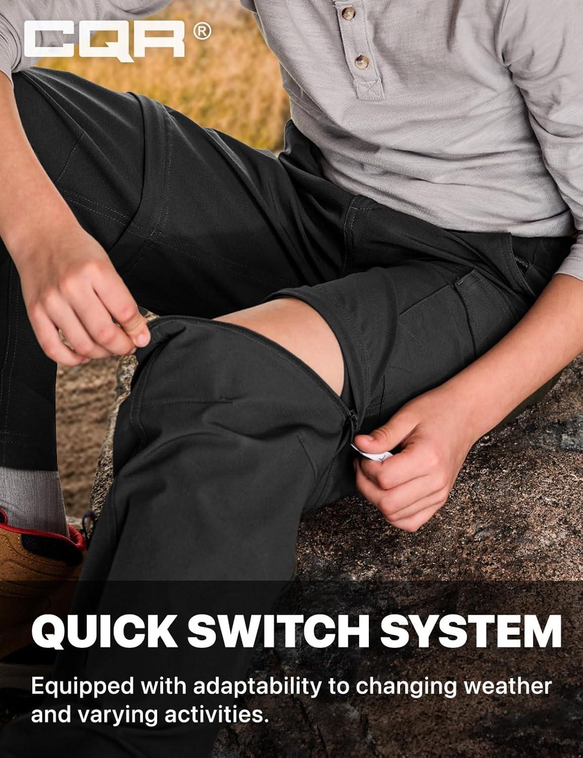 CQR Kids Youth Hiking Cargo Pants, UPF 50+ Quick Dry Convertible Zip Off Pants, Outdoor Camping Pants(Shenah Venture Black)