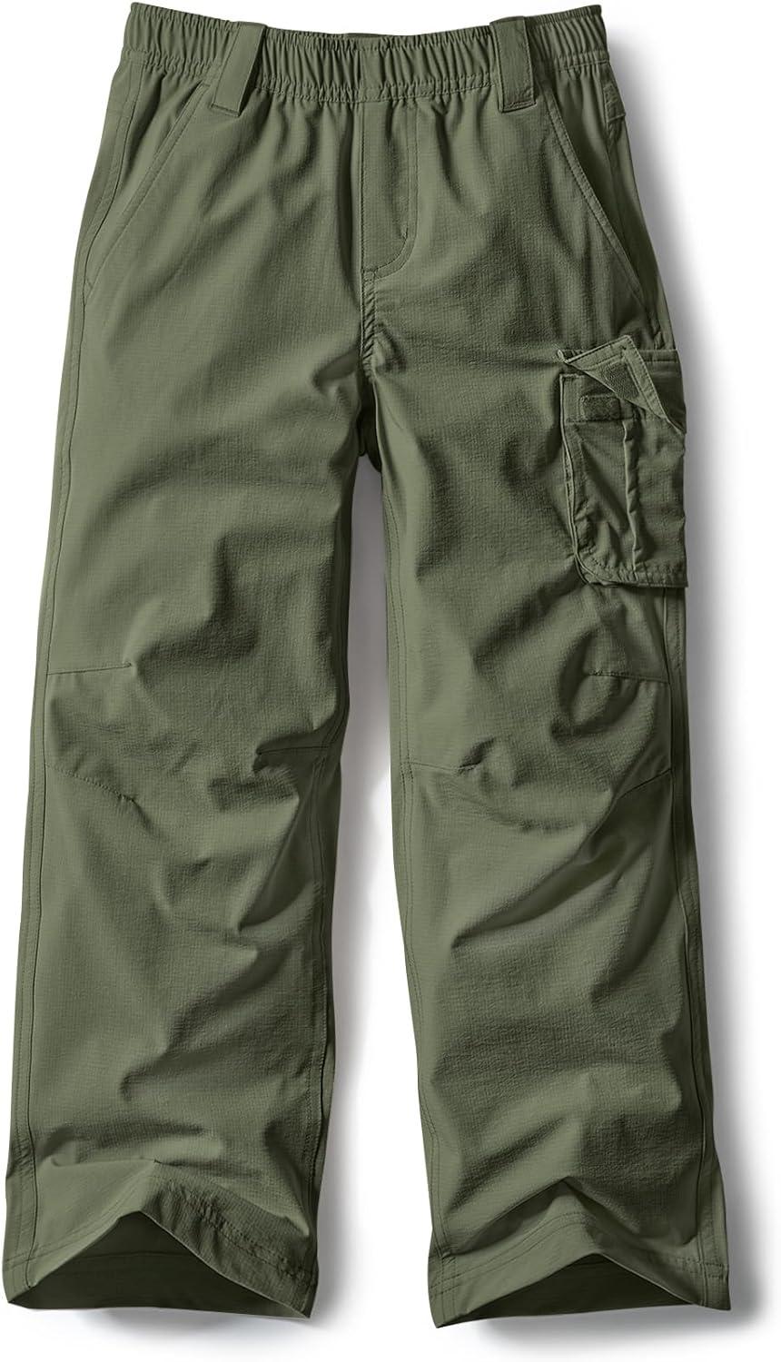 CQR Kids Youth Hiking Cargo Pants, UPF50+ Quick Dry Outdoor Camping Pants(Shenah Trail Army Green)
