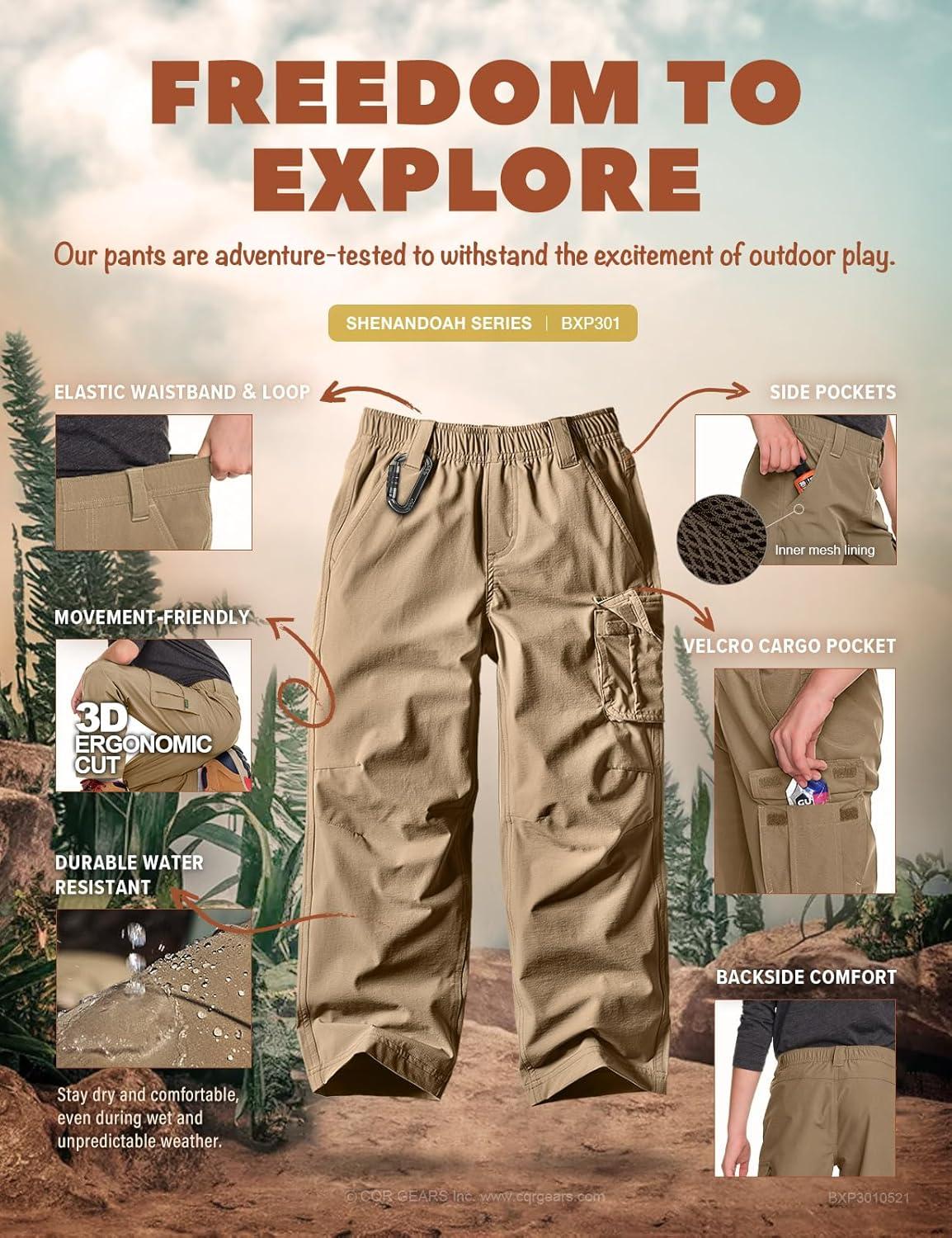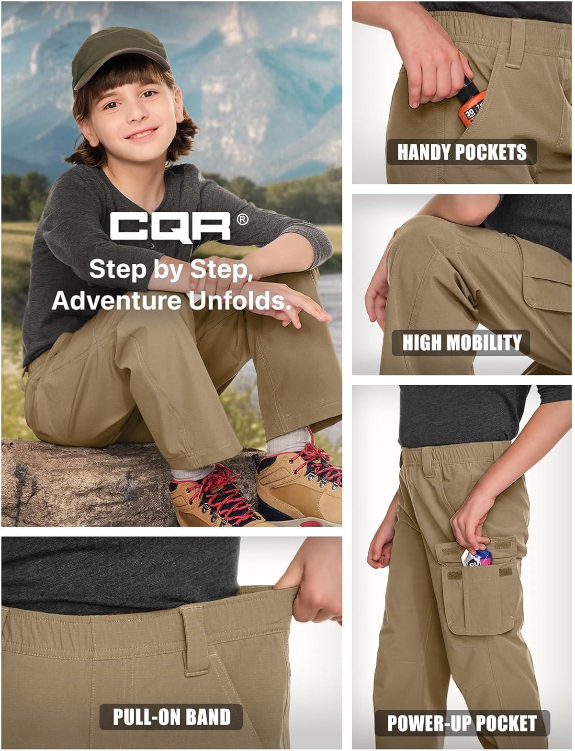 CQR Kids Youth Hiking Cargo Pants, UPF50+ Quick Dry Outdoor Camping Pants(Shenah Trail Cougar)