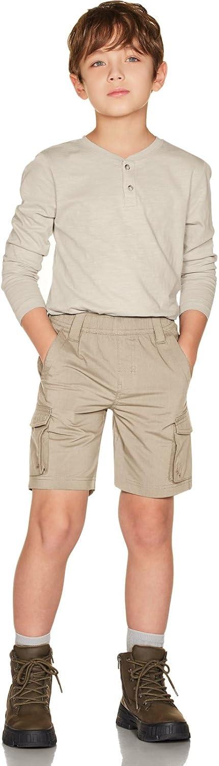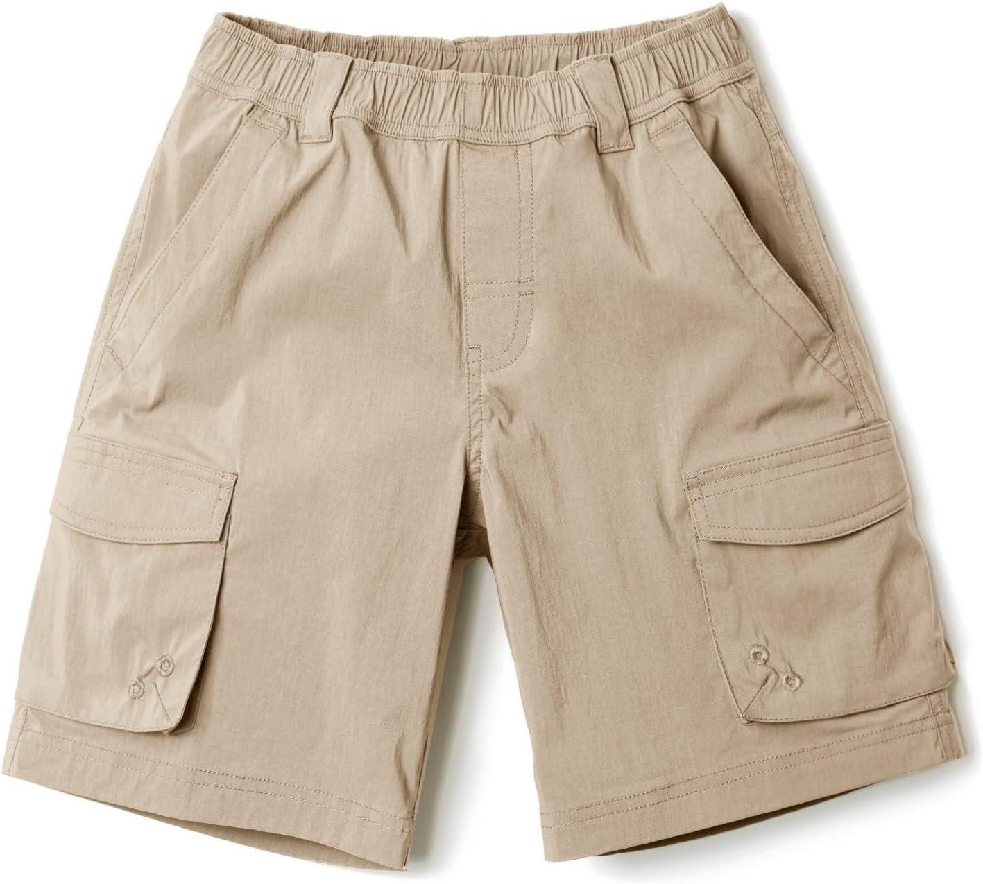 CQR Kids Youth Pull on Cargo Shorts, Outdoor Camping Hiking Shorts, Lightweight Elastic Waist Athletic Short with Pockets(Driflex Khaki)