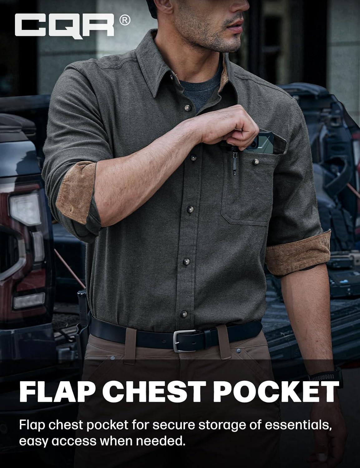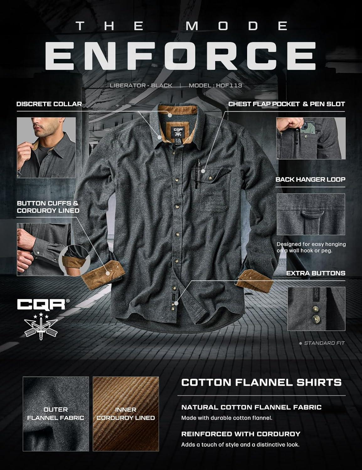 CQR Men’s 100% All Cotton Button Down Flannel Shirts, Long Sleeve Brushed Warm Soft Casual Outdoor Plaid Shirt(Corduroy Grey)