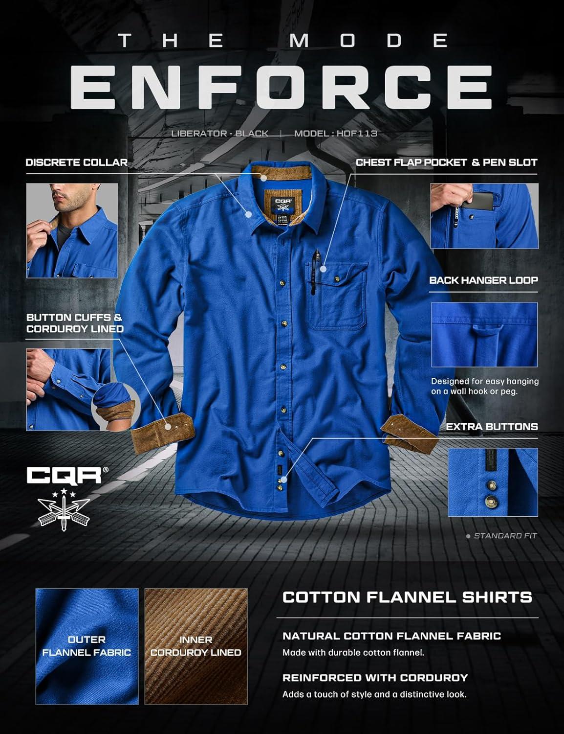 CQR Men’s 100% All Cotton Button Down Flannel Shirts, Long Sleeve Brushed Warm Soft Casual Outdoor Plaid Shirt(Corduroy Lapis Blue)