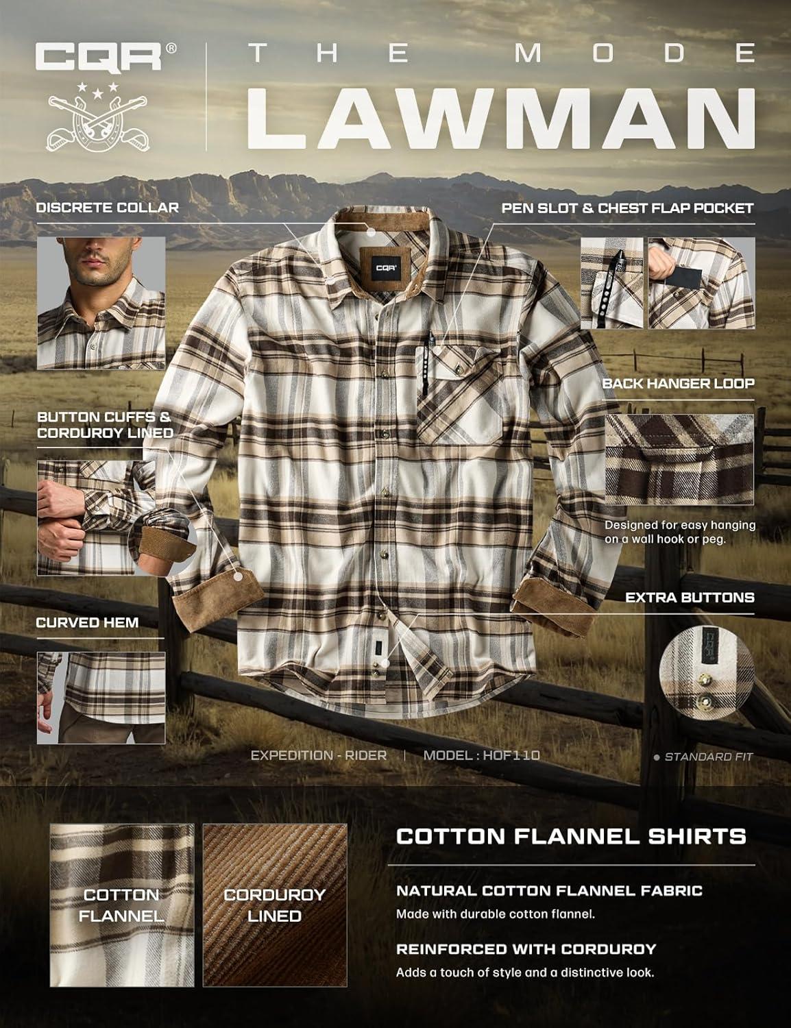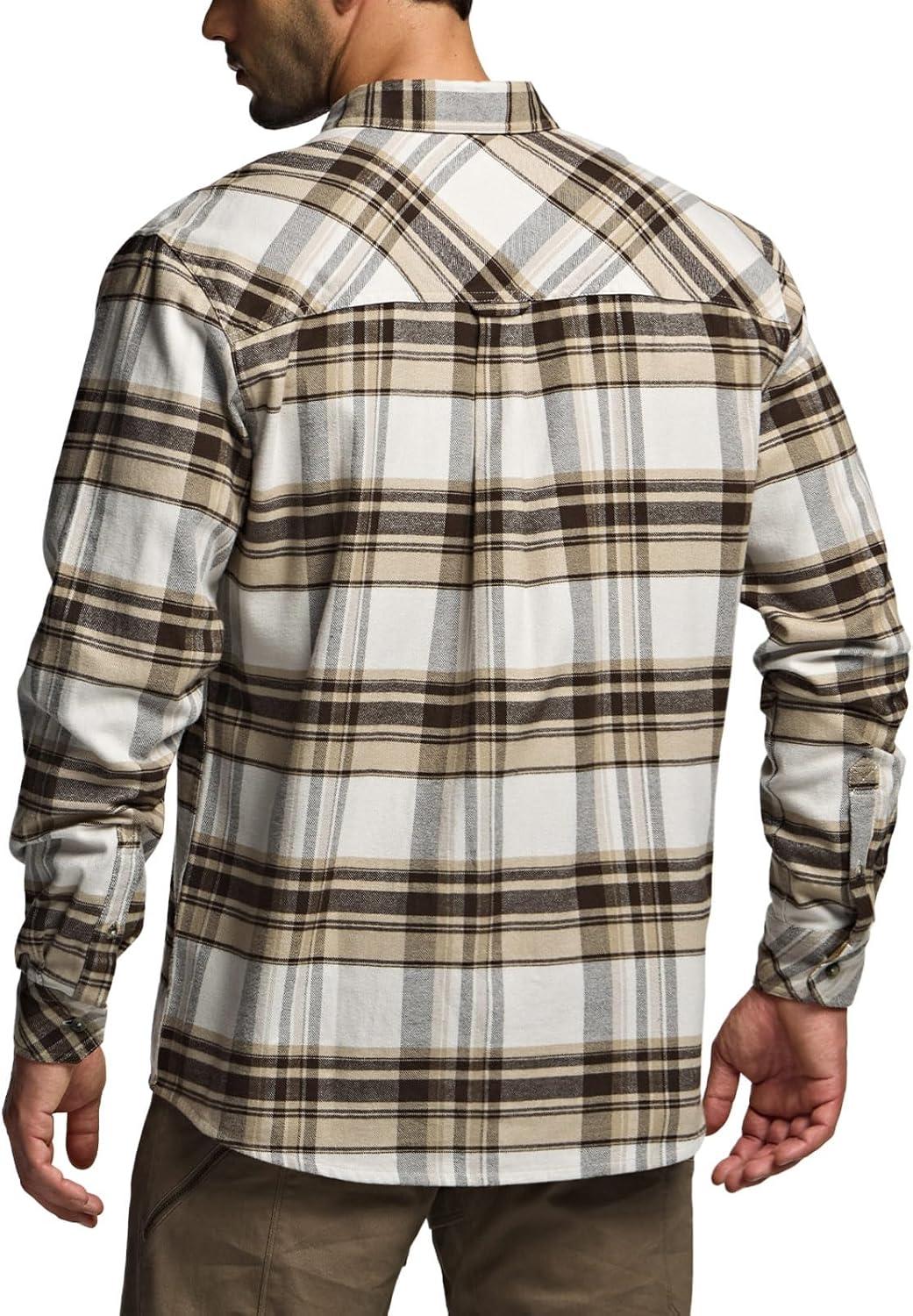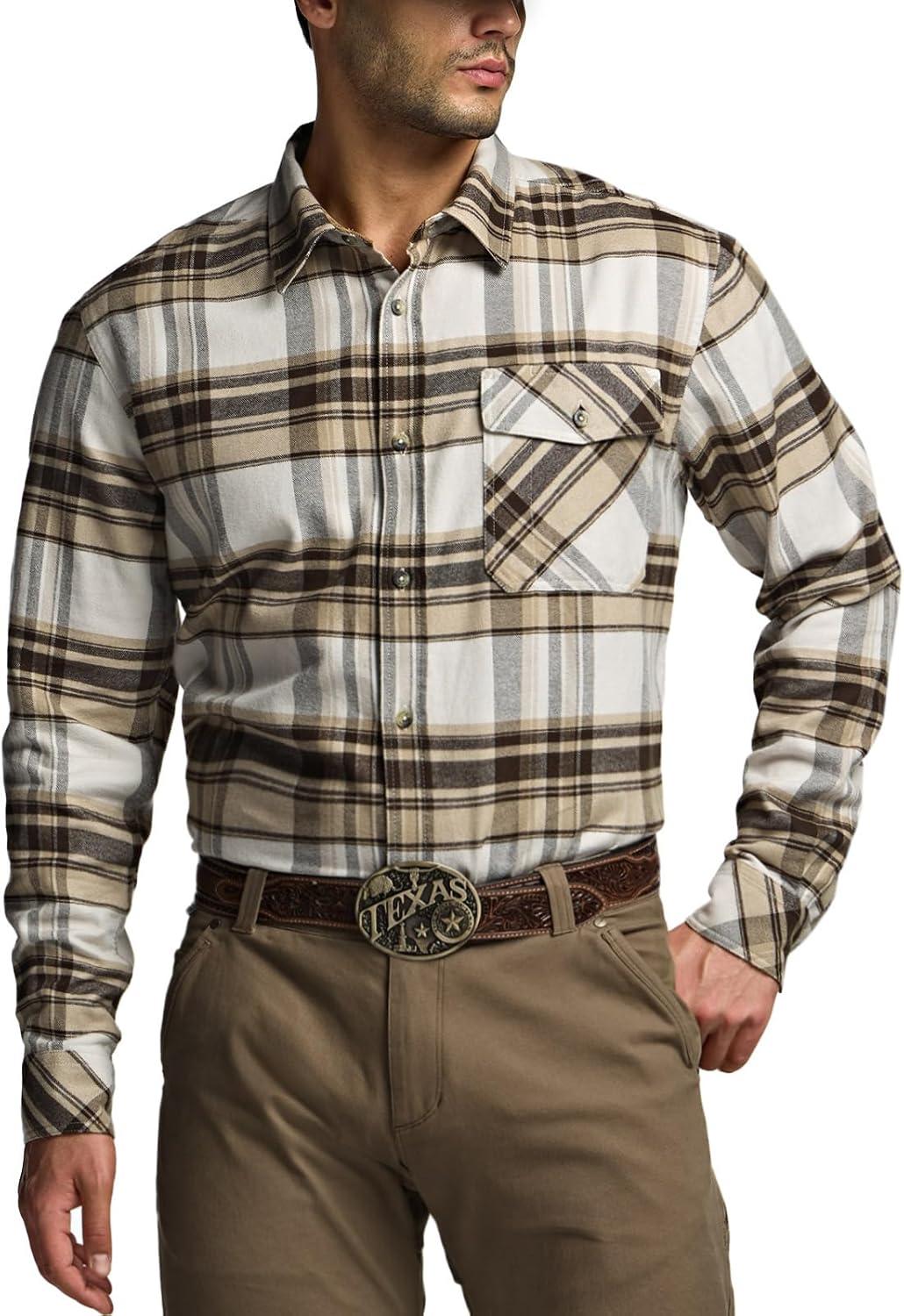 CQR Men’s 100% All Cotton Button Down Flannel Shirts, Long Sleeve Brushed Warm Soft Casual Outdoor Plaid Shirt(Plaid Affogato)