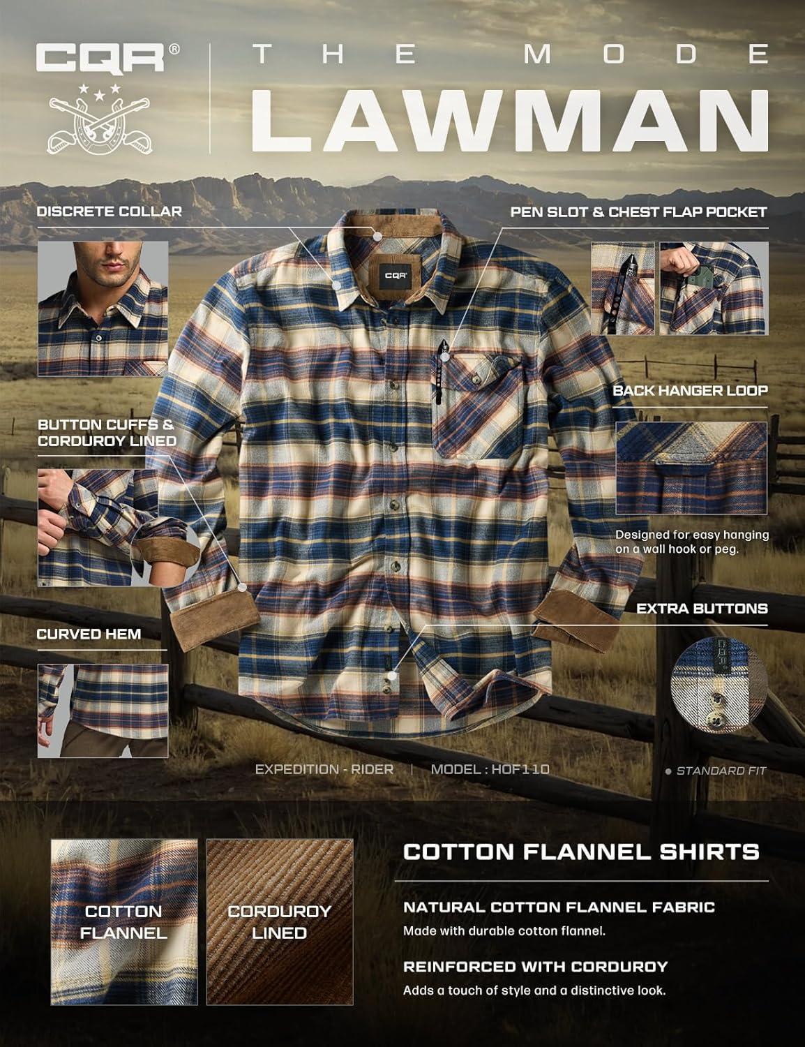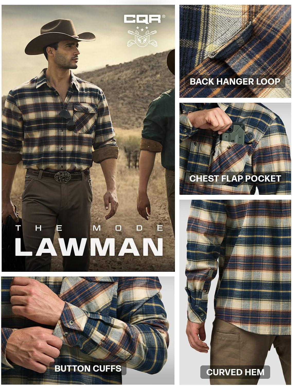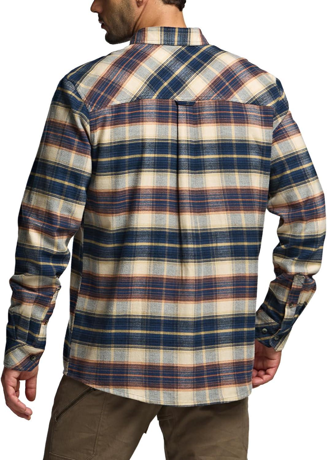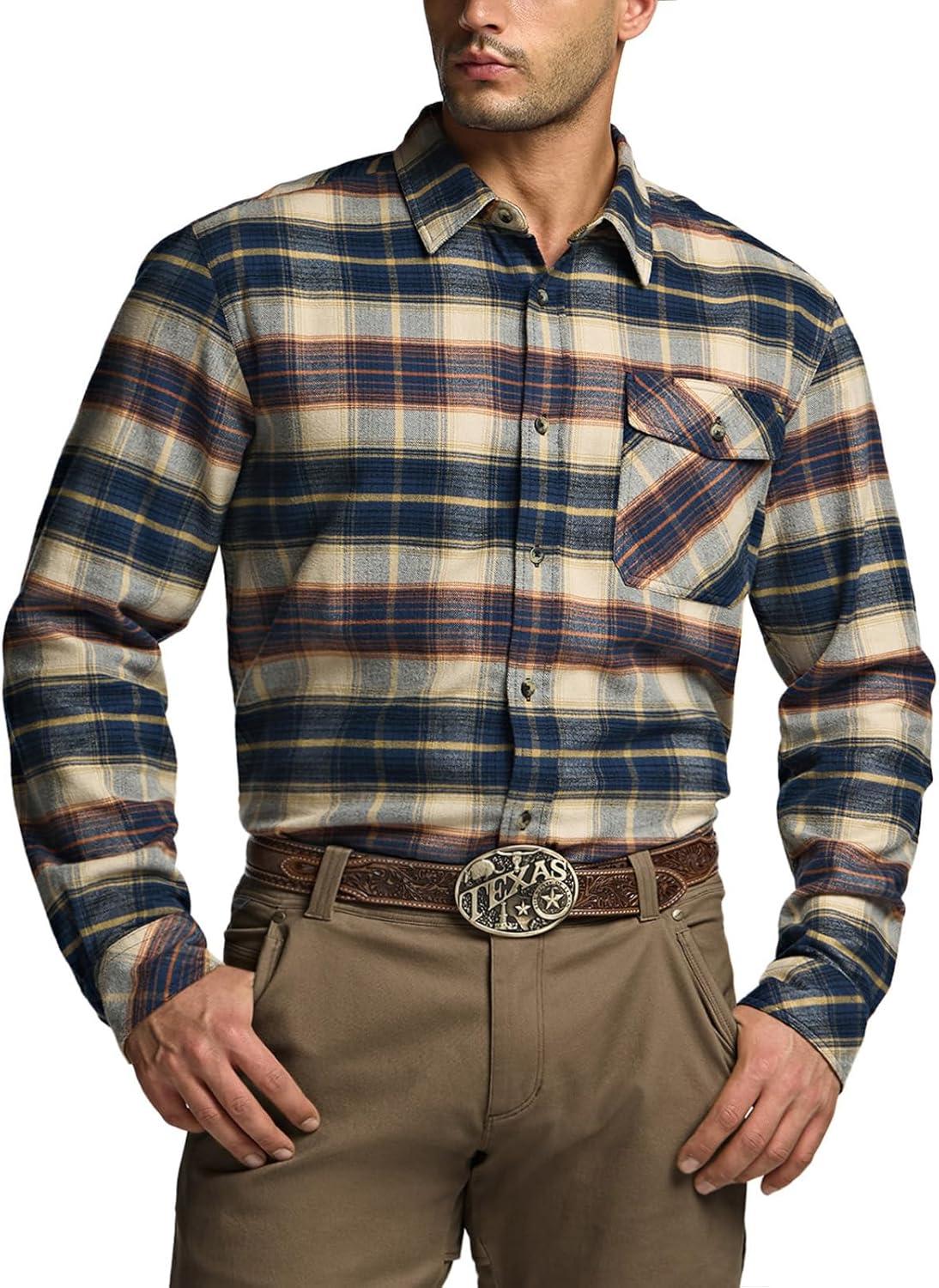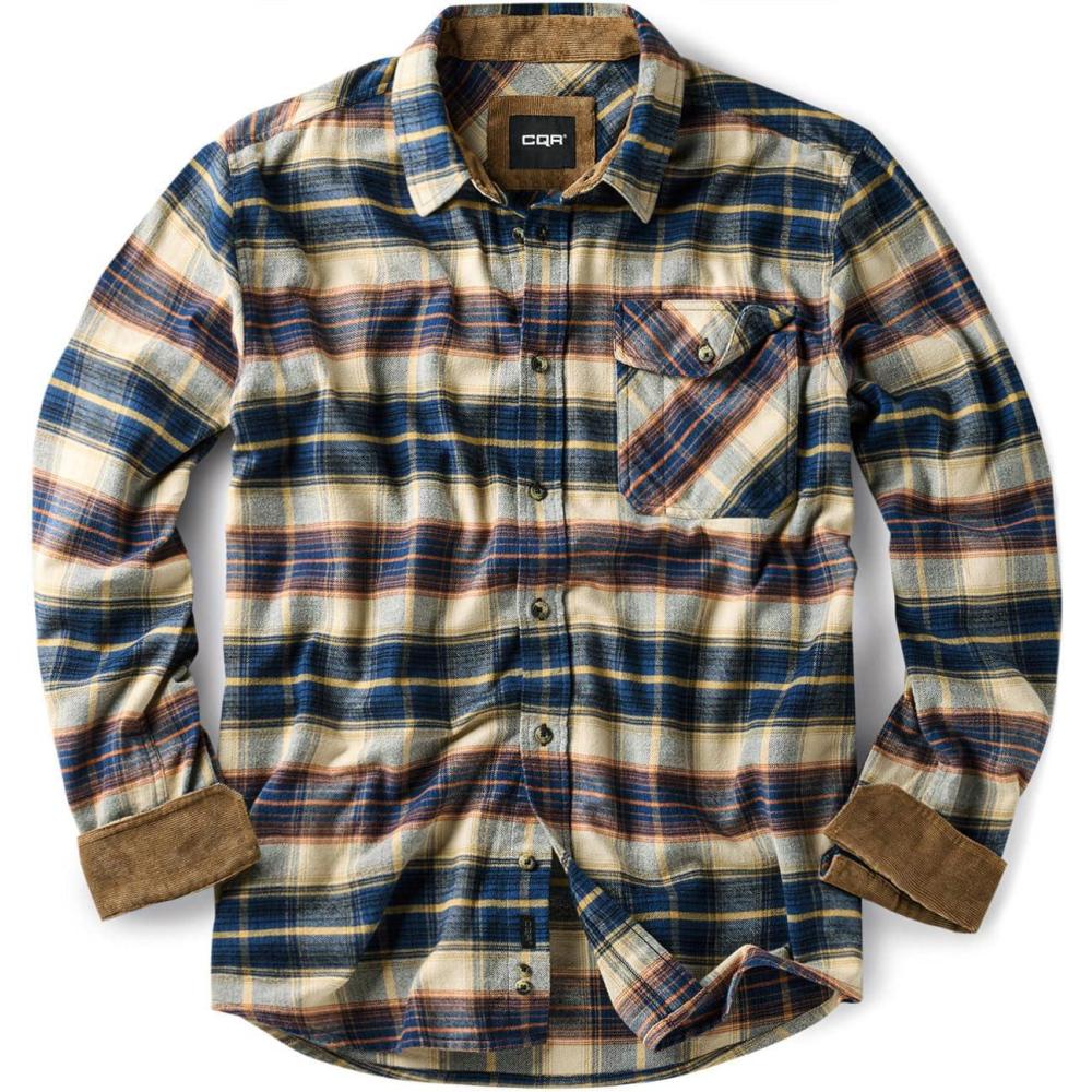 CQR Men’s 100% All Cotton Button Down Flannel Shirts, Long Sleeve Brushed Warm Soft Casual Outdoor Plaid Shirt(Plaid Blue Cheese)