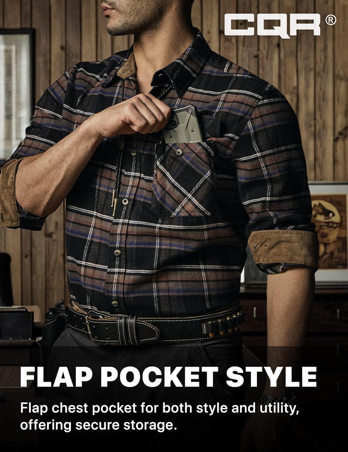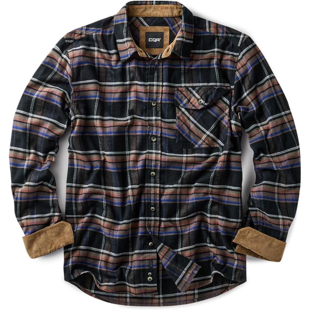 CQR Men’s 100% All Cotton Button Down Flannel Shirts, Long Sleeve Brushed Warm Soft Casual Outdoor Plaid Shirt(Plaid Coal Miner)