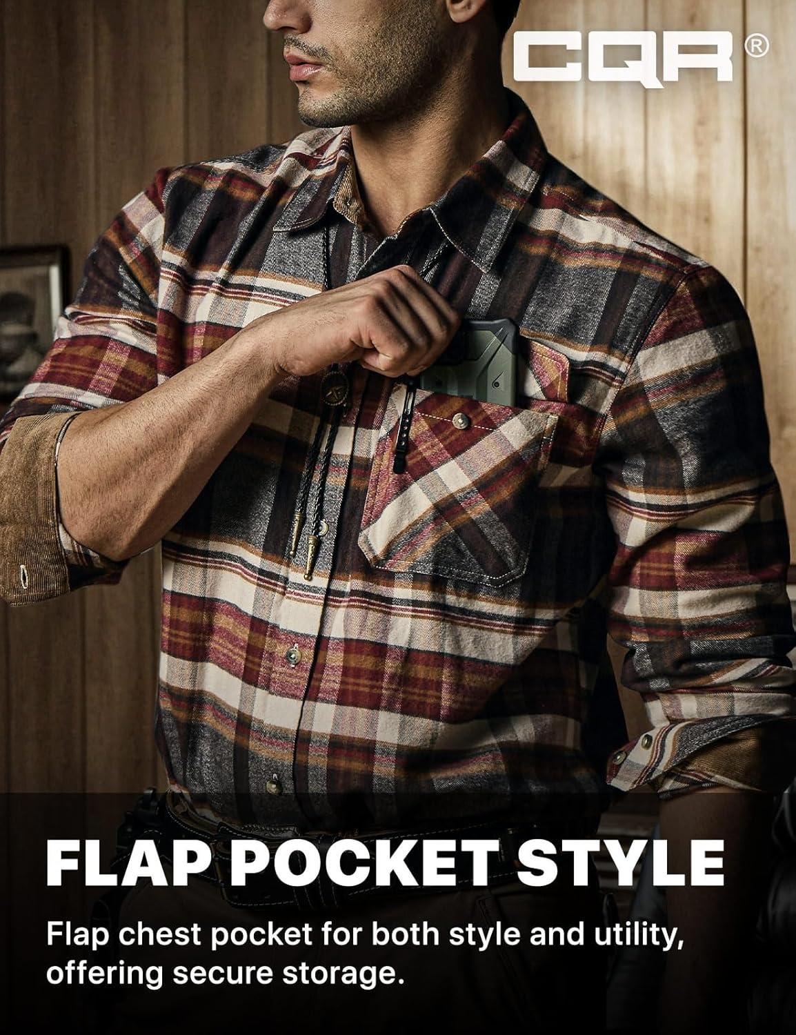 CQR Men’s 100% All Cotton Button Down Flannel Shirts, Long Sleeve Brushed Warm Soft Casual Outdoor Plaid Shirt(Plaid Folk Tale)