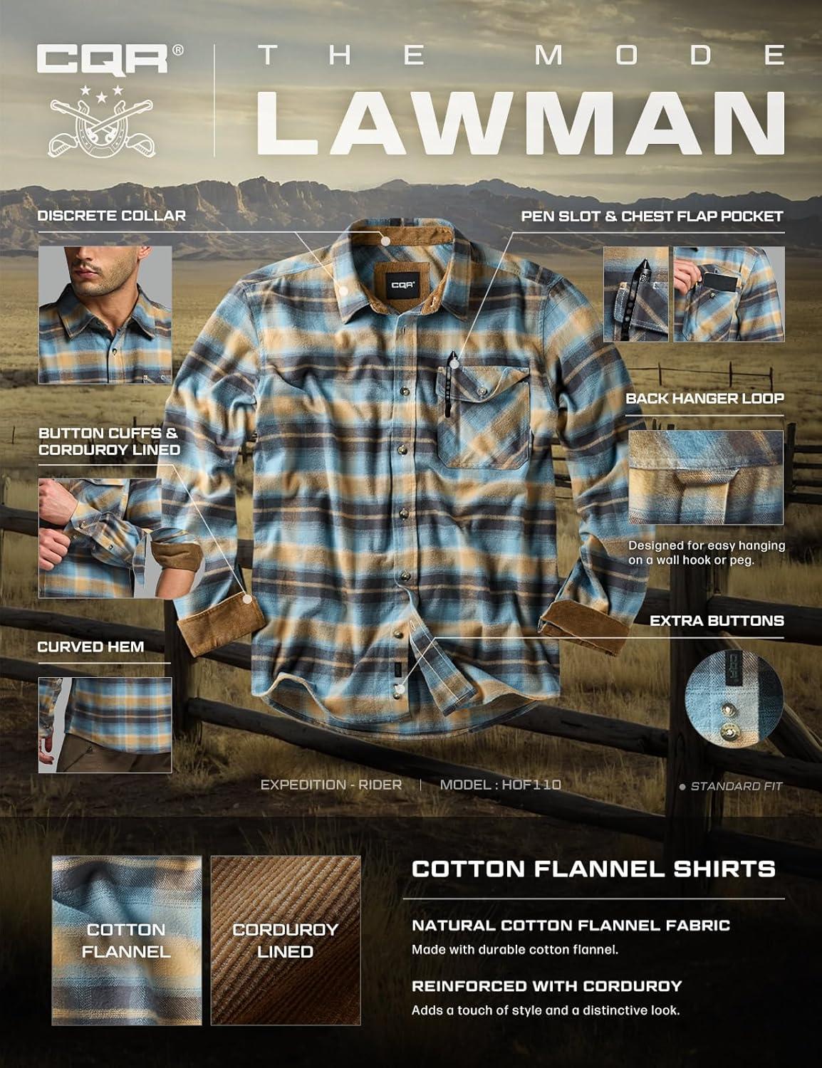 CQR Men’s 100% All Cotton Button Down Flannel Shirts, Long Sleeve Brushed Warm Soft Casual Outdoor Plaid Shirt(Plaid Seashore)