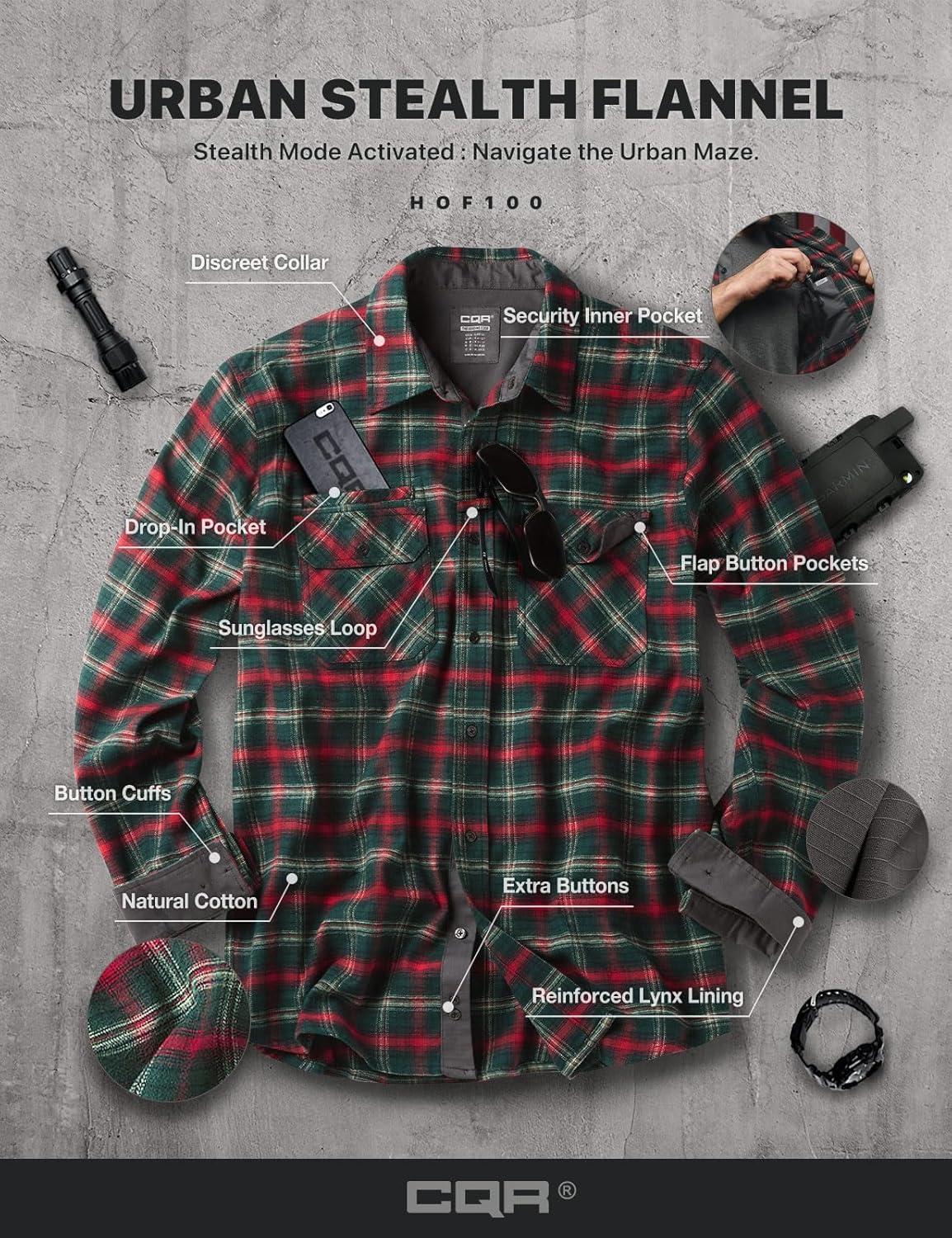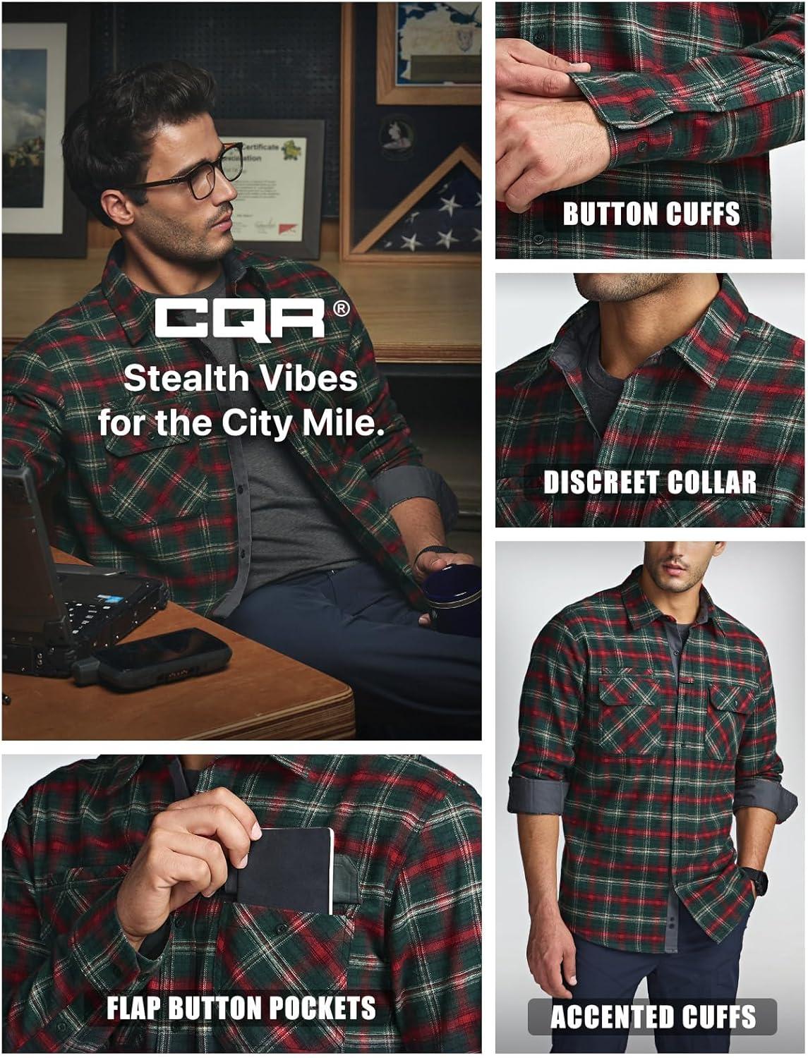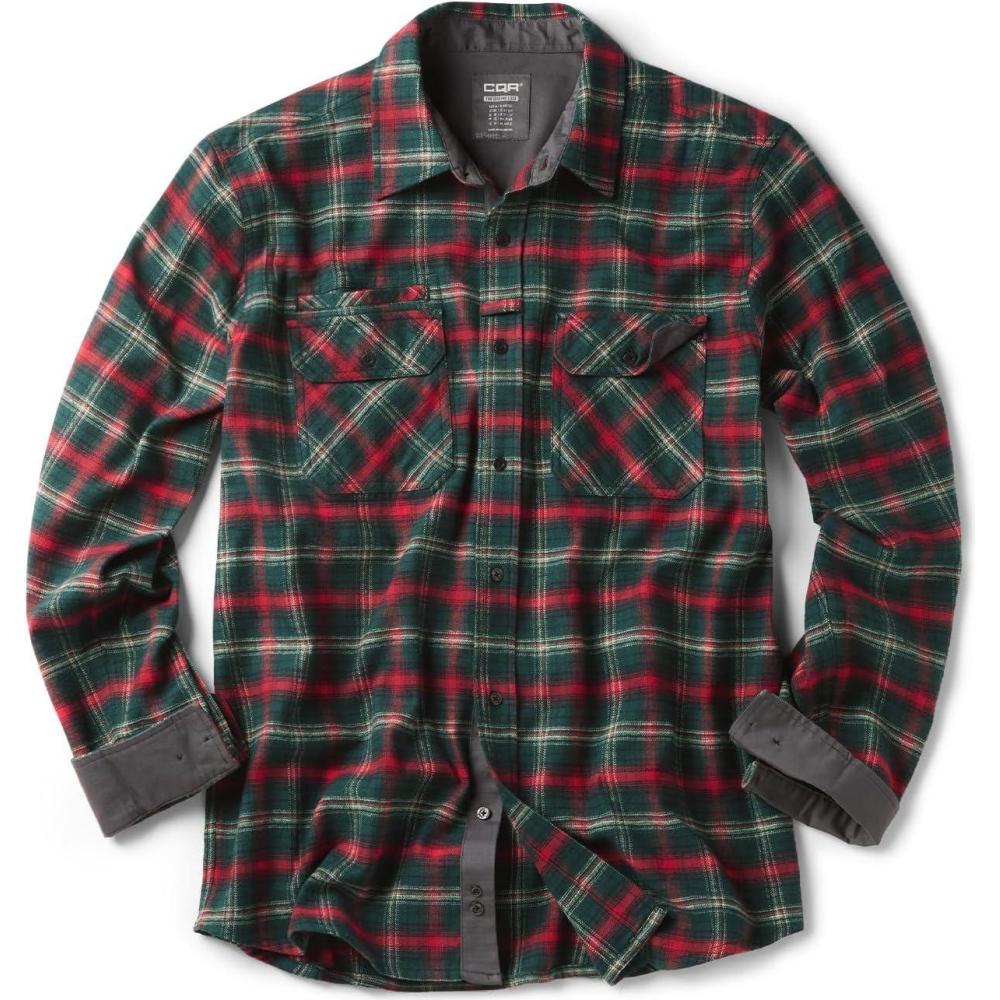 CQR Men’s 100% All Cotton Button Down Flannel Shirts, Long Sleeve Brushed Warm Soft Casual Outdoor Plaid Shirt(Stealth Holiday Mood)