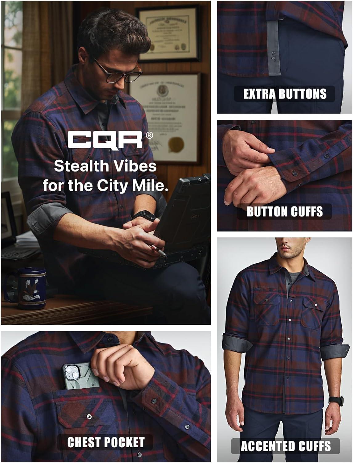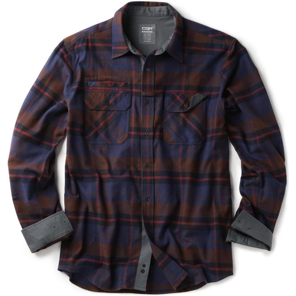 CQR Men’s 100% All Cotton Button Down Flannel Shirts, Long Sleeve Brushed Warm Soft Casual Outdoor Plaid Shirt(Stealth Woods Night)