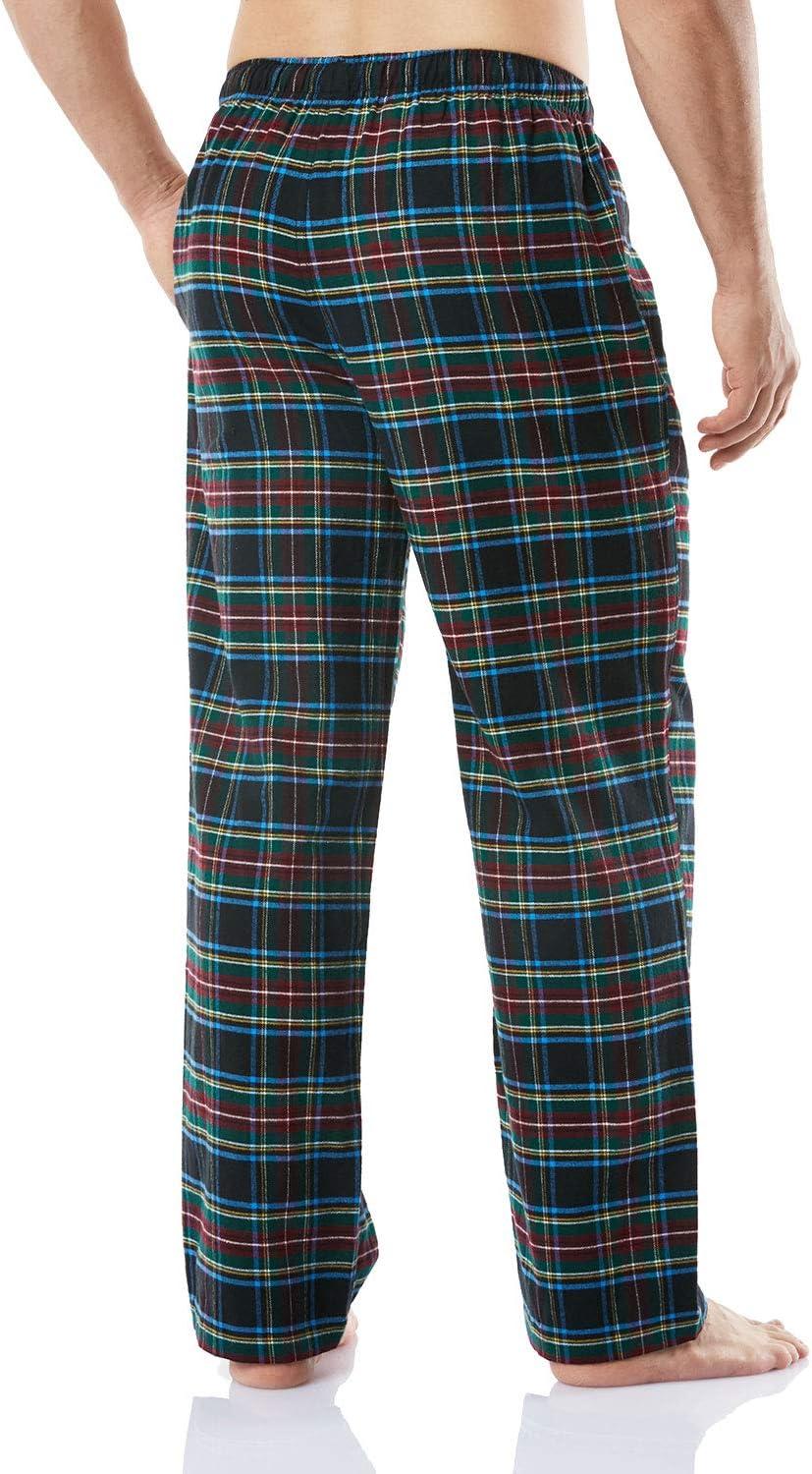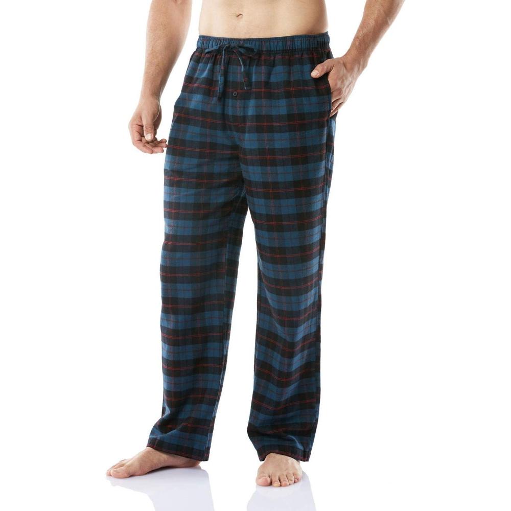 CQR Men’s 100% Cotton Plaid Flannel Pajama Pants, Brushed Soft Lounge & Sleep PJ Bottoms with Pockets(Flannel Pajama Navy & Blue)