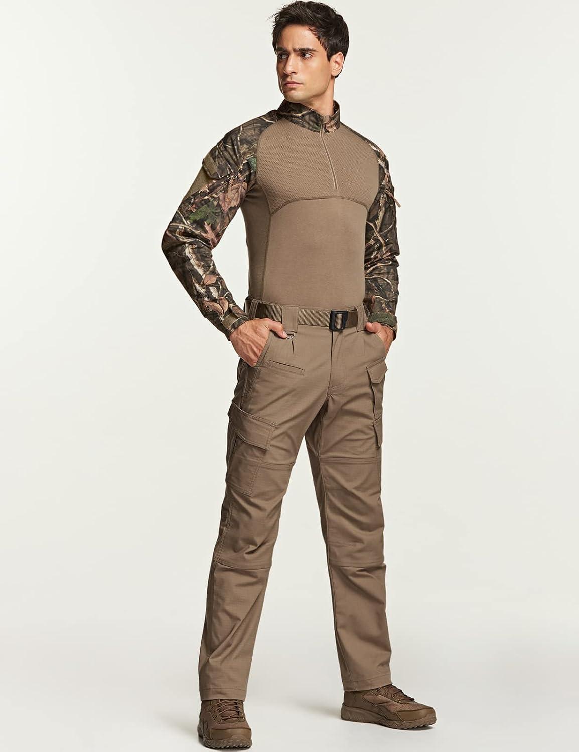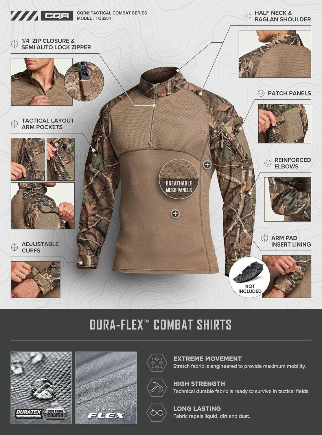 CQR Men’s Combat Shirt Tactical 1/4 Zip Long Sleeve Military BDU Shirts Camo EDC Top with Pockets(Military Print Shirts Hunting Camo)