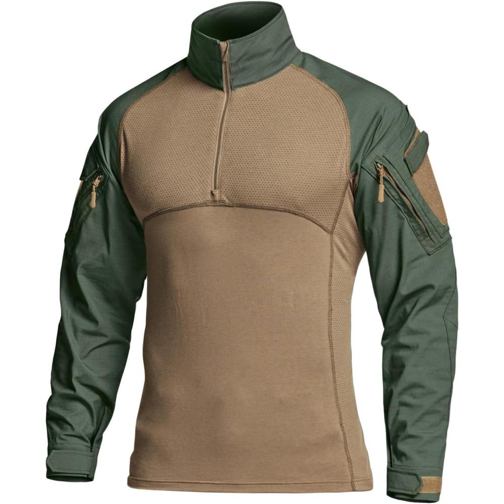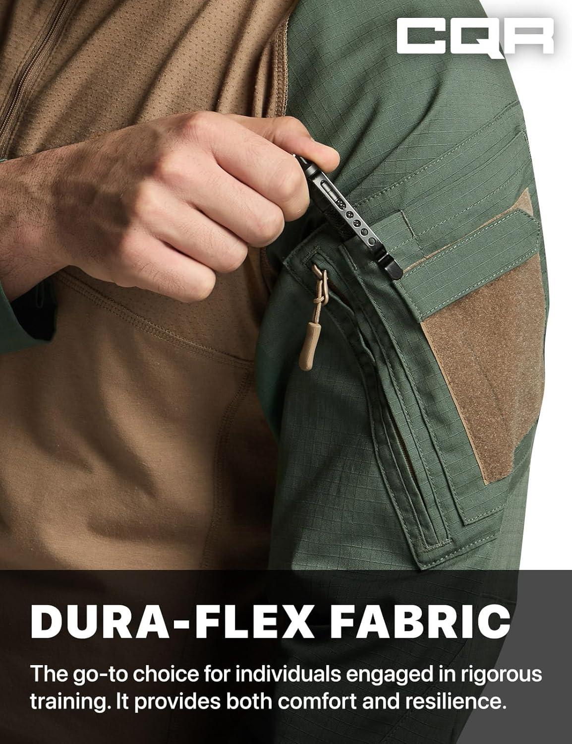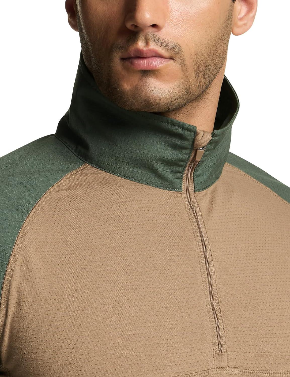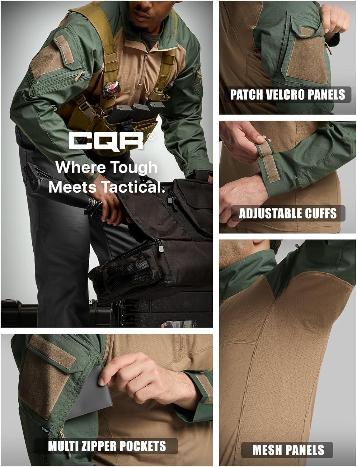 CQR Men’s Combat Shirt Tactical 1/4 Zip Long Sleeve Military BDU Shirts Camo EDC Top with Pockets(Military Shirts Olive Green)