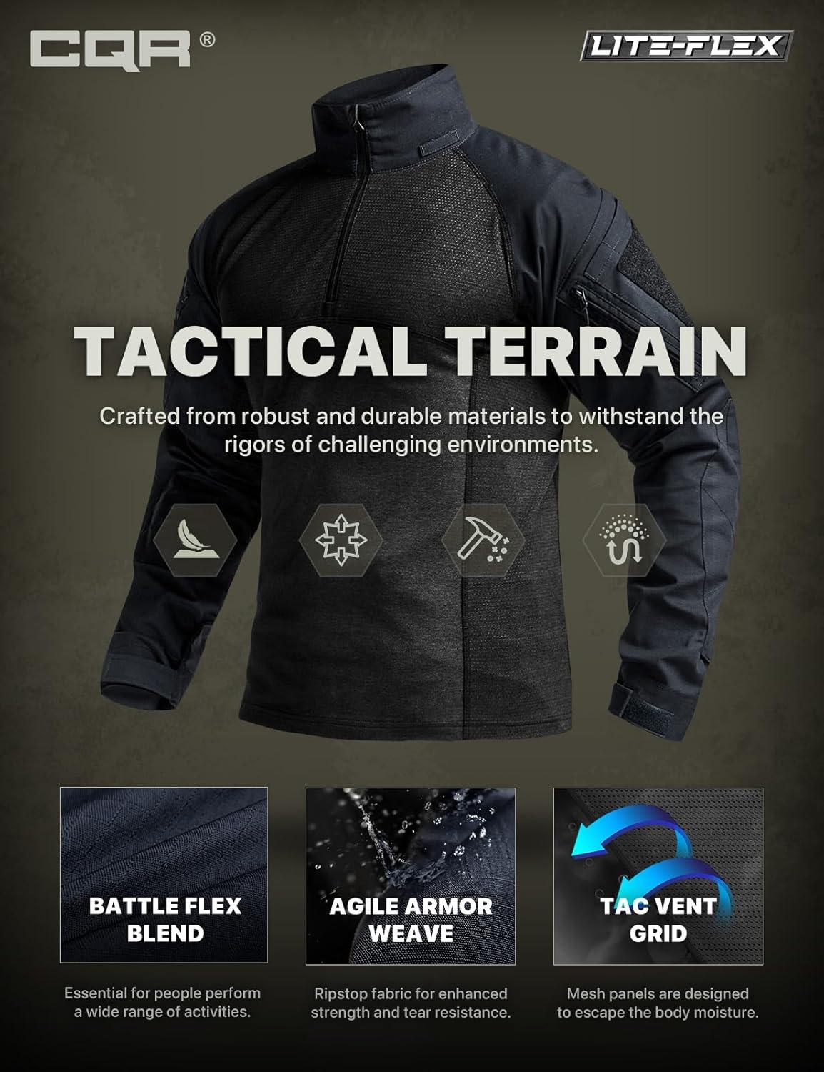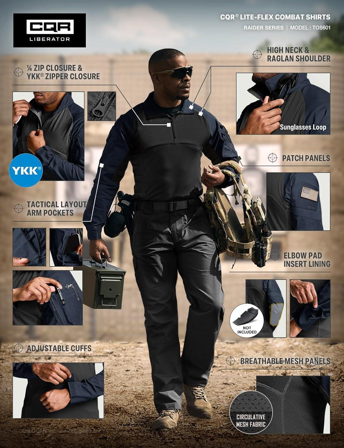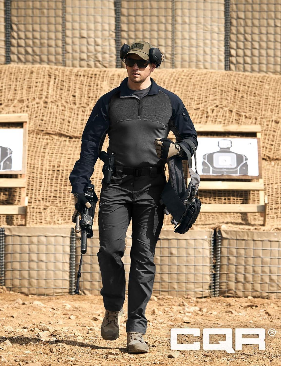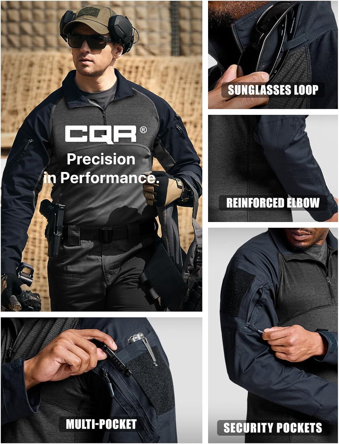 CQR Men’s Combat Shirt Tactical 1/4 Zip Long Sleeve Military BDU Shirts Camo EDC Top with Pockets(Raider Operator Navy)