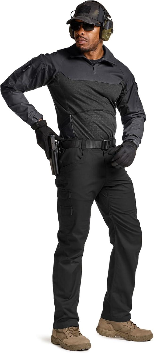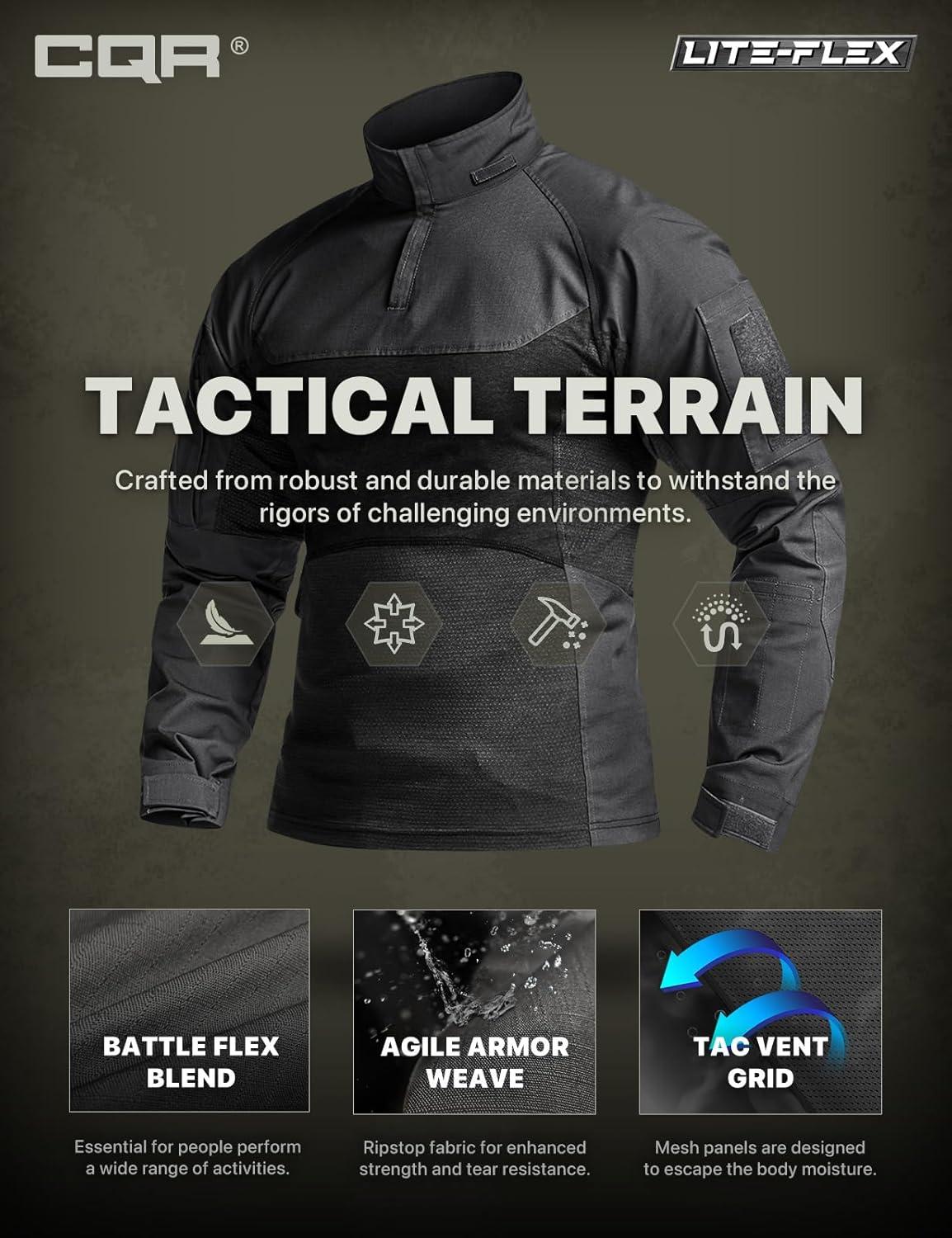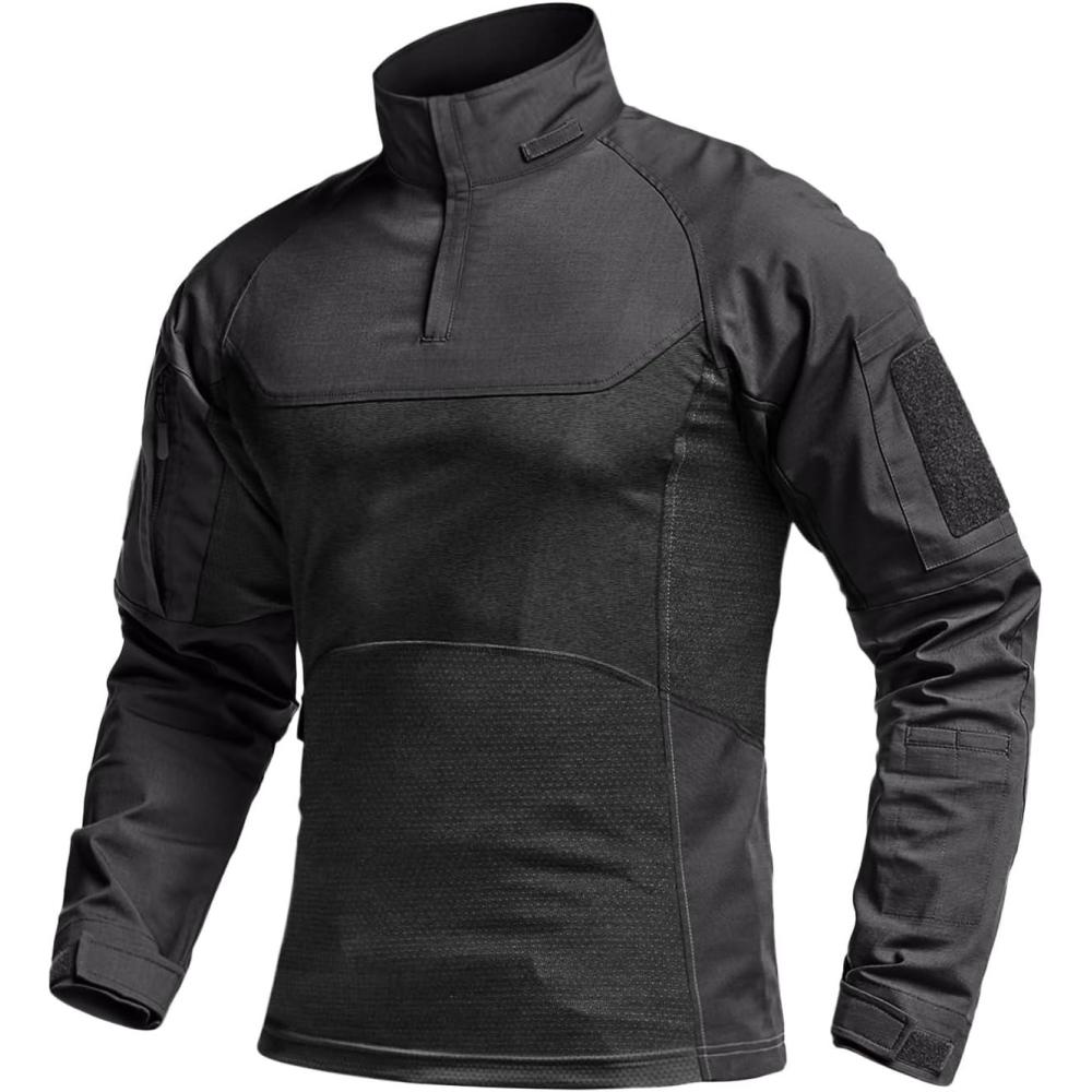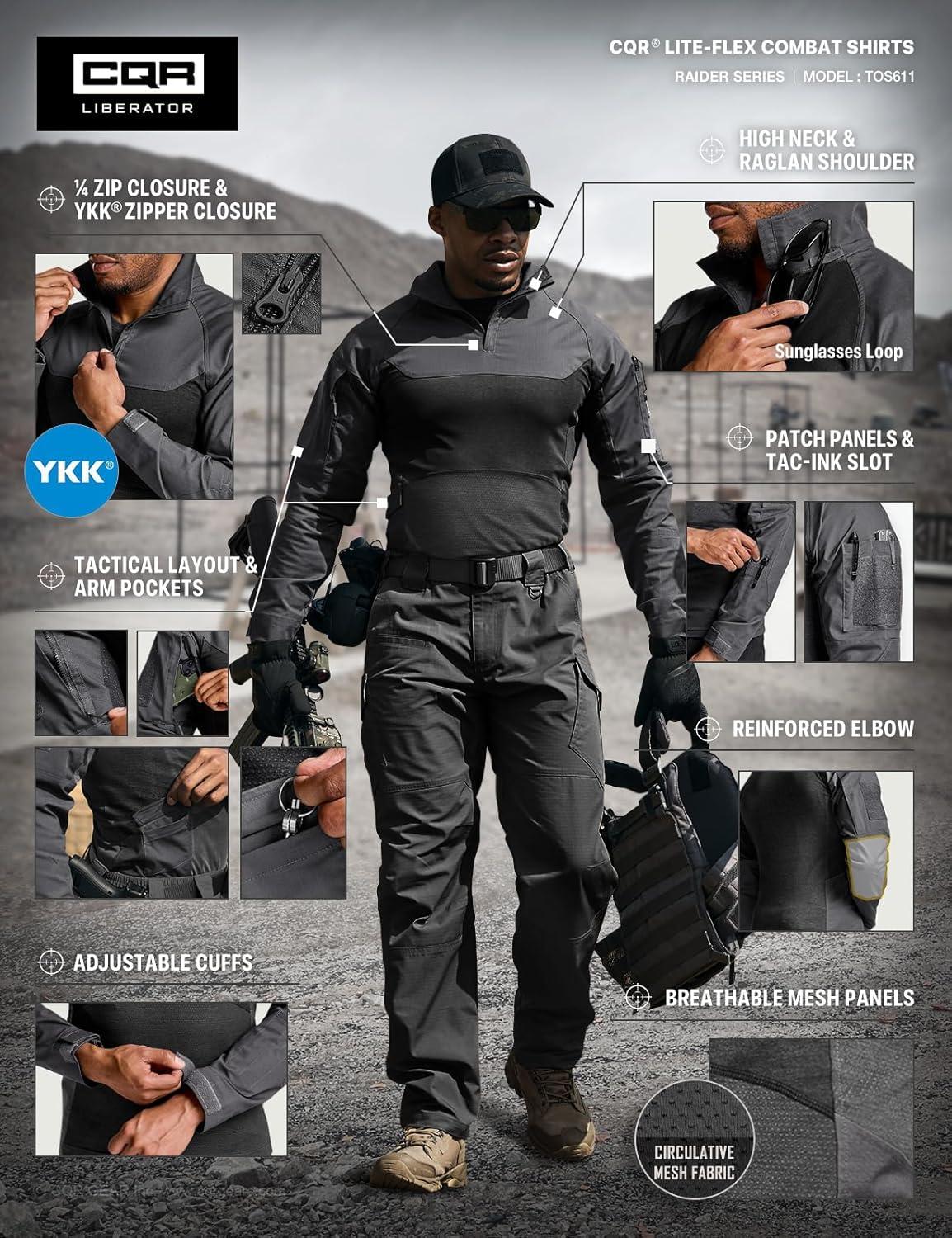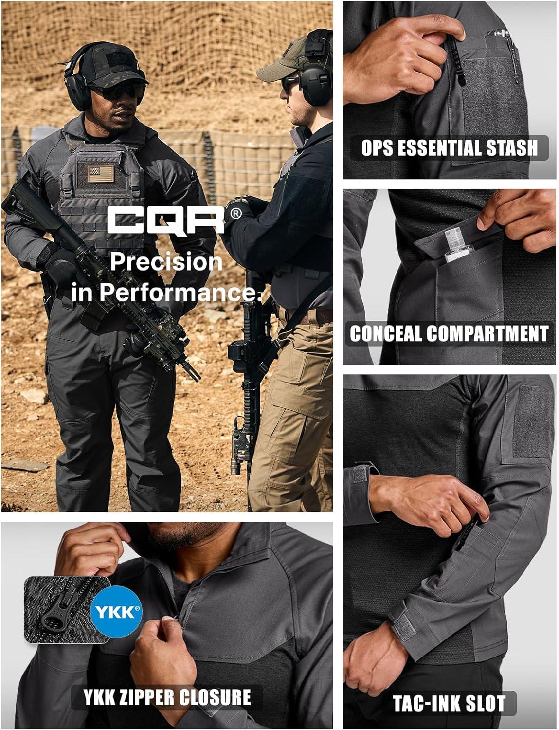 CQR Men’s Combat Shirt Tactical 1/4 Zip Long Sleeve Military BDU Shirts Camo EDC Top with Pockets(Raider Pro Charcoal)