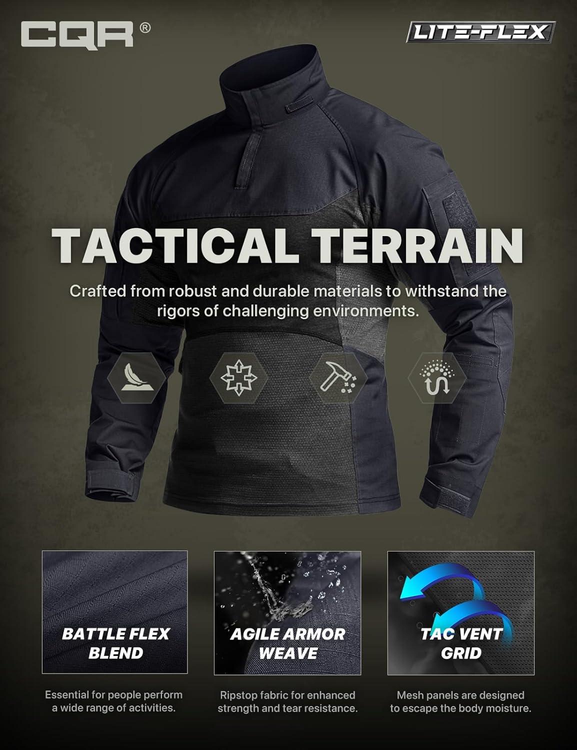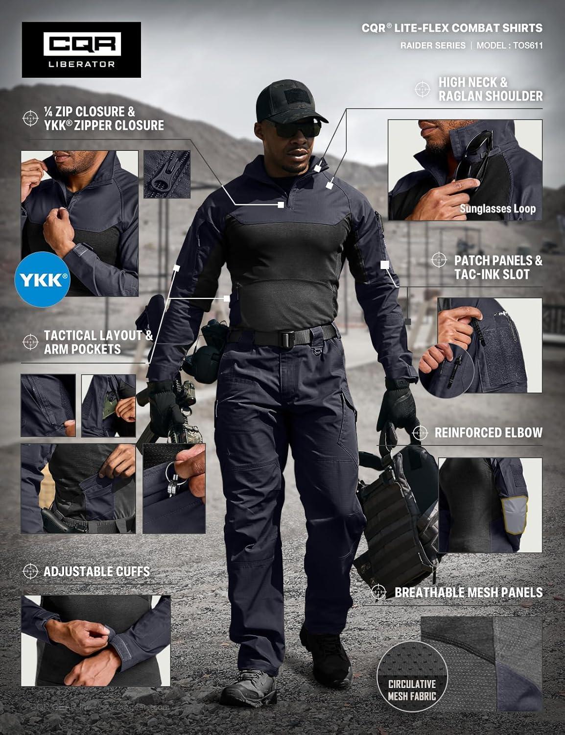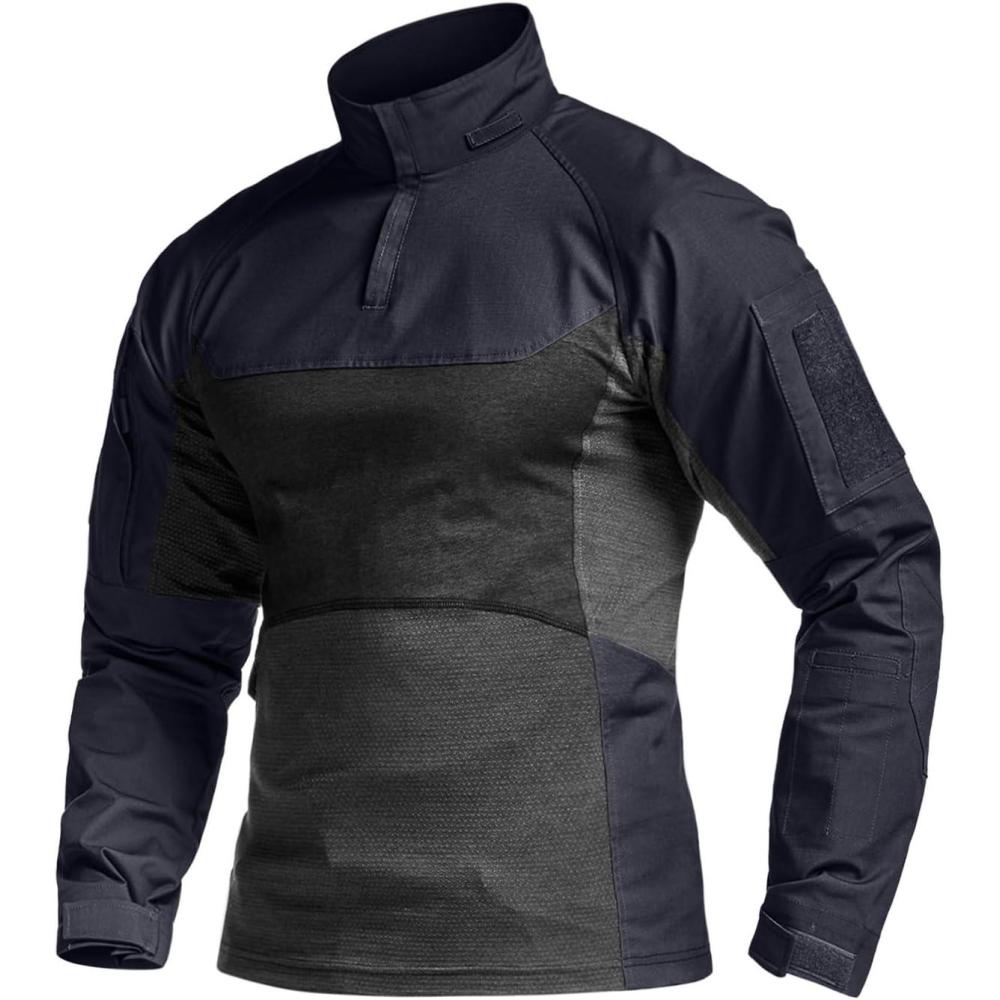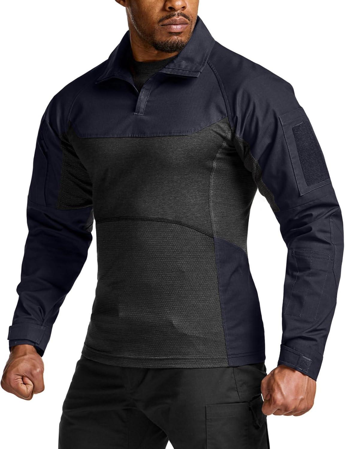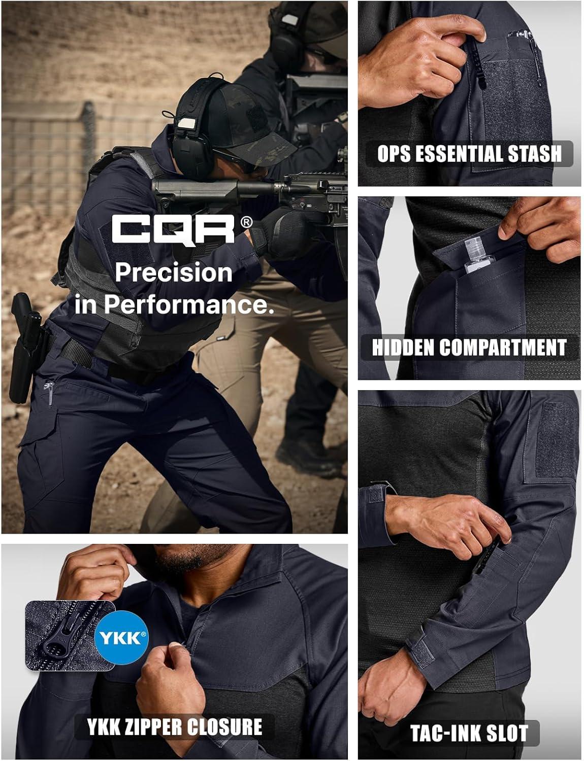 CQR Men’s Combat Shirt Tactical 1/4 Zip Long Sleeve Military BDU Shirts Camo EDC Top with Pockets(Raider Pro Operator Navy)