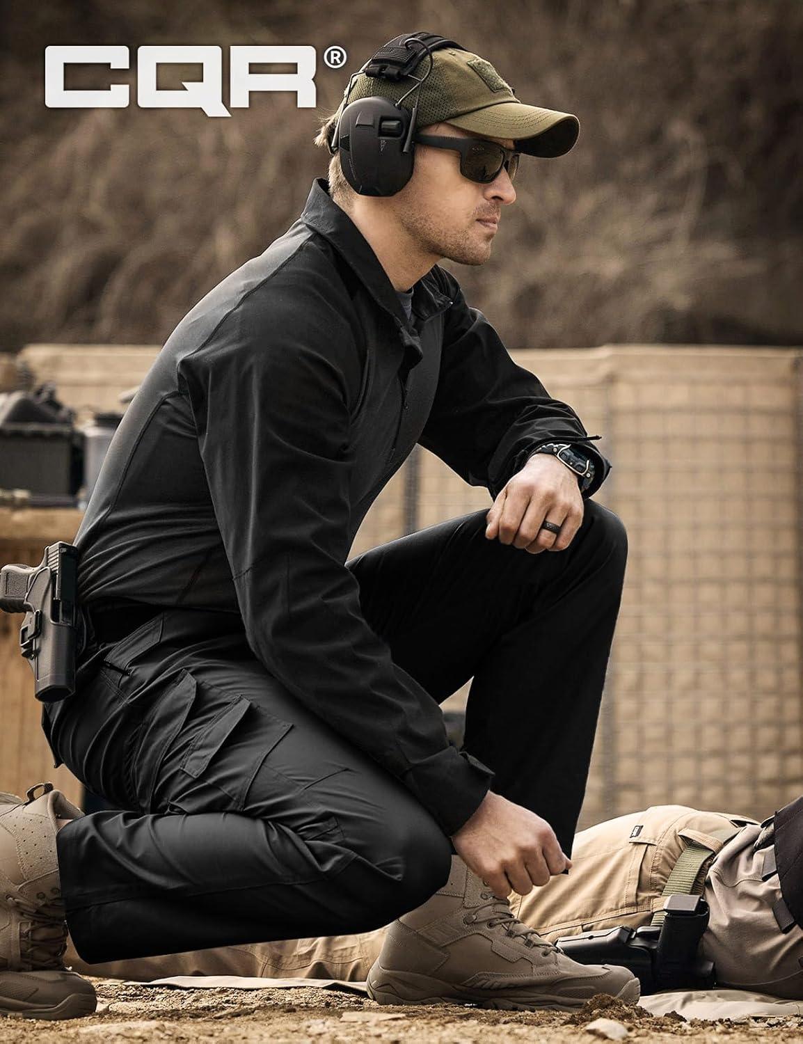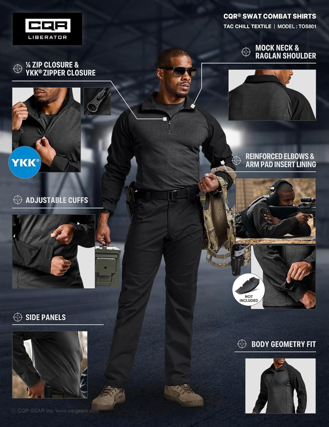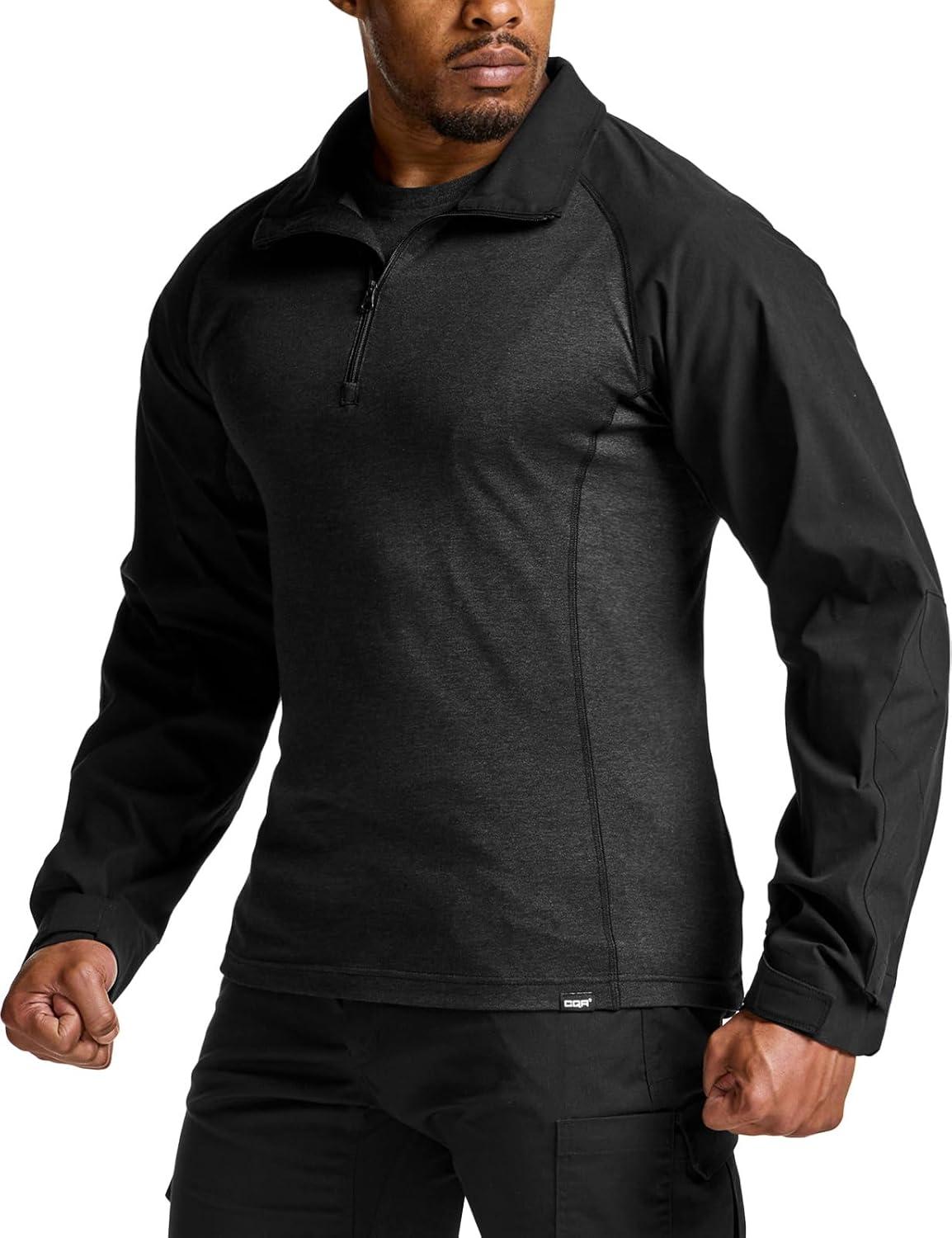 CQR Men’s Combat Shirt Tactical 1/4 Zip Long Sleeve Military BDU Shirts Camo EDC Top with Pockets(Tac Chill Black)
