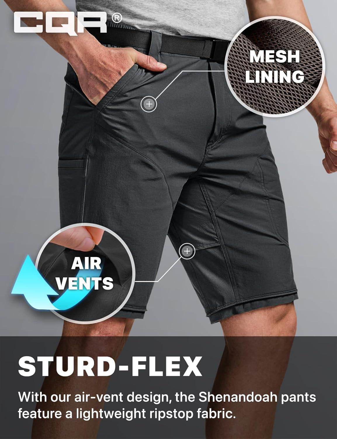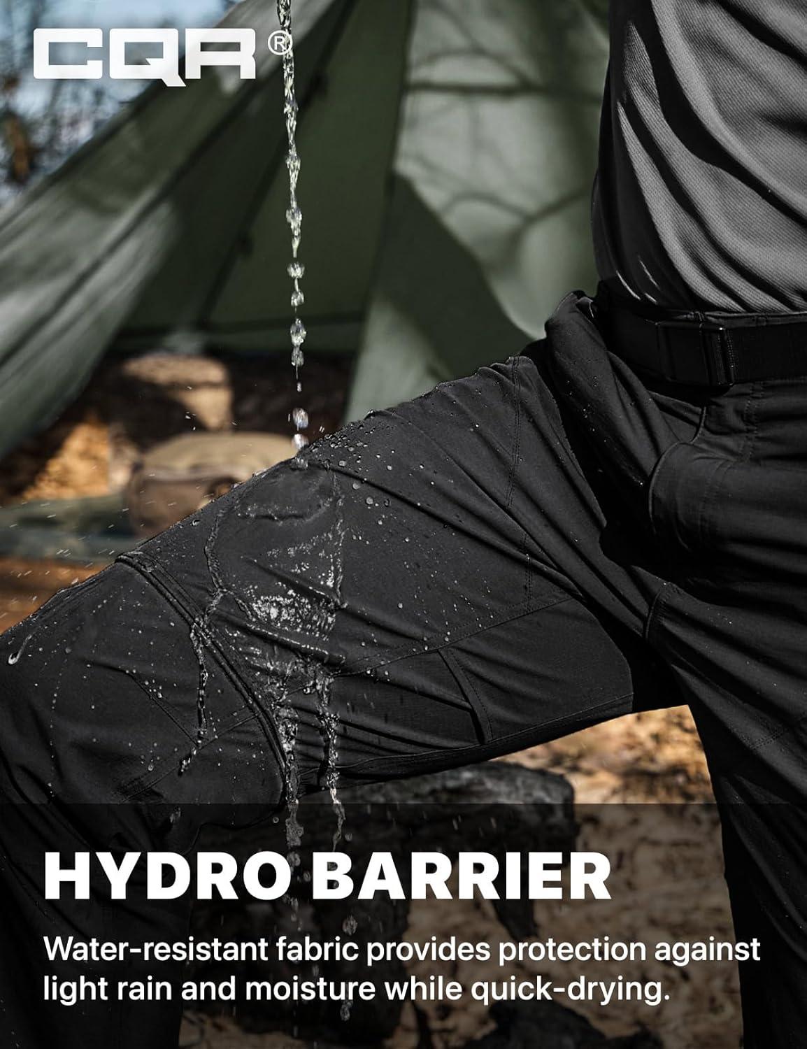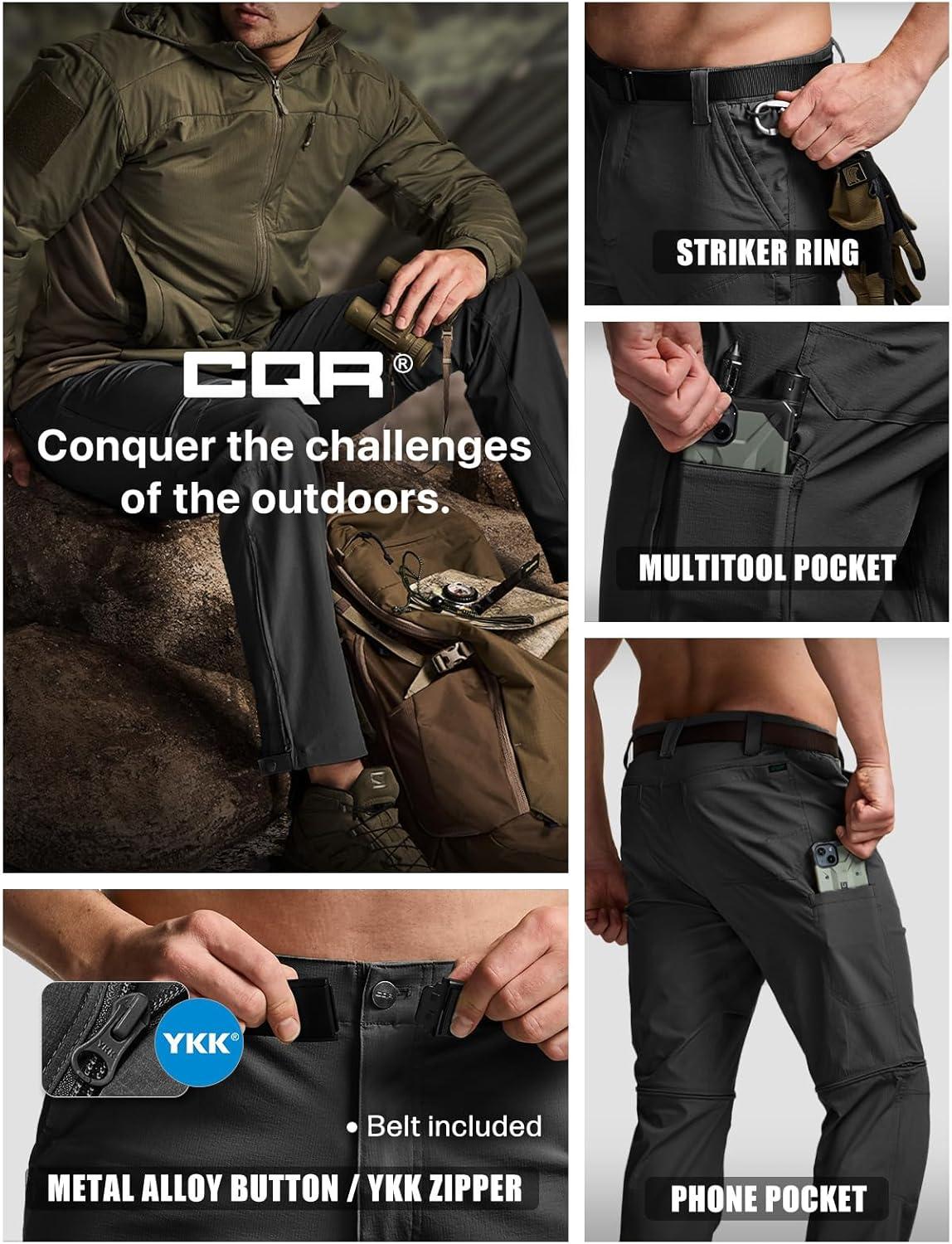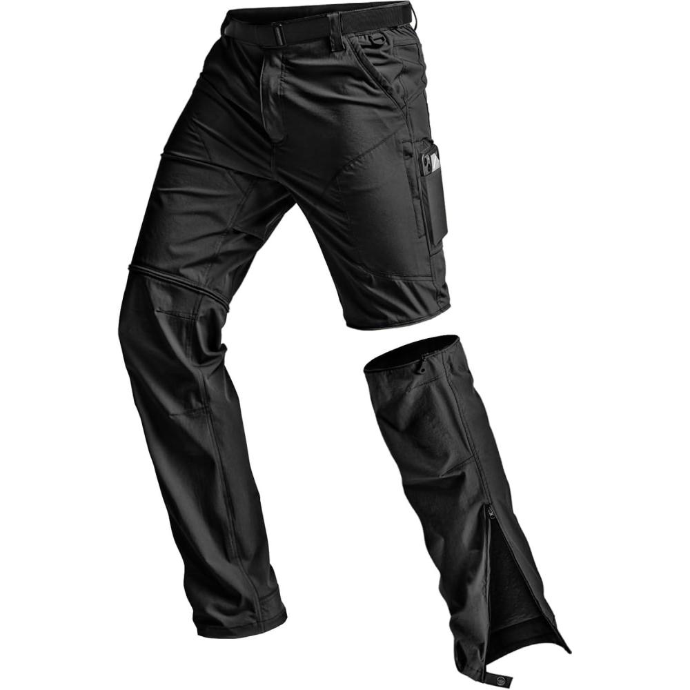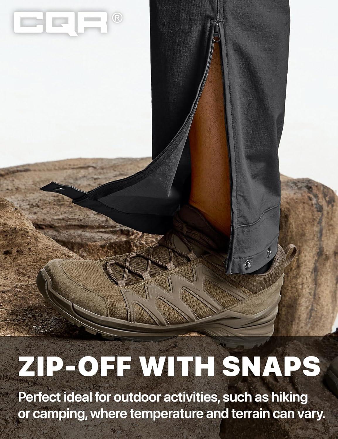 CQR Men’s Convertible Cargo Tactical Pants, Water Resistant Outdoor Hiking Pants, Zip Off Lightweight Stretch Work Pants(Convertible Cargo W/Belt Black)