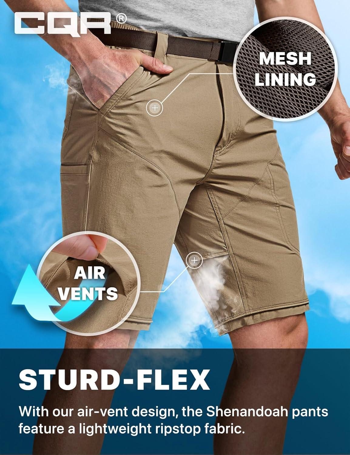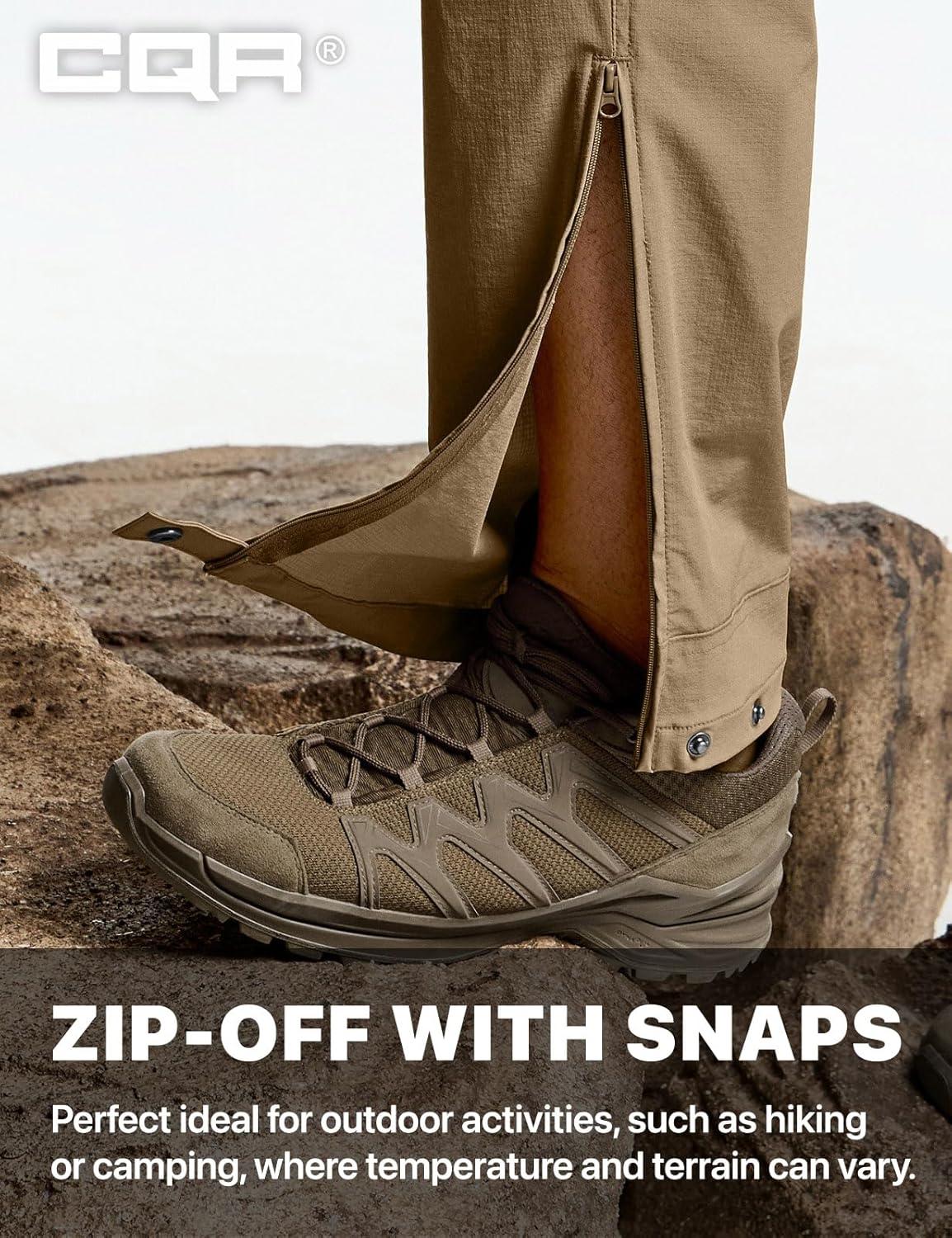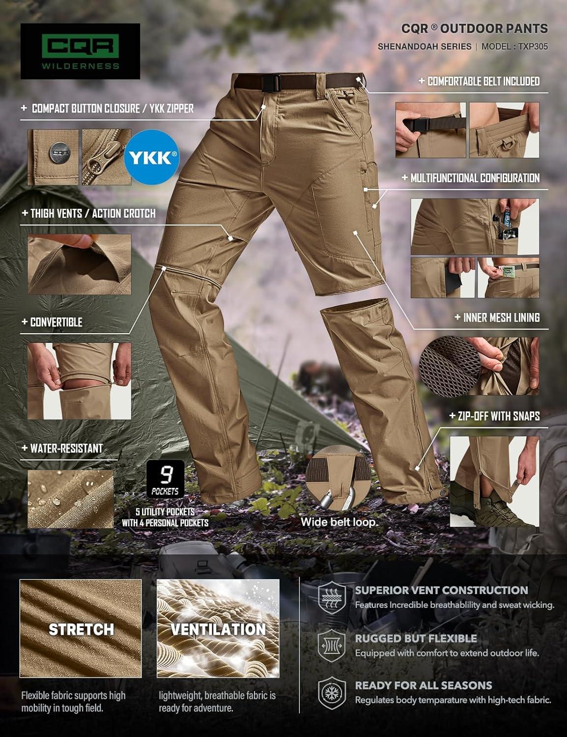 CQR Men’s Convertible Cargo Tactical Pants, Water Resistant Outdoor Hiking Pants, Zip Off Lightweight Stretch Work Pants(Convertible Cargo W/Belt Coyote)