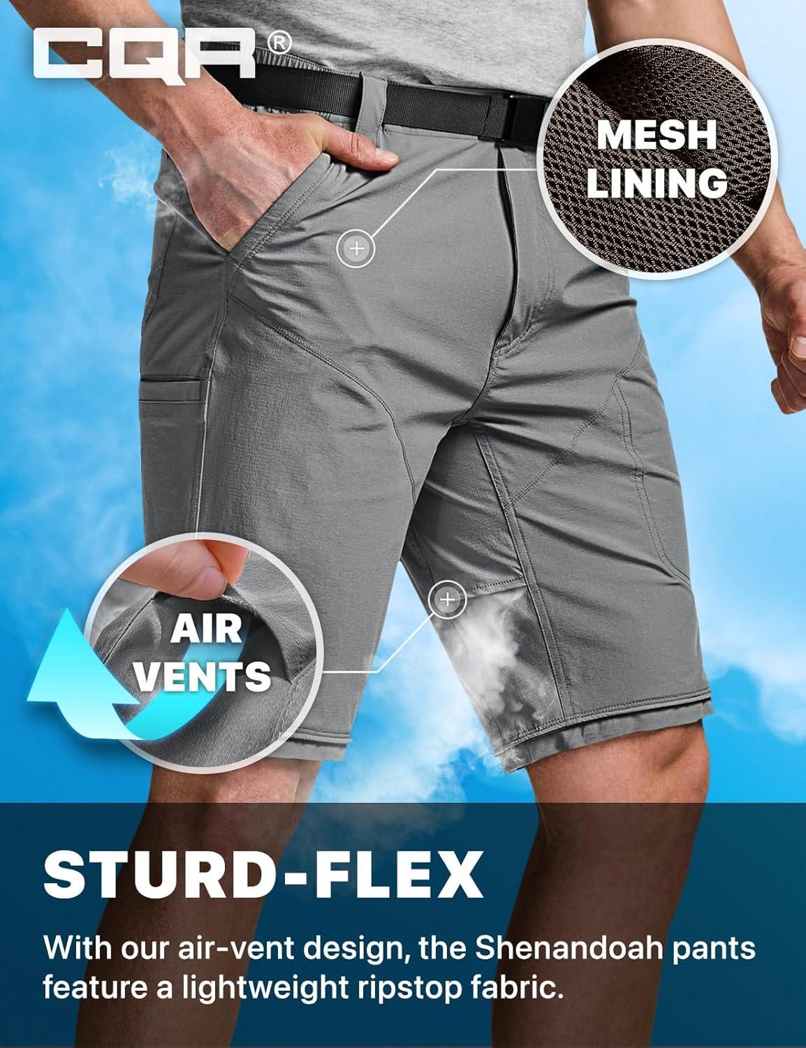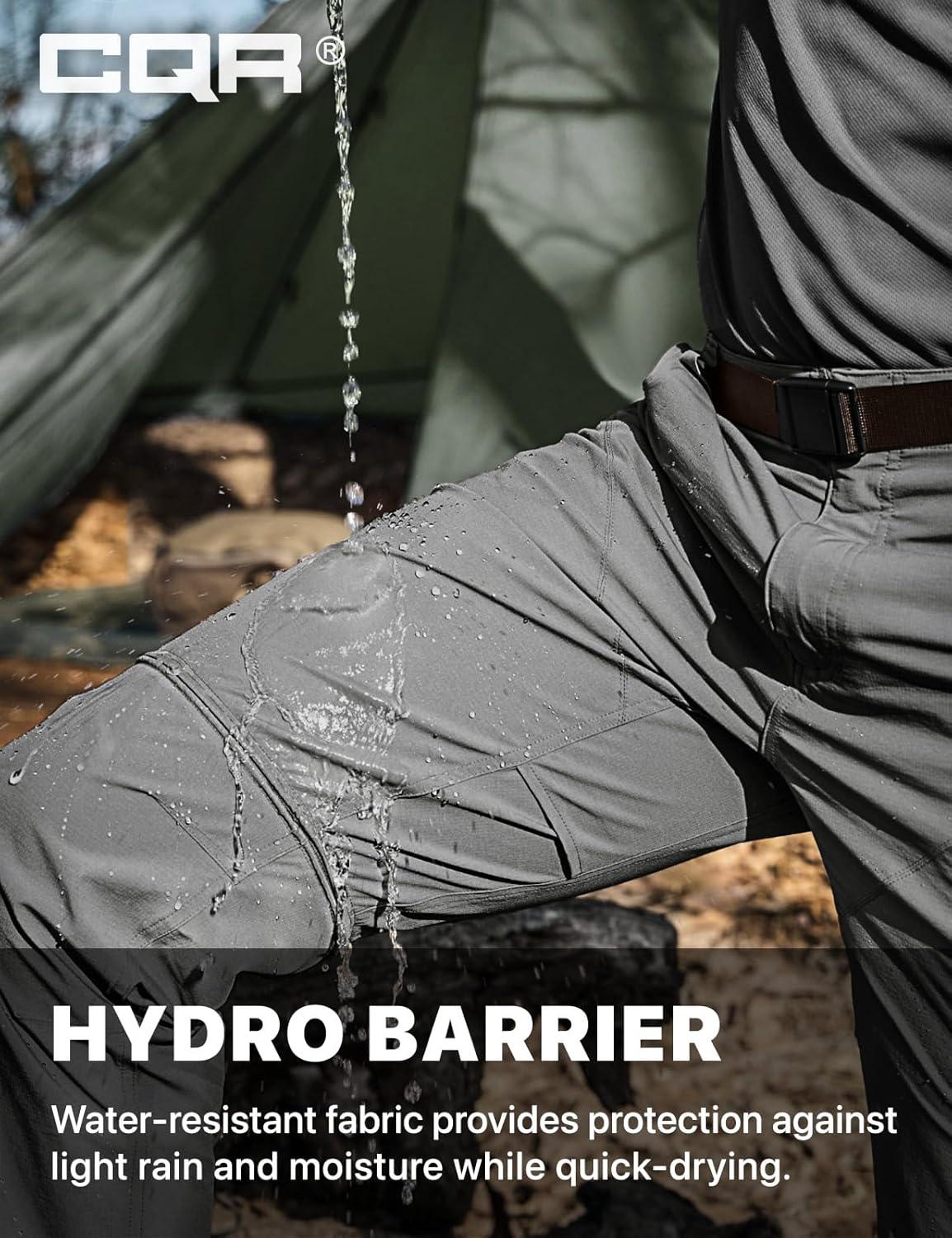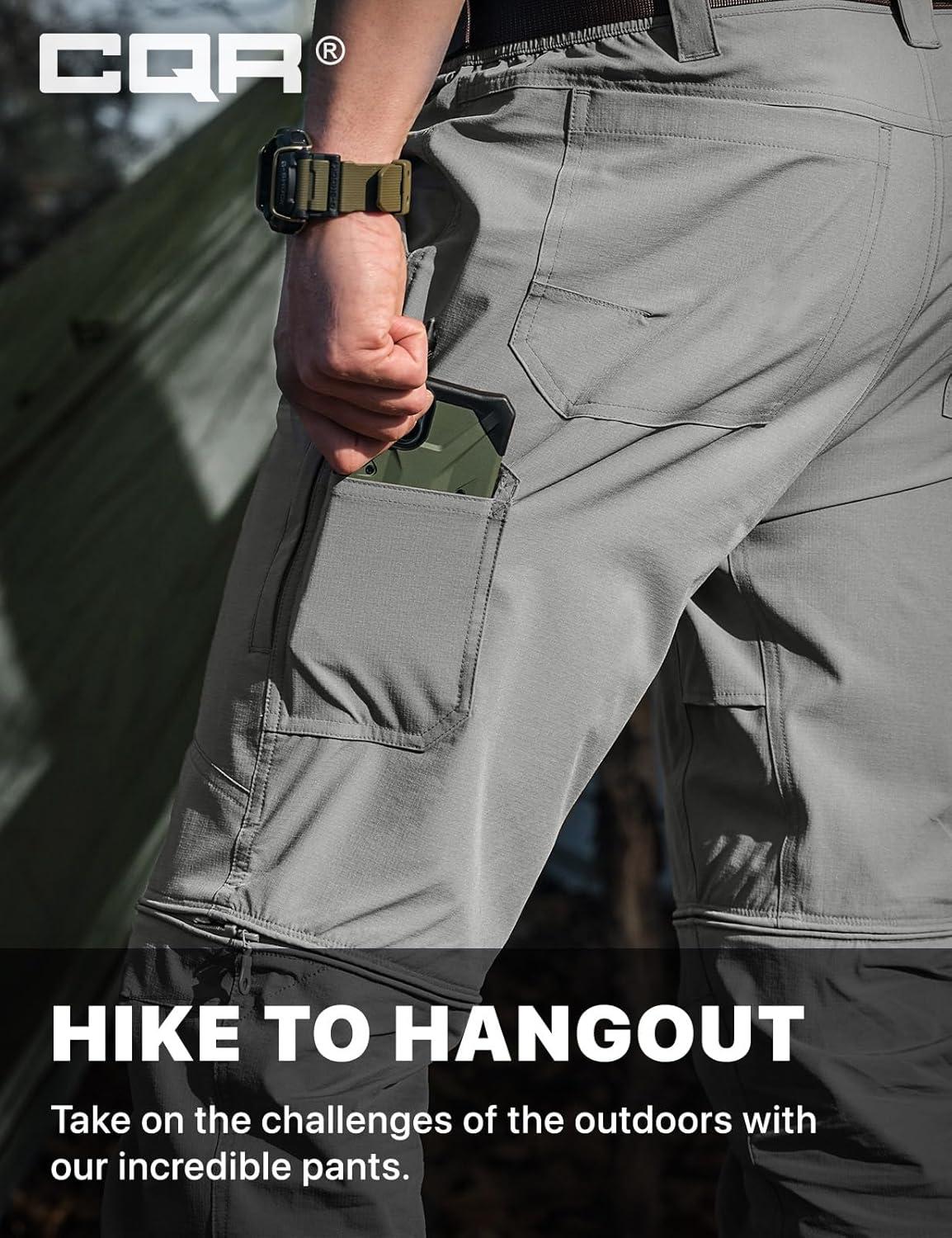 CQR Men’s Convertible Cargo Tactical Pants, Water Resistant Outdoor Hiking Pants, Zip Off Lightweight Stretch Work Pants(Convertible Cargo W/Belt Sage)