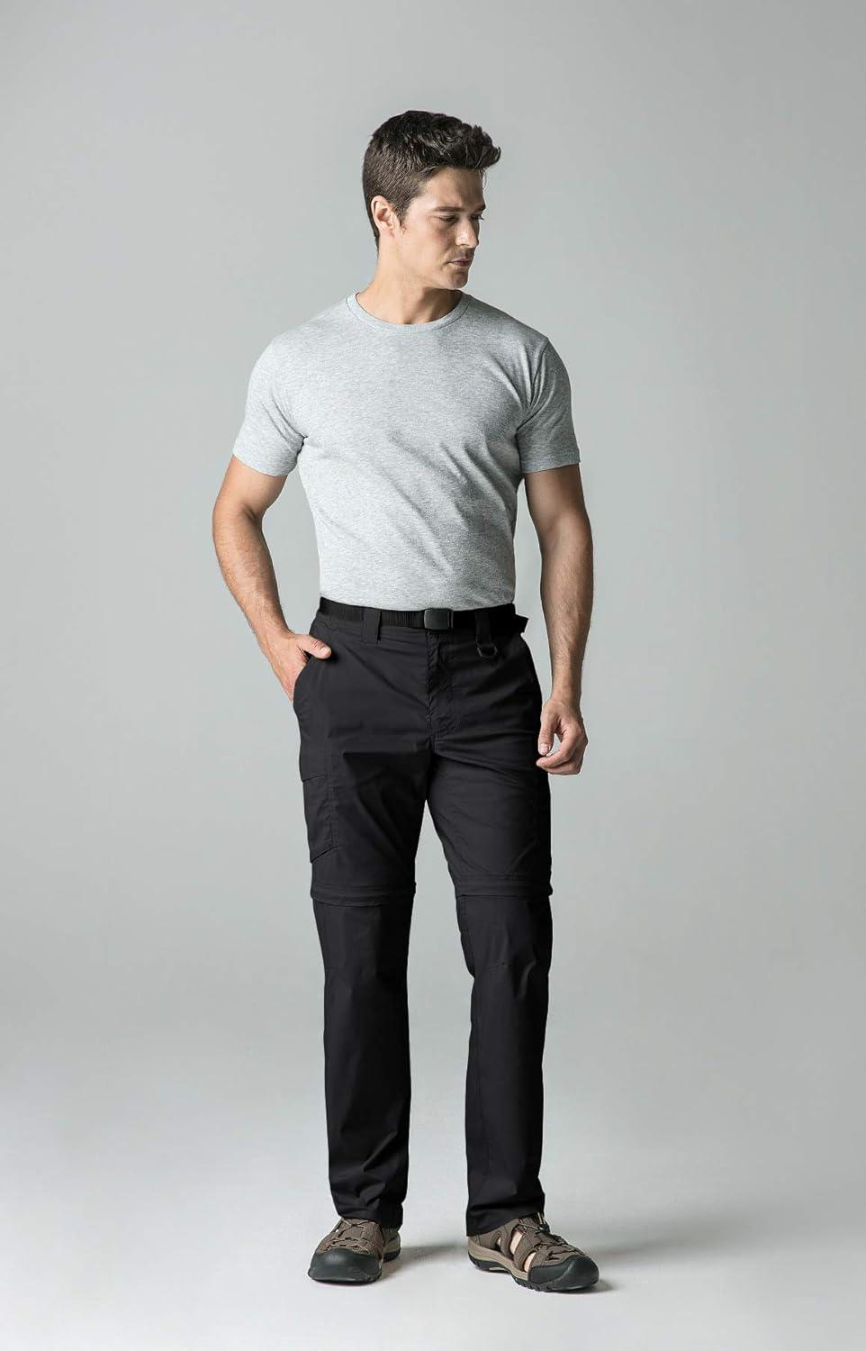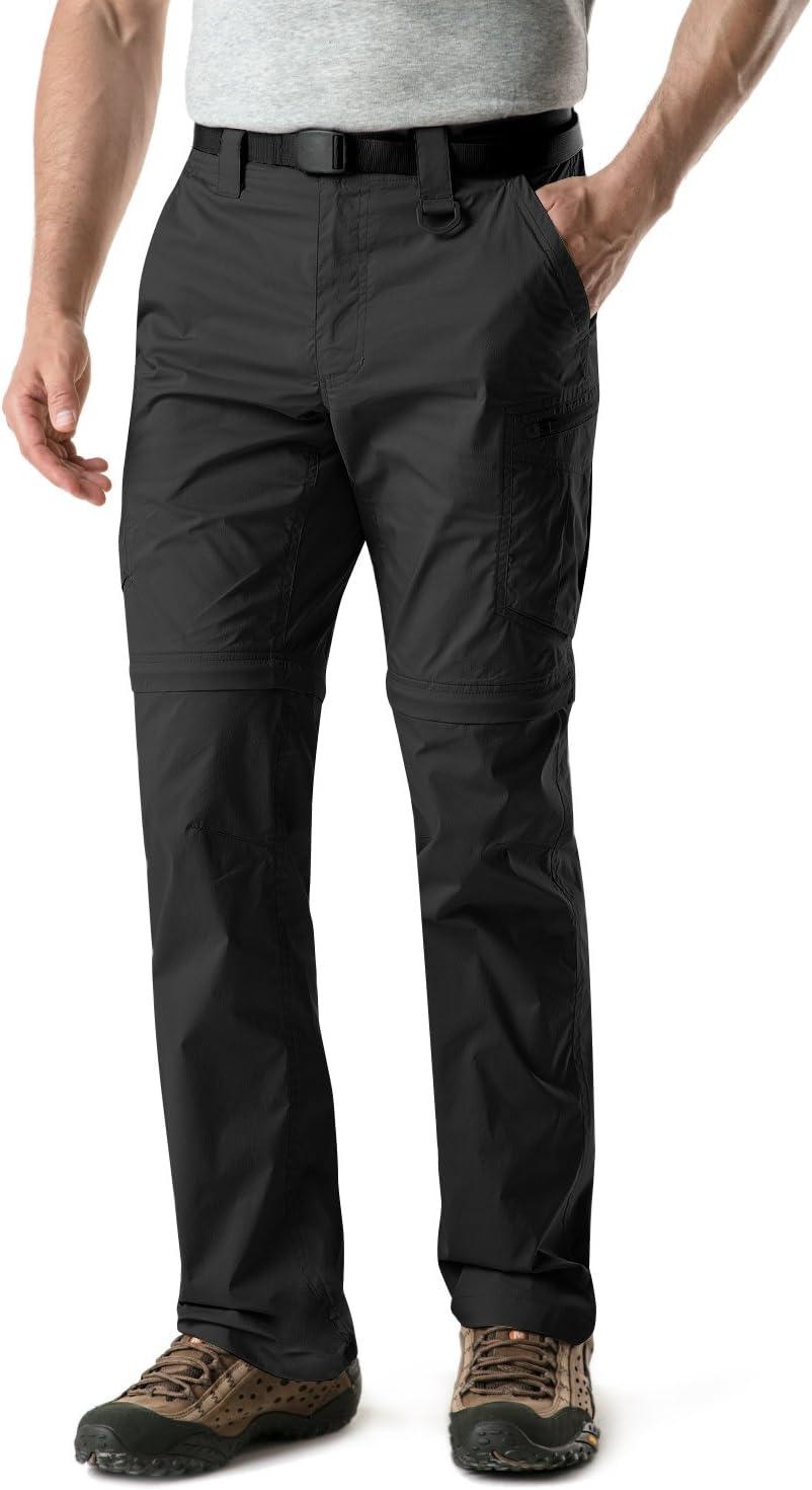 CQR Men’s Convertible Cargo Tactical Pants, Water Resistant Outdoor Hiking Pants, Zip Off Lightweight Stretch Work Pants(Lightweight Zip-off Black)