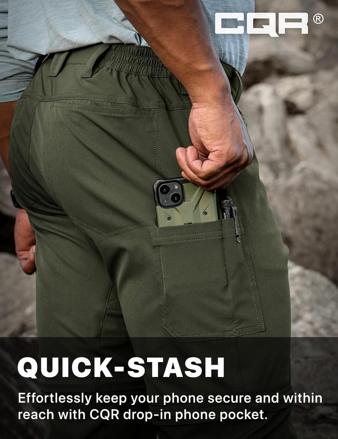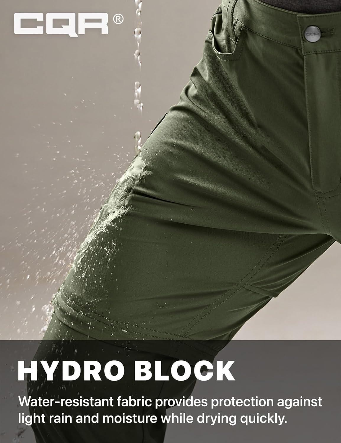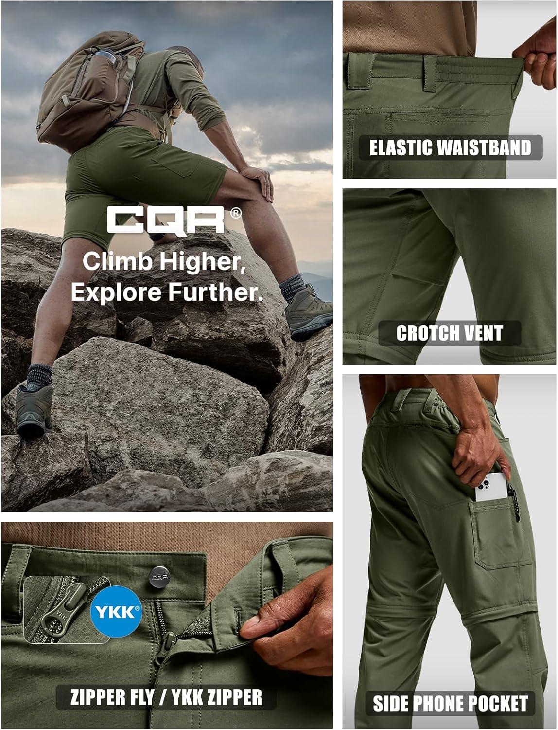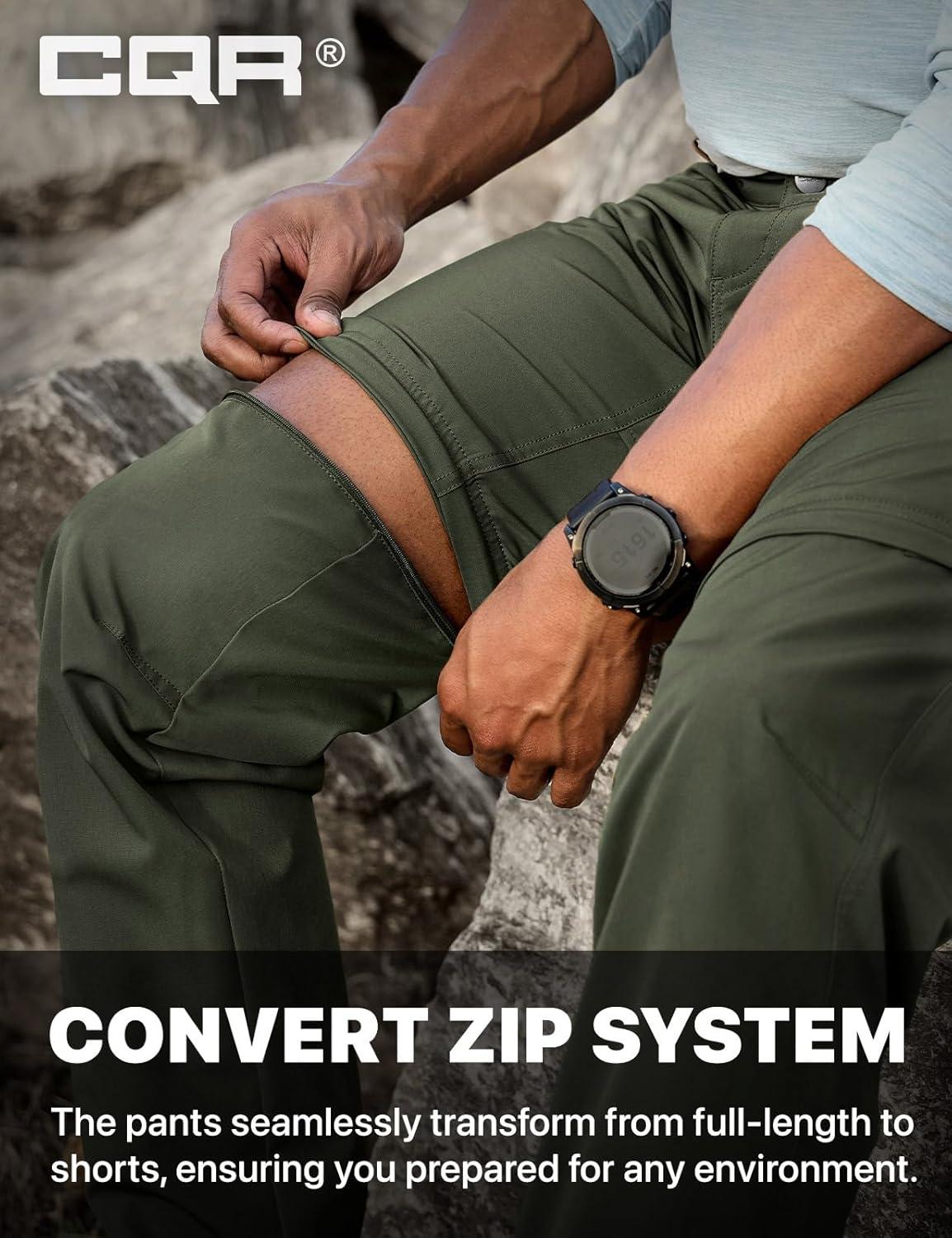 CQR Men’s Convertible Cargo Tactical Pants, Water Resistant Outdoor Hiking Pants, Zip Off Lightweight Stretch Work Pants(Rocky Fuscous Green)