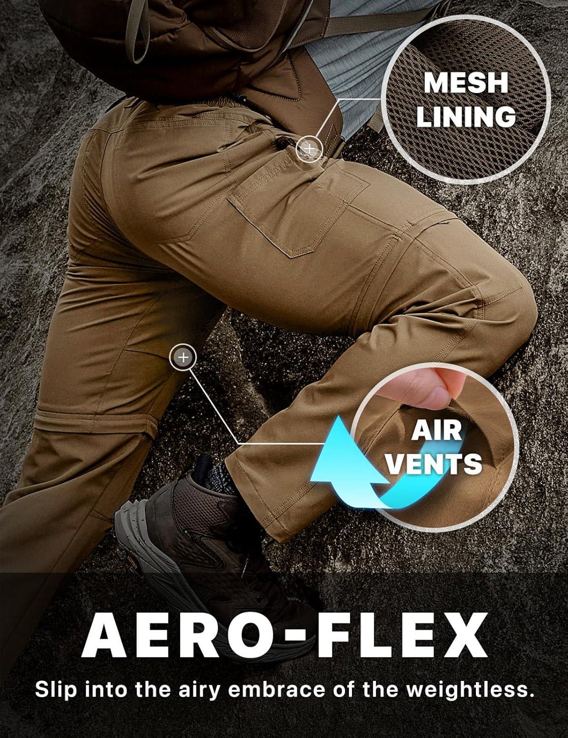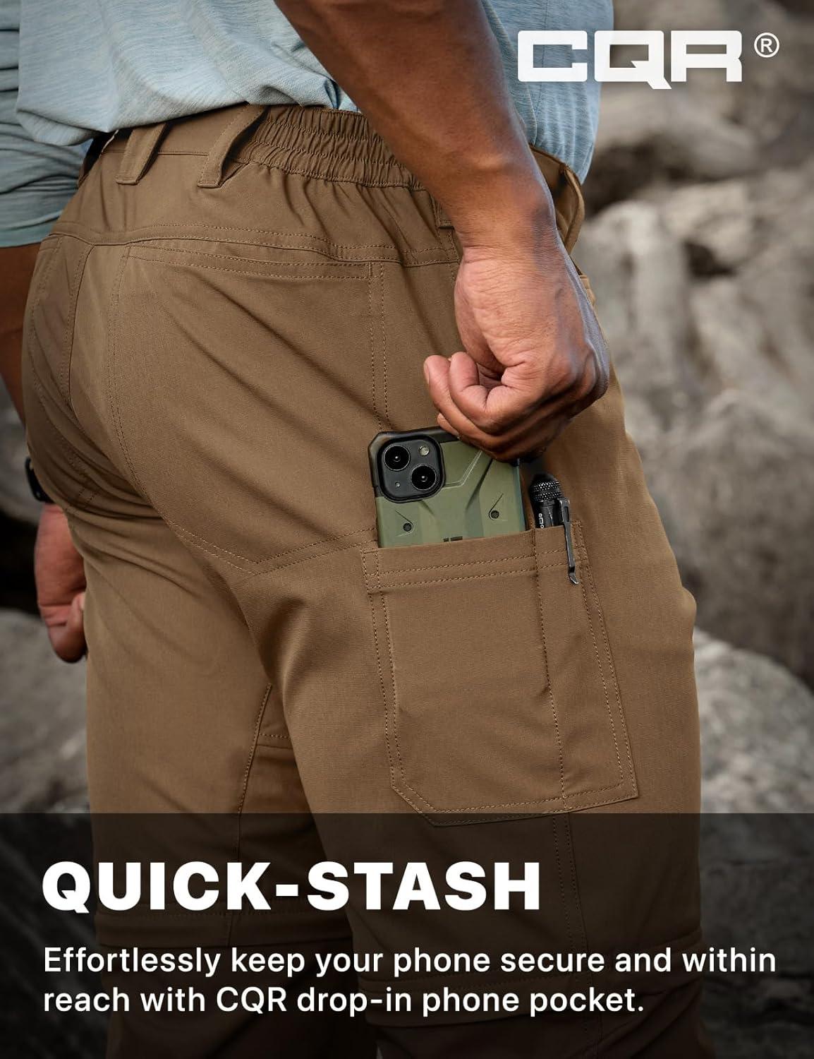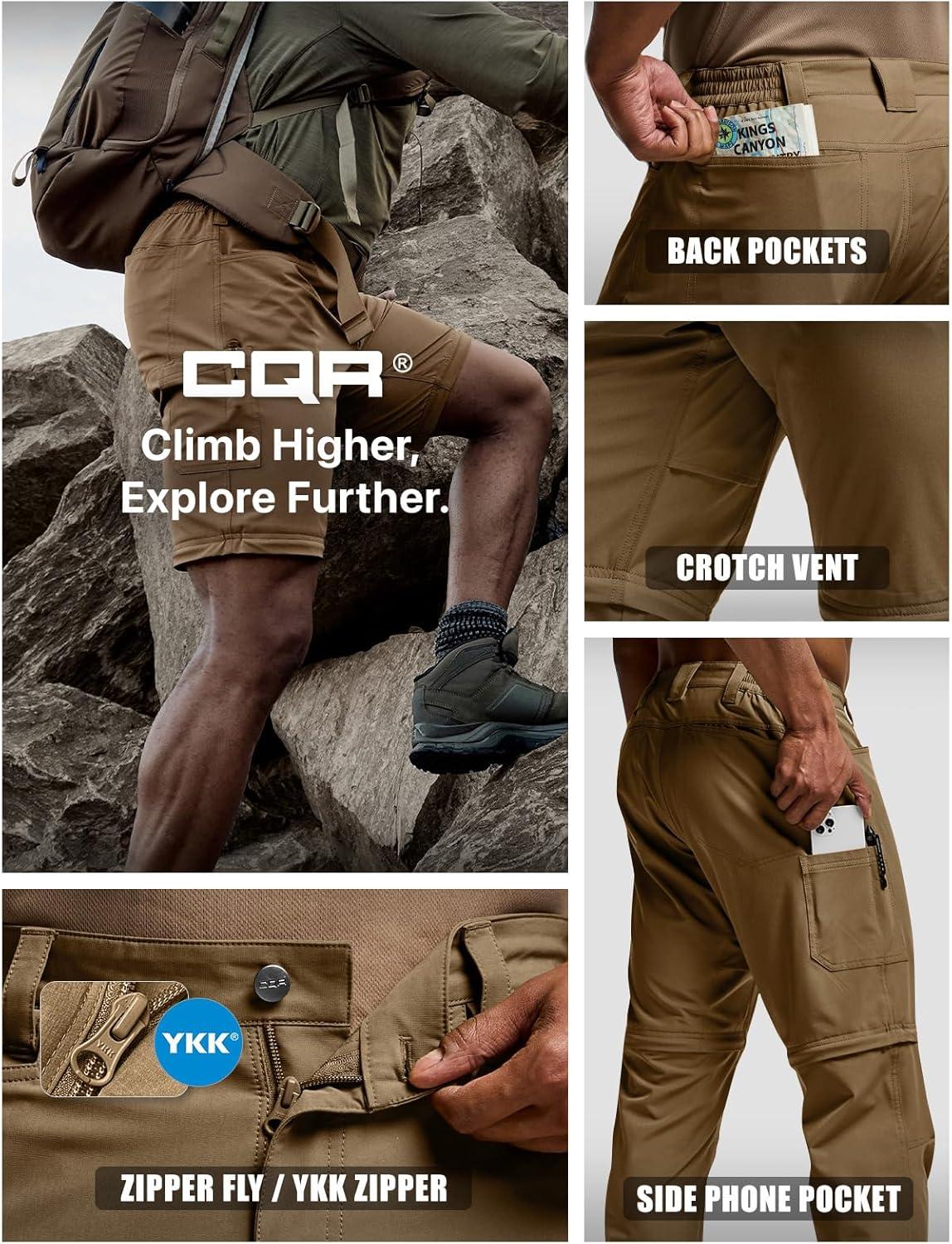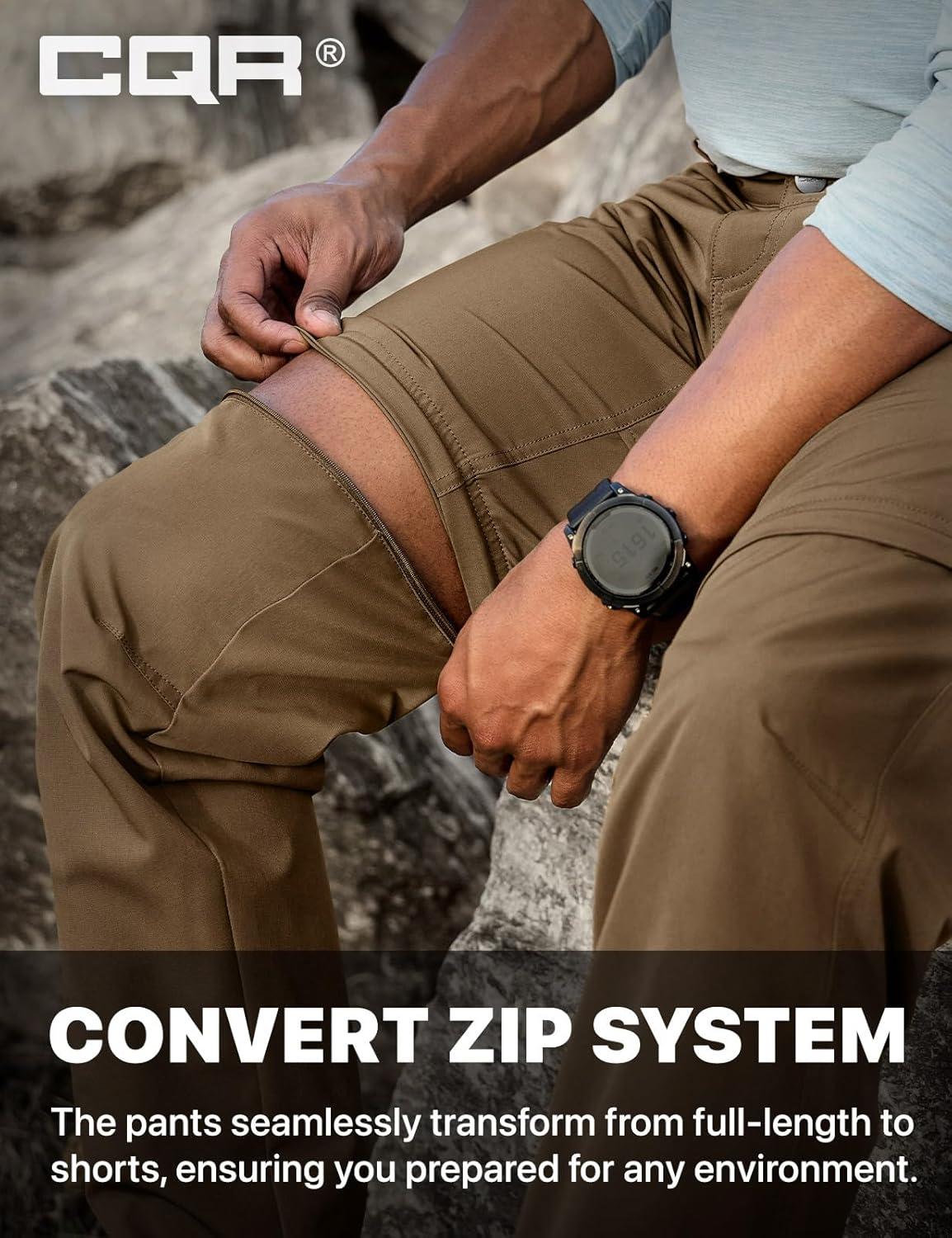 CQR Men’s Convertible Cargo Tactical Pants, Water Resistant Outdoor Hiking Pants, Zip Off Lightweight Stretch Work Pants(Rocky Hazelnut)